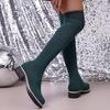 Botas Elásticas de Manga para Mujer Invierno Nuevo Estilo Coreano Comercio Exterior Talla Grande Botas Largas Punta Redonda Tacón Grueso Botas Altas para Dama Marea