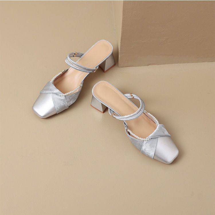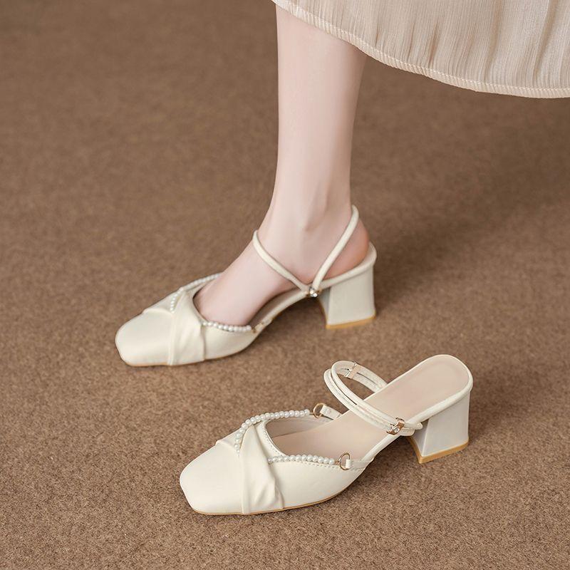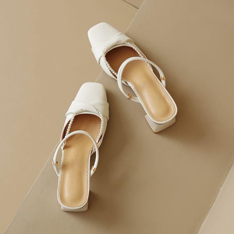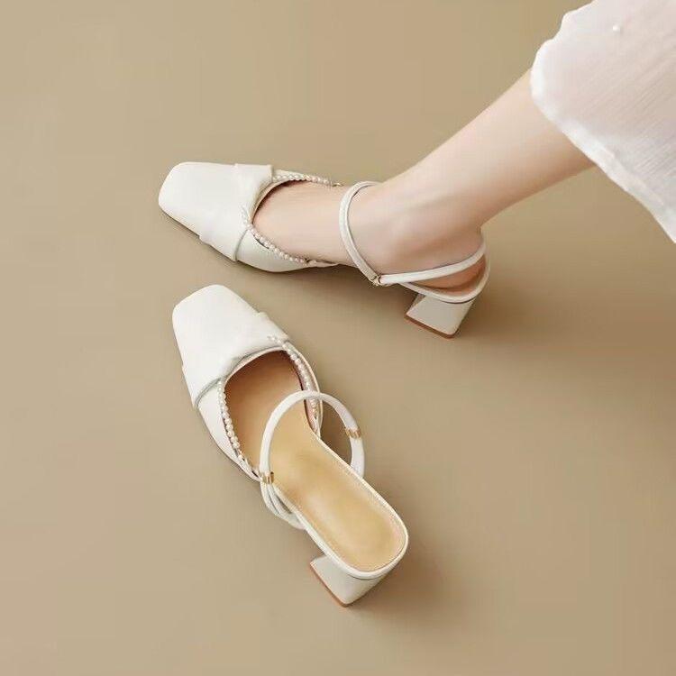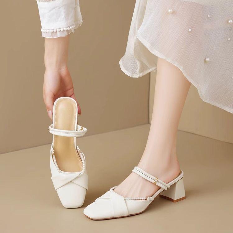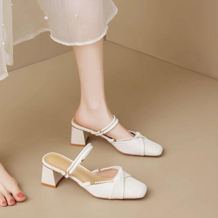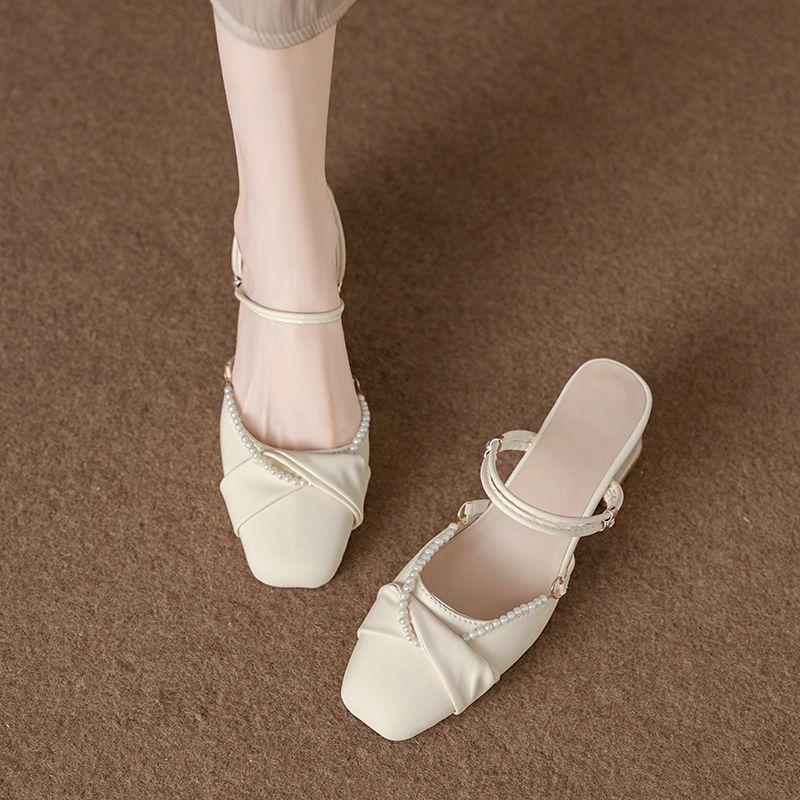 Estilo francés con falda ropa exterior de verano dos usos zapatillas zapatos individuales estilo caliente viento nocturno sandalias de punta cerrada mujer 2025 verano nuevo