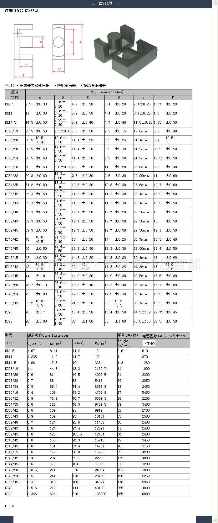 Núcleo ER14.5 núcleo de ferrita núcleo de potencia núcleo ER14.5 núcleo de transformador de alta frecuencia
