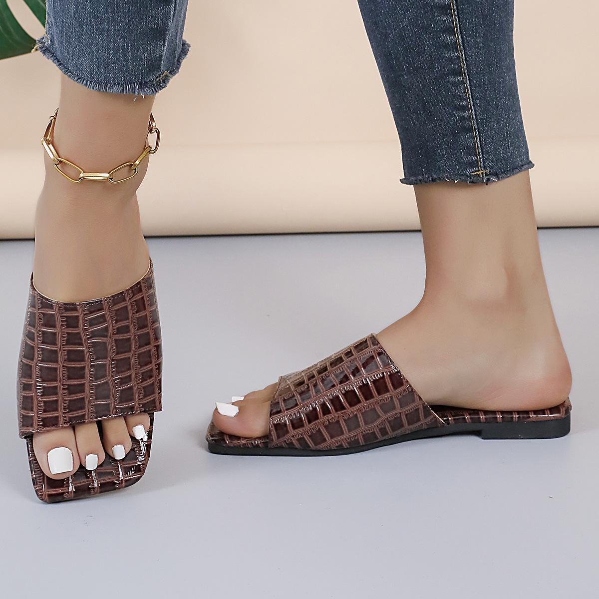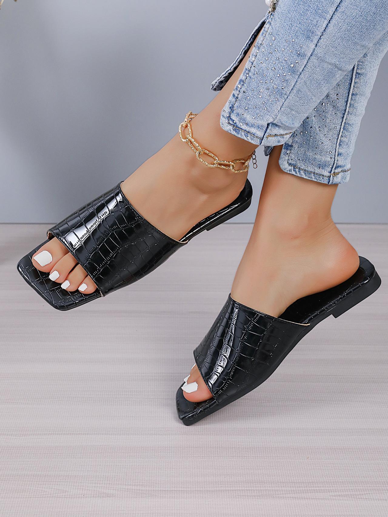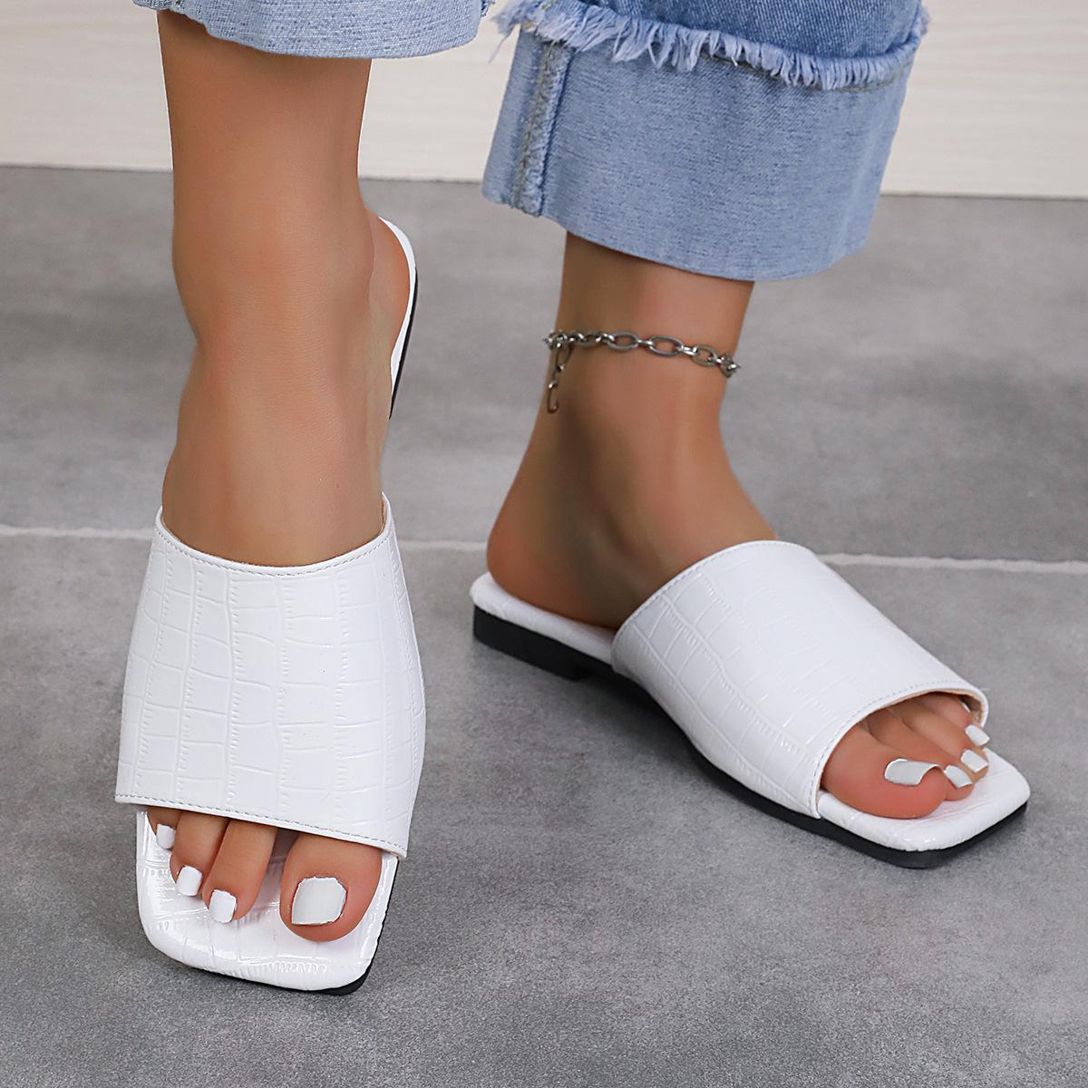 Compra Zapatillas planas de punta cuadrada de una línea de exportación europea y americana para mujer, talla grande transfronteriza, para uso exterior, sandalias de playa de punta abierta al por mayor en Joom.pro
