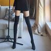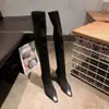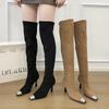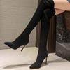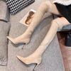 Botas Altas Hasta la Rodilla de Tacón Alto para Mujer 2025 Otoño e Invierno Nuevas Botas Slim de Manga con Punta de Gamuza Forradas de Forro Polar Botas de Aguja