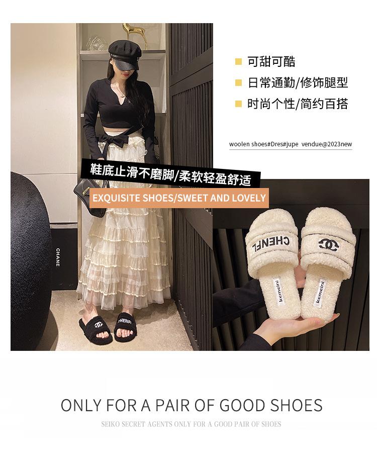 Pantuflas de piel de una tira con suela gruesa para mujer 2025 otoño nuevo simple para exteriores zapatos de mujer moda slip-on pantuflas de gamuza