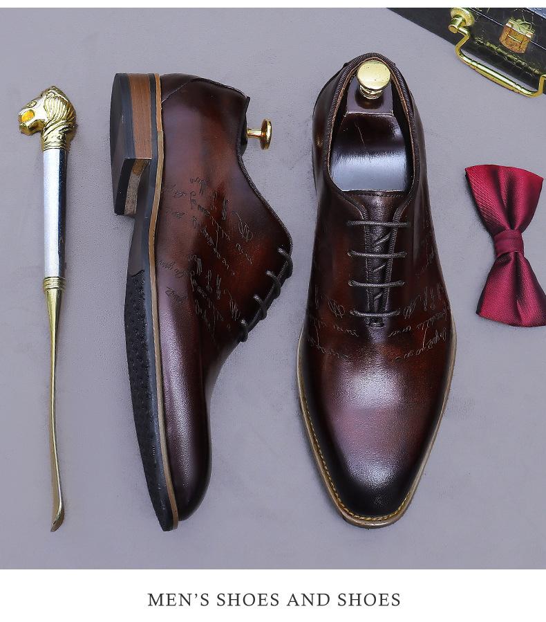 Zapatos Oxford de cuero genuino para hombre, de una pieza, formales de negocios, retro, hechos a mano, casuales británicos, zapatos de moda para hombre