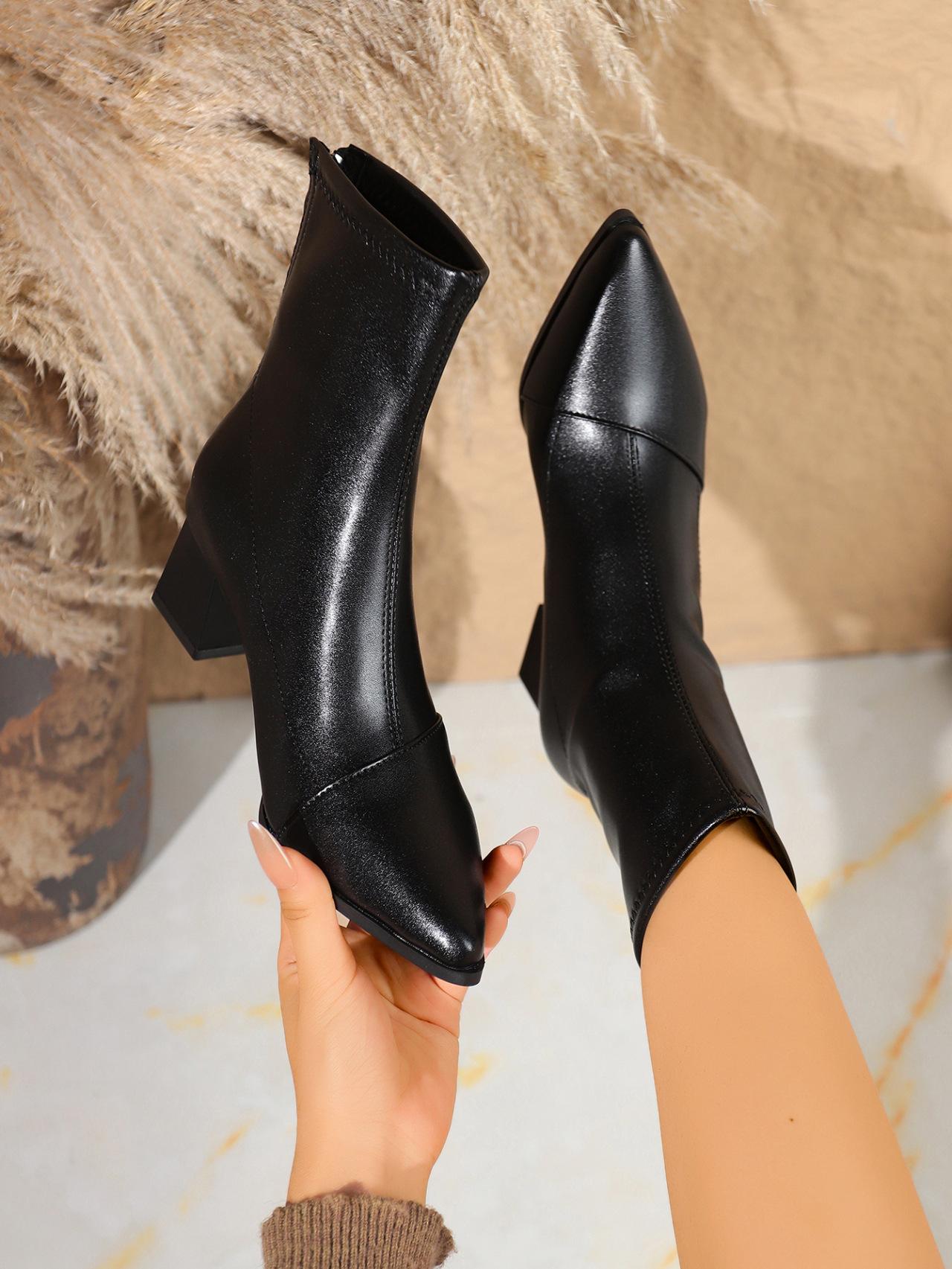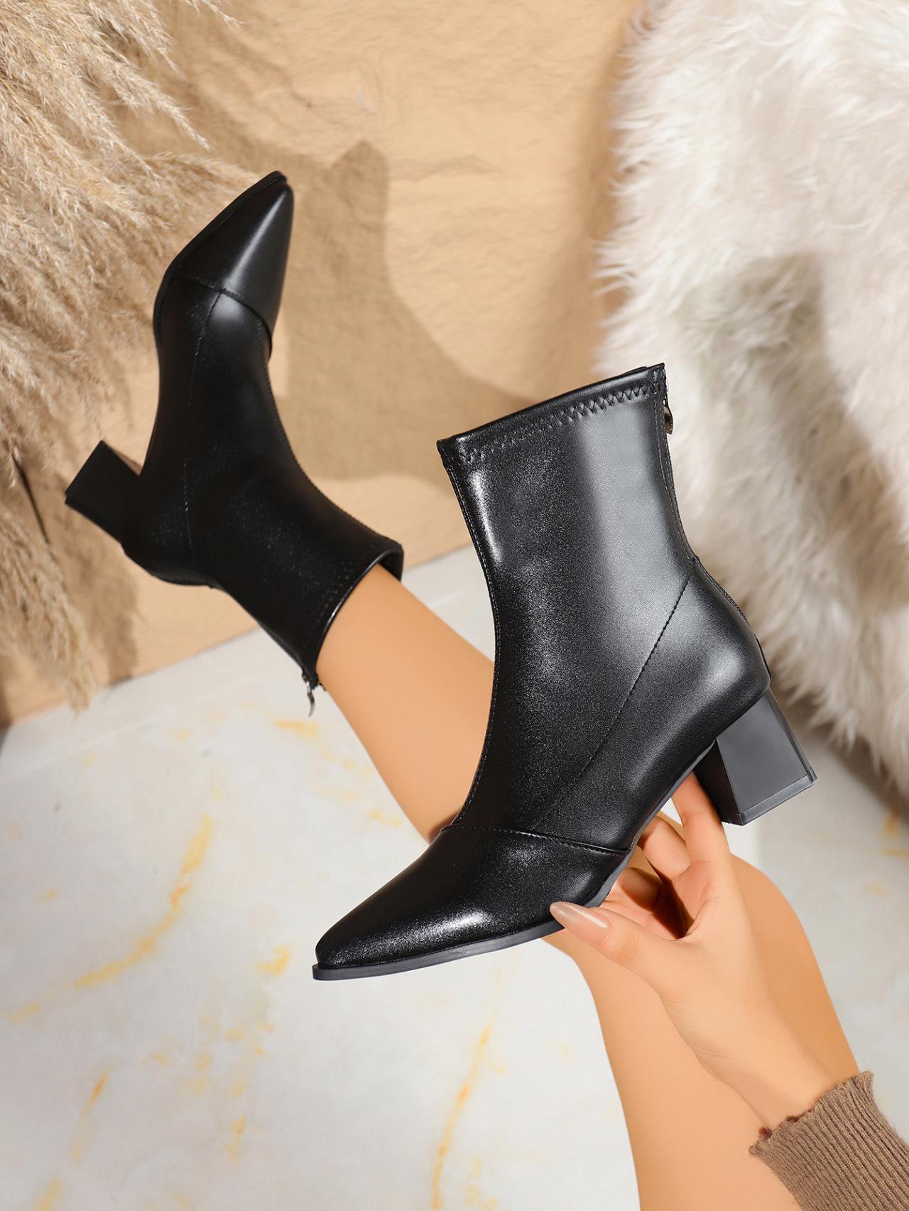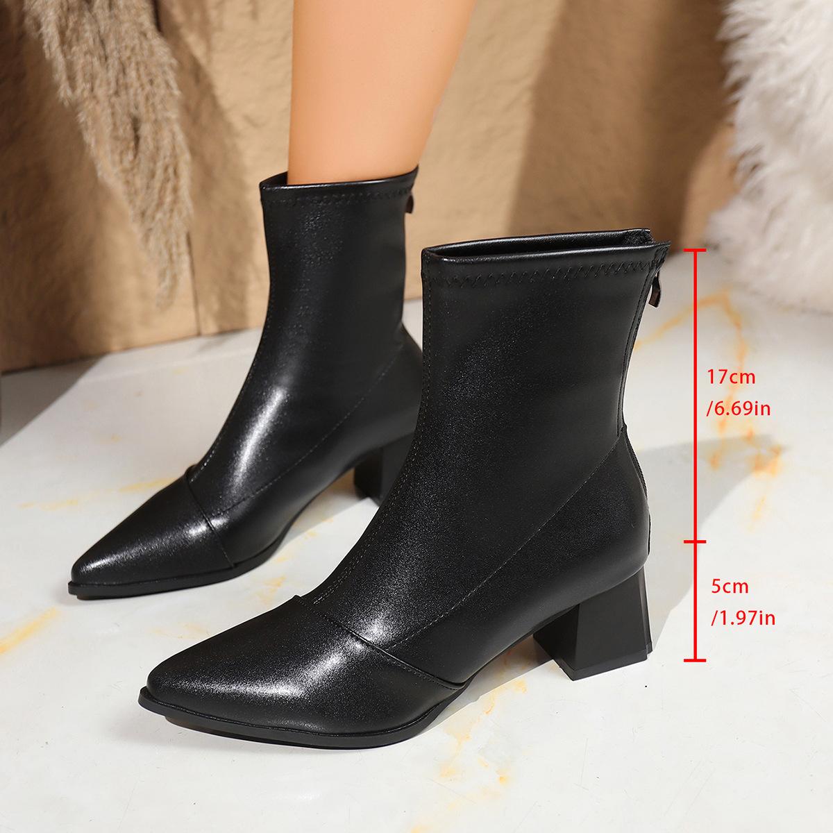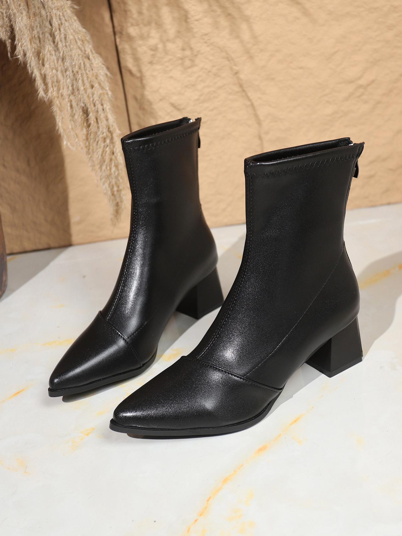 Botas elásticas al por mayor 2025 Otoño/Invierno Temperamento de lazo Botines de tacón alto Estilo coreano Versátiles Retro Adelgazantes Mujeres