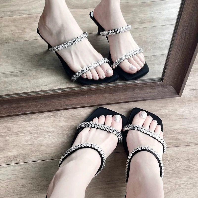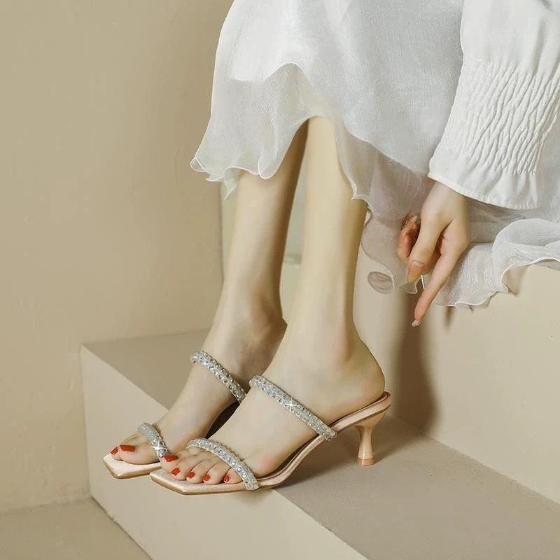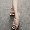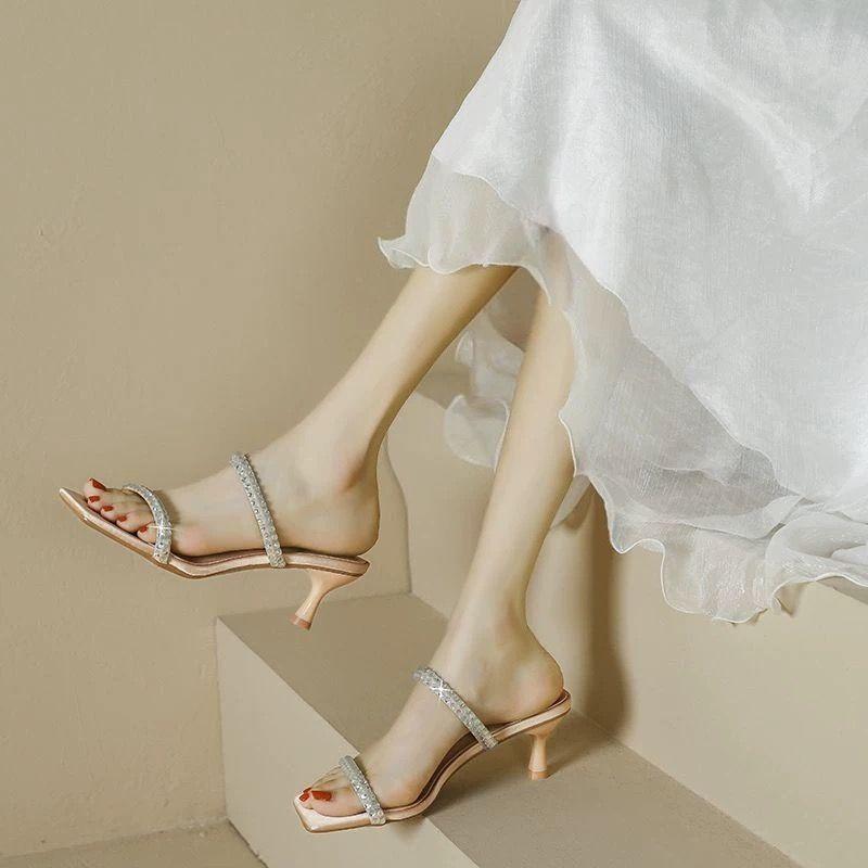 Sandalias elegantes de diario para realzar la altura de mujeres petite 2024 celebridad en línea nuevo hebilla de una correa para el hogar antideslizantes zapatillas estilo coreano