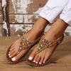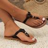 Exportación Sudeste Asiático Talla Grande Tira Delgada Tejidas Chanclas Planas para Mujer Uso Transfronterizo Sandalias Retro con Hebilla de Dedo