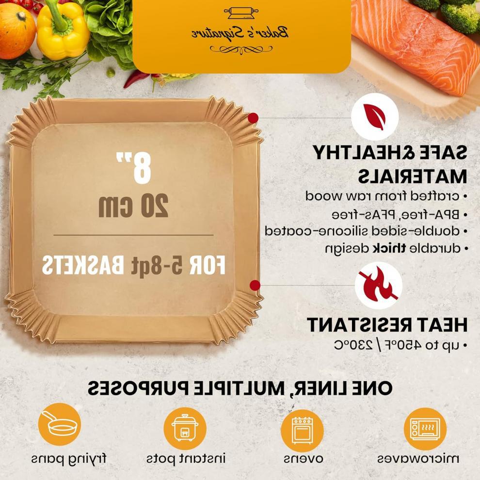 Forros de Papel para Freidora de Aire, 125 Piezas Forros Desechables para Freidora de Aire,