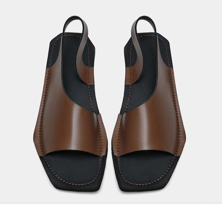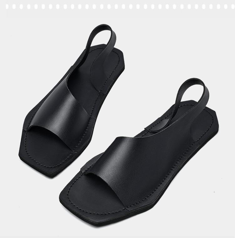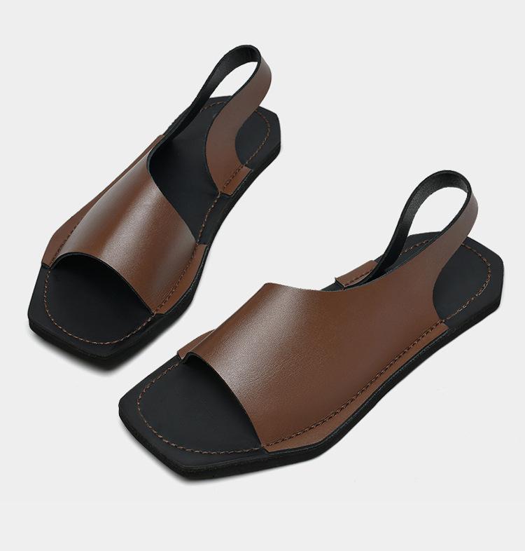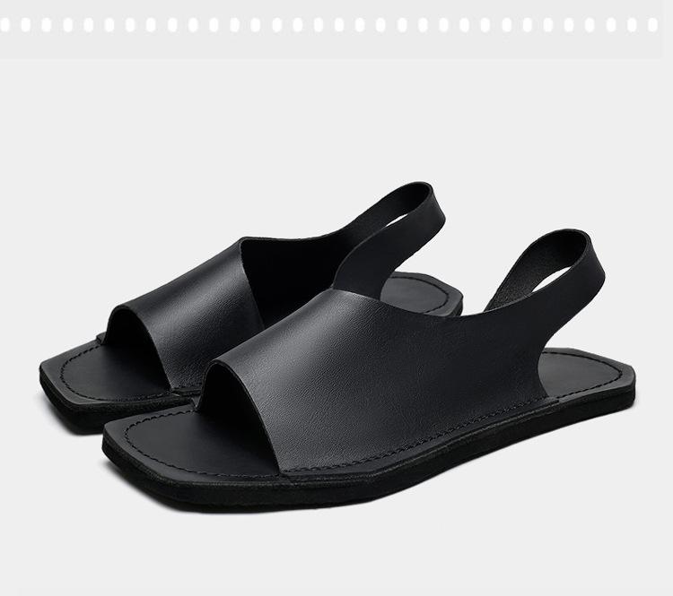 Sandalias transfronterizas para hombre 2025 nuevo verano exterior playa zapatillas de hombre estilo europeo y americano punta cuadrada plana tendencia zapatos romanos