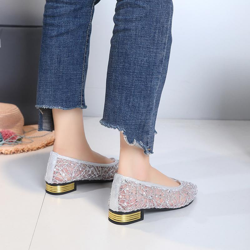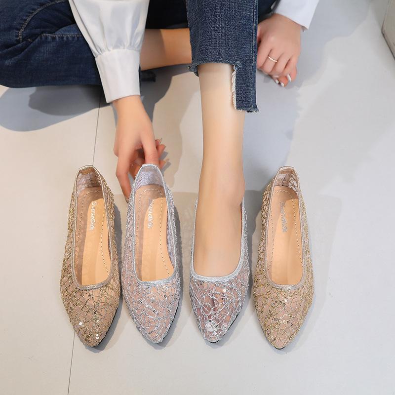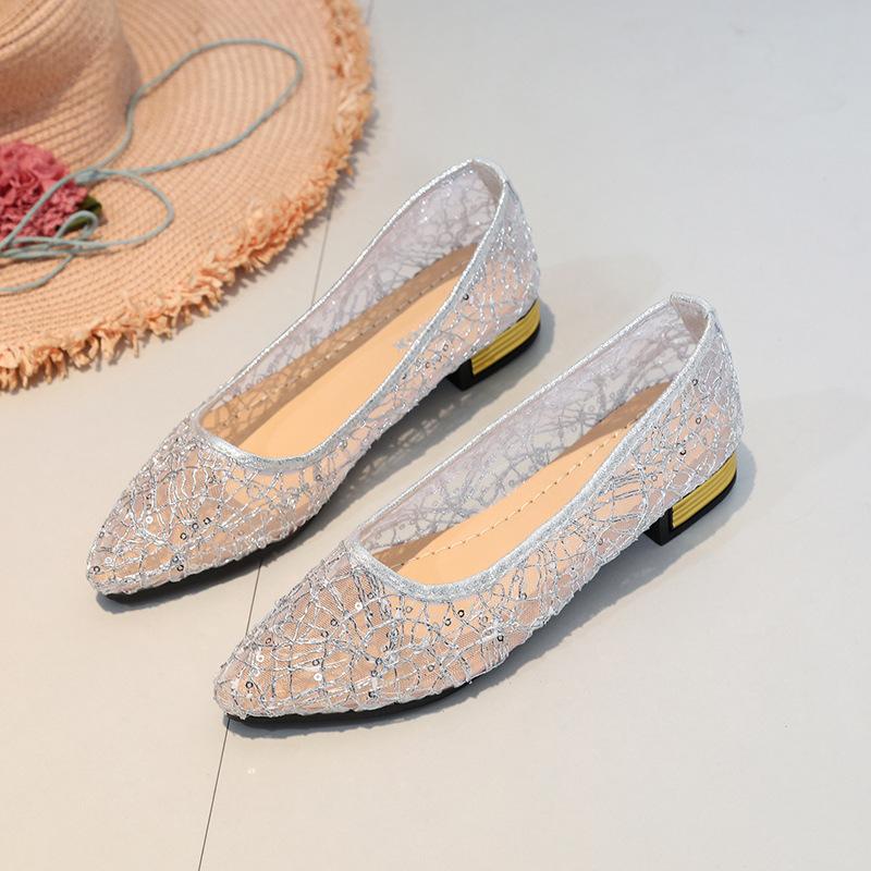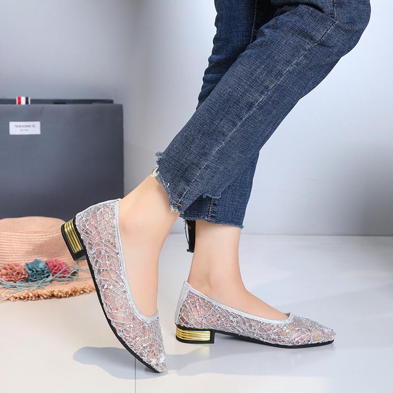 Zapatos individuales de malla de talla grande transfronterizos para mujer, verano, nuevos, malla hueca, moda, punta puntiaguda, casual, suela plana, zapatos de frijol, deseo