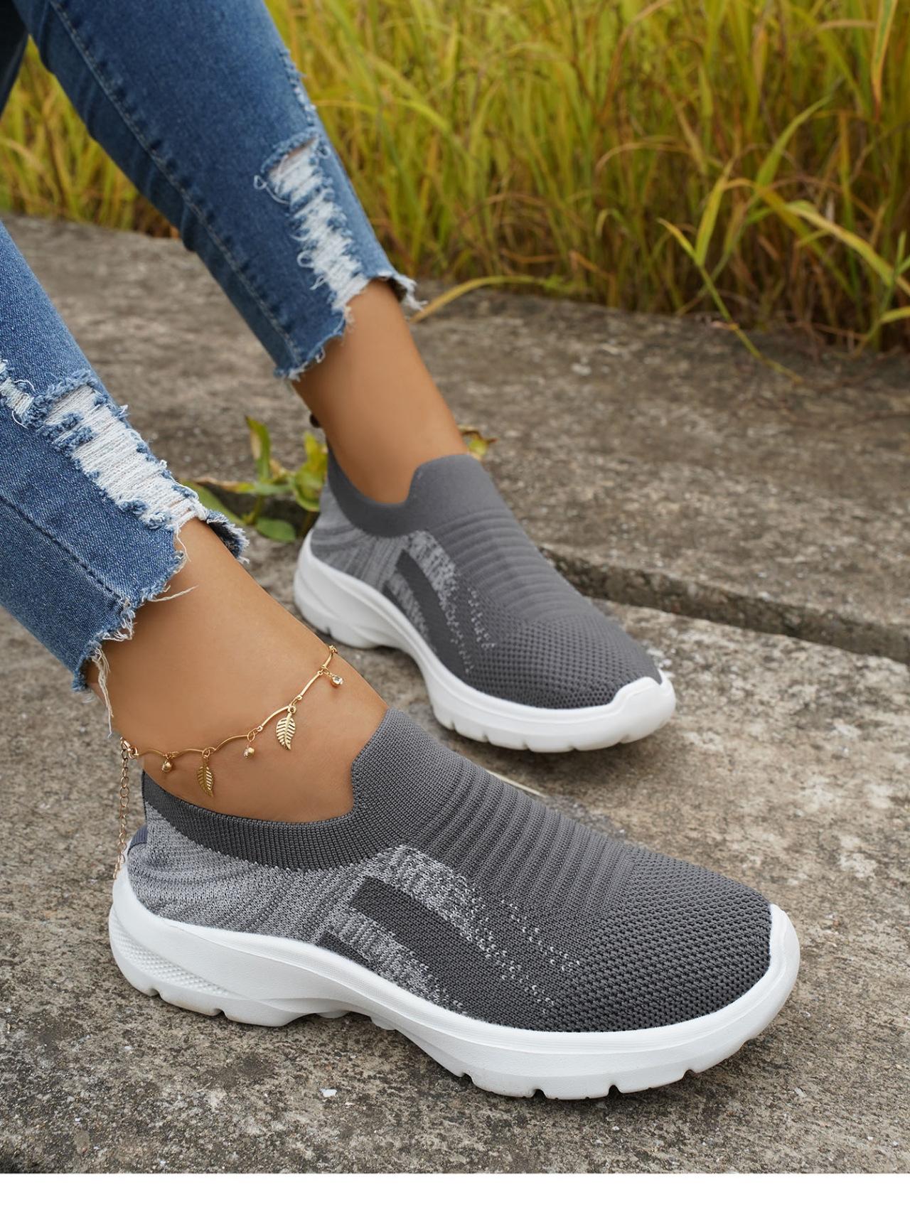 Zapatos nuevos de comercio exterior europeos y americanos para mujer, zapatos deportivos individuales, transfronterizos, de talla grande, suela suave, transpirables, tejidos de punto, deportivos casuales, venta al por mayor