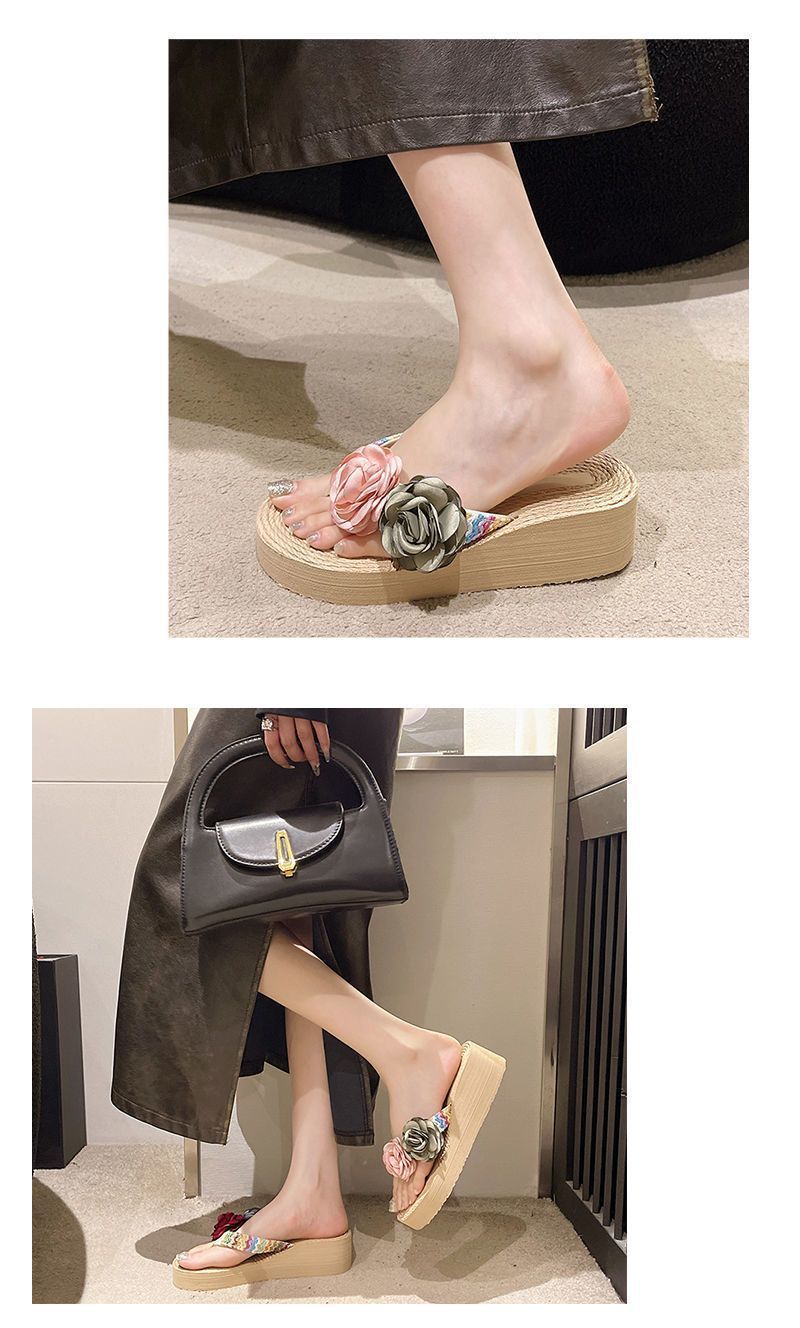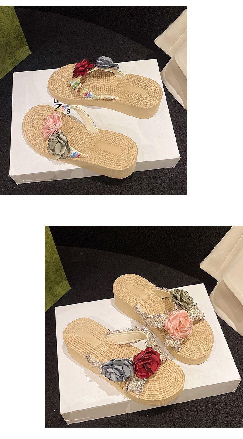 Compra Verano 2025 Nuevas Zapatillas de Playa Zapatillas Moda Mujer Ropa Exterior Antideslizante Suela Gruesa Sandalias y Zapatillas Sandalias de Tacón de Cuña con Flores para Mujer al por mayor en Joom.pro