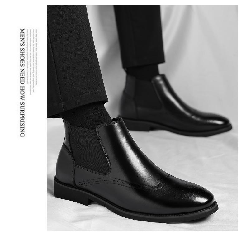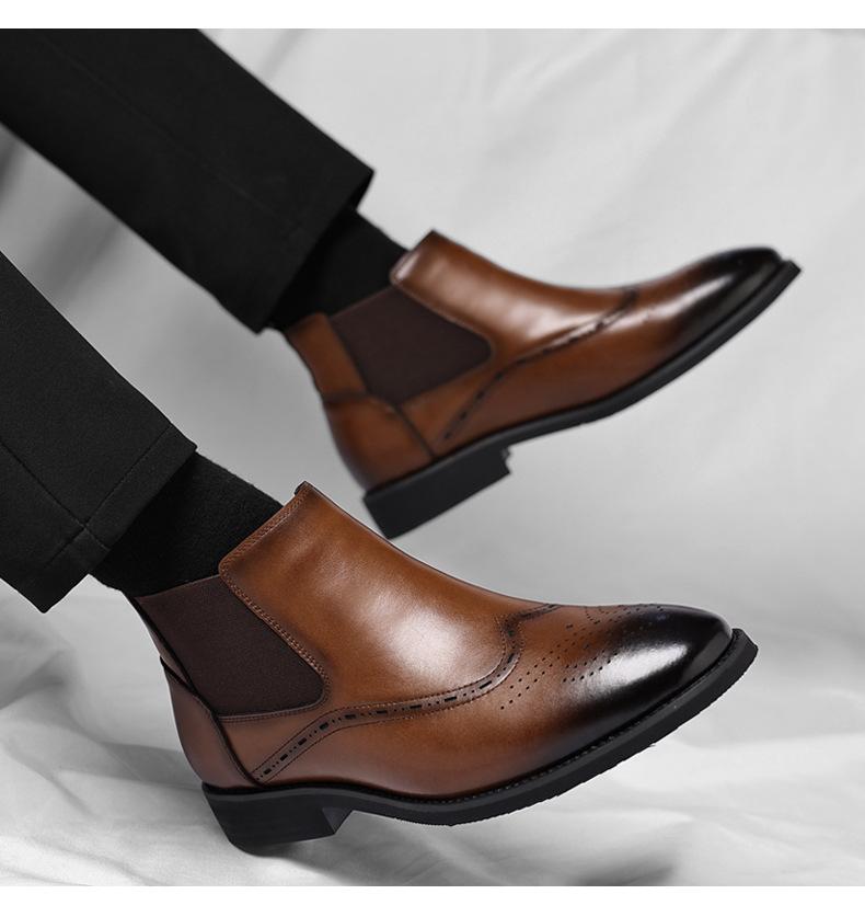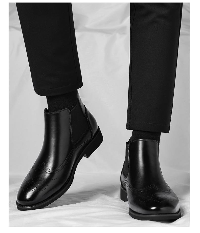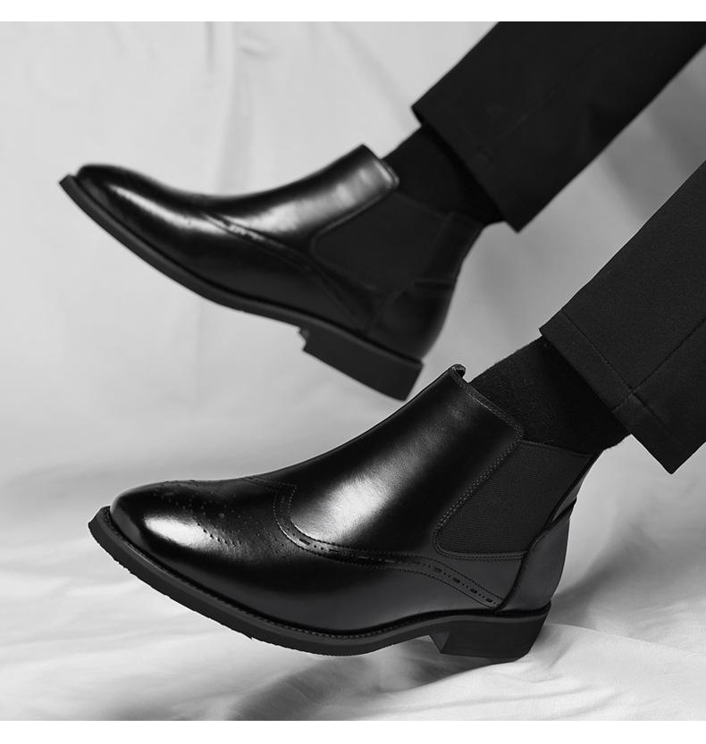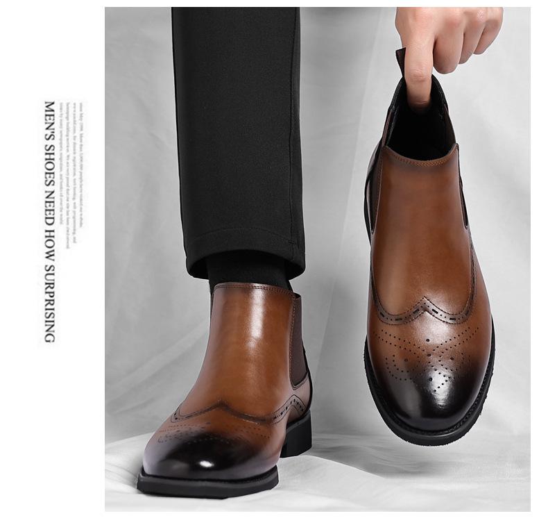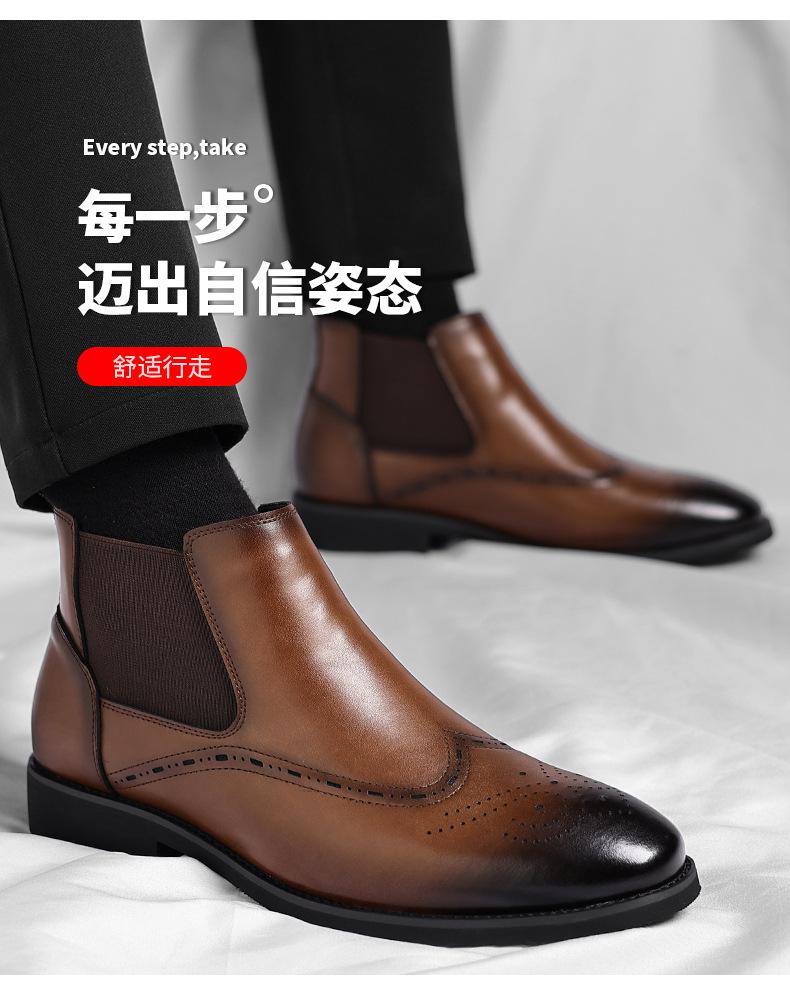 Botas Chelsea para Hombre Botas Martin Estilo de Negocios Zapatos de Cuero de Caña Alta Cuero Genuino Botas Estilo Británico Botines Estilo Coreano Envío Directo Transfronterizo