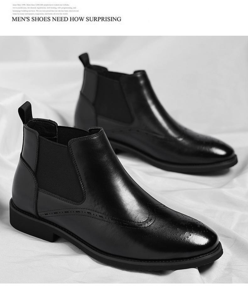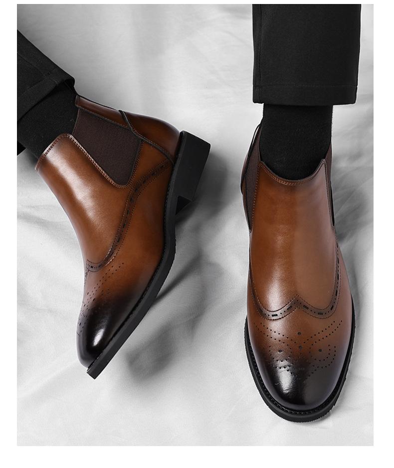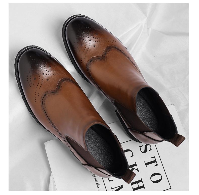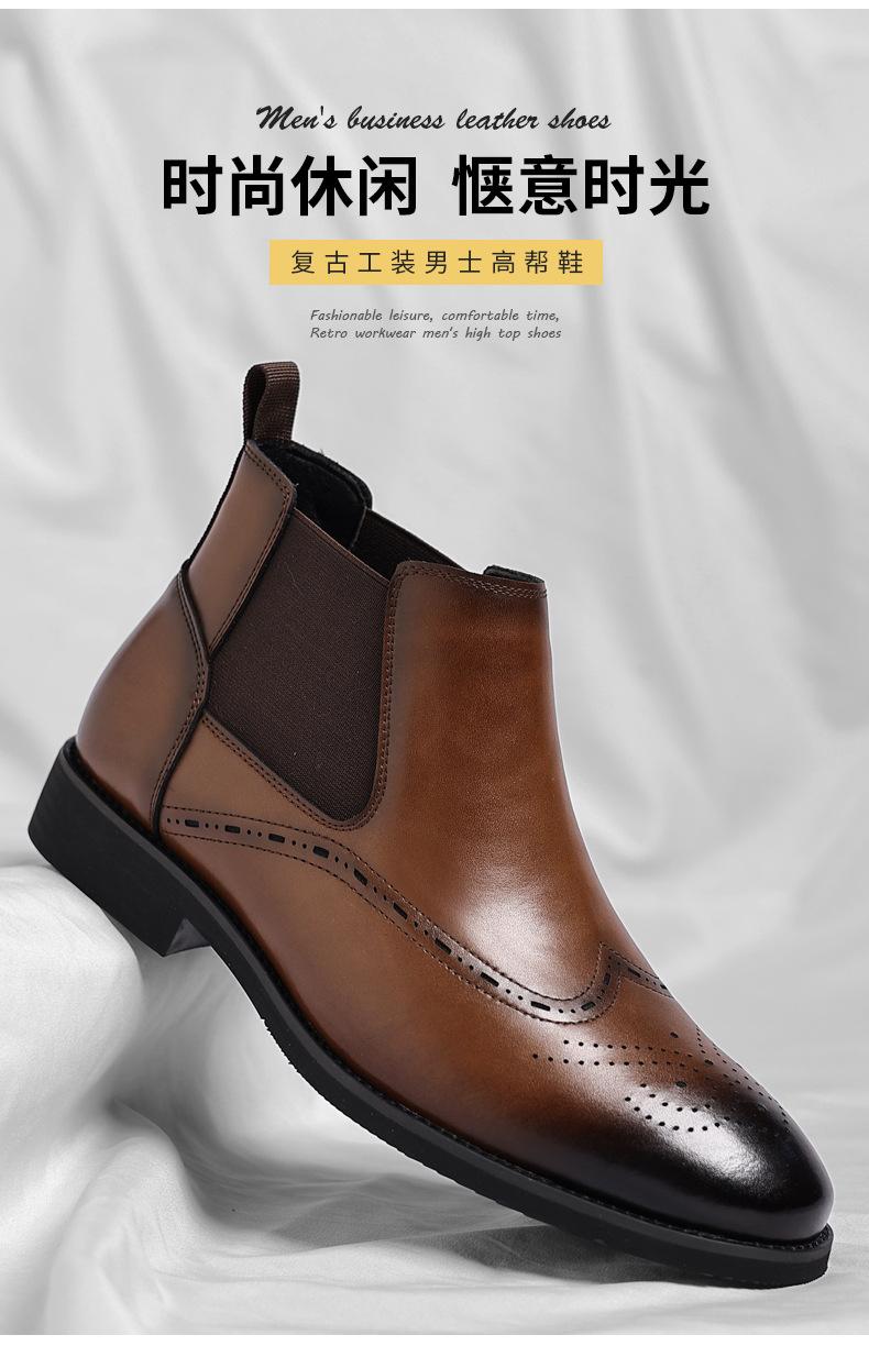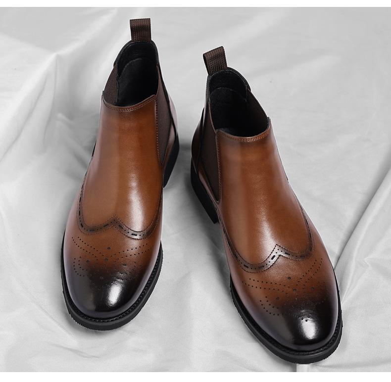 Botas Chelsea para Hombre Botas Martin Estilo de Negocios Zapatos de Cuero de Caña Alta Cuero Genuino Botas Estilo Británico Botines Estilo Coreano Envío Directo Transfronterizo