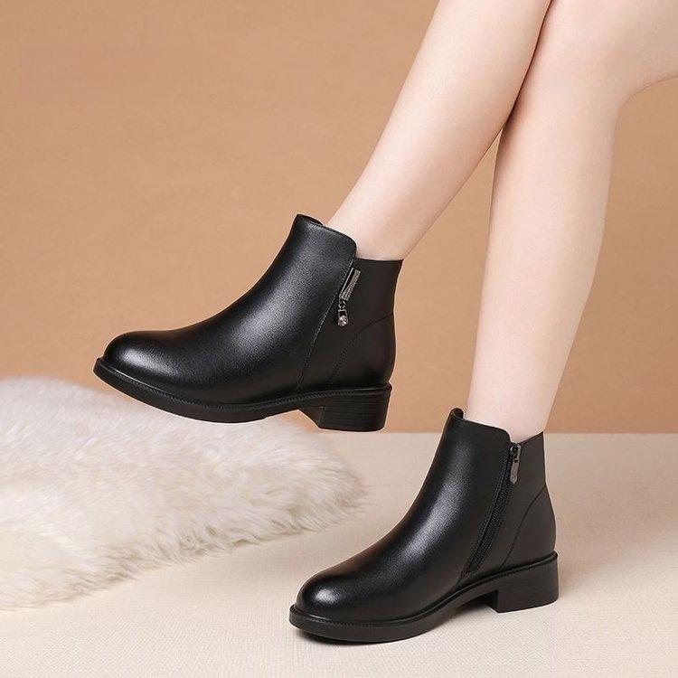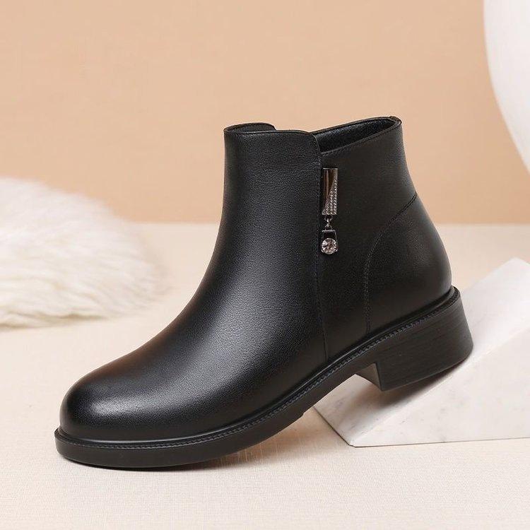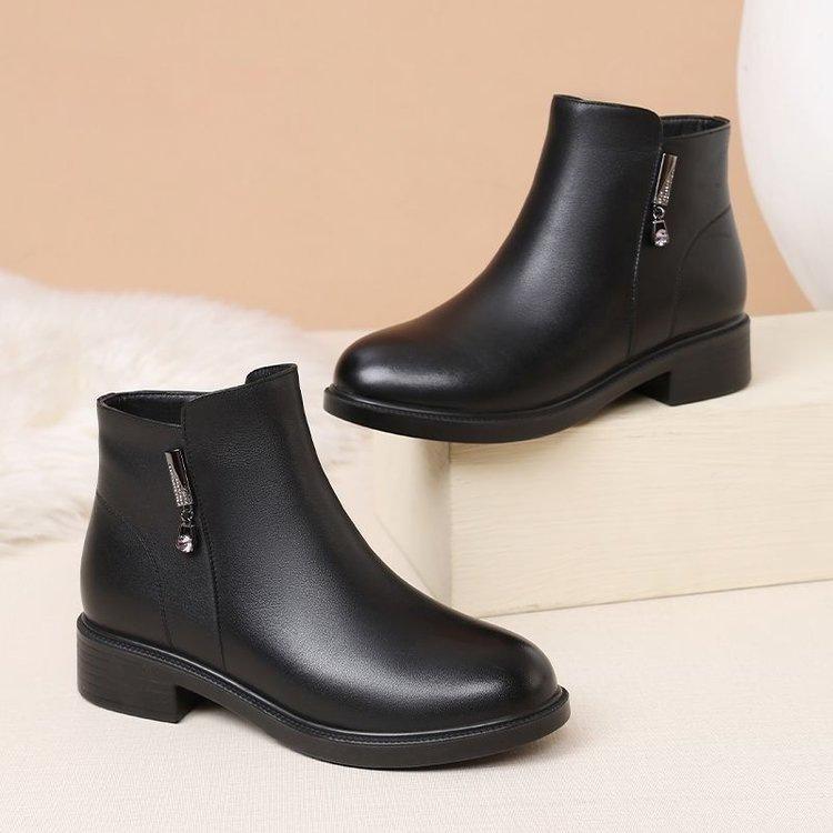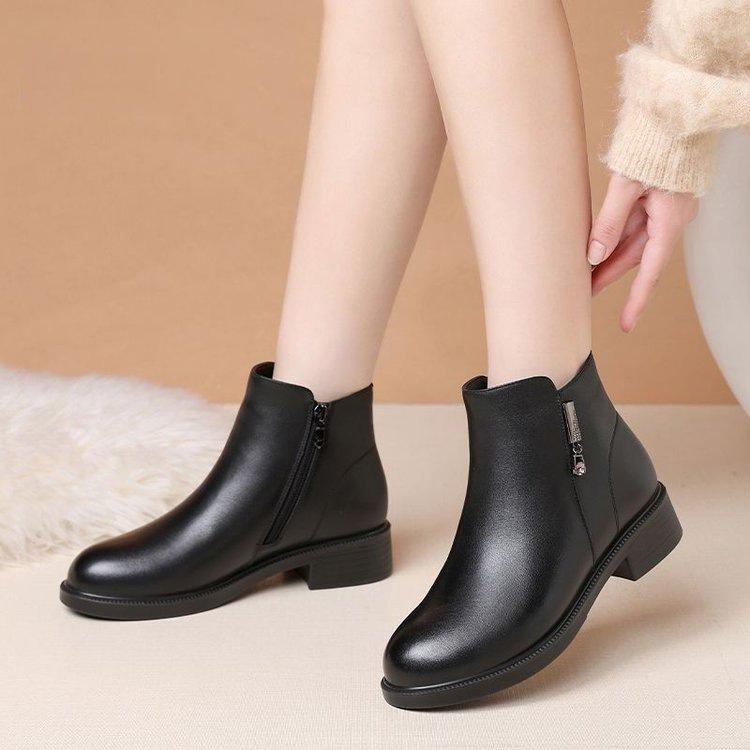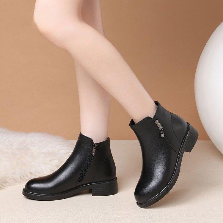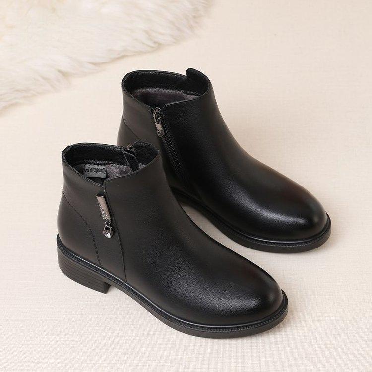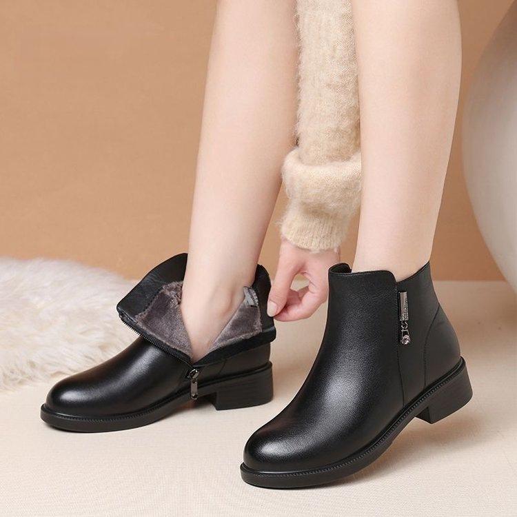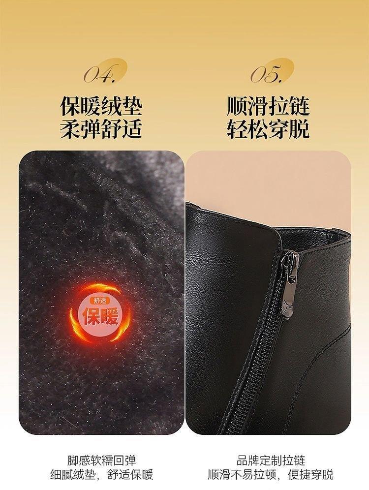 Zapatos de Algodón para Mamá Estilo Nuevo Botas Cálidas Fondo Plano Más Terciopelo Más Gruesas Botines Mujeres Suela Suave Invierno Antideslizantes Botas para Mujeres de Mediana Edad y Mayores
