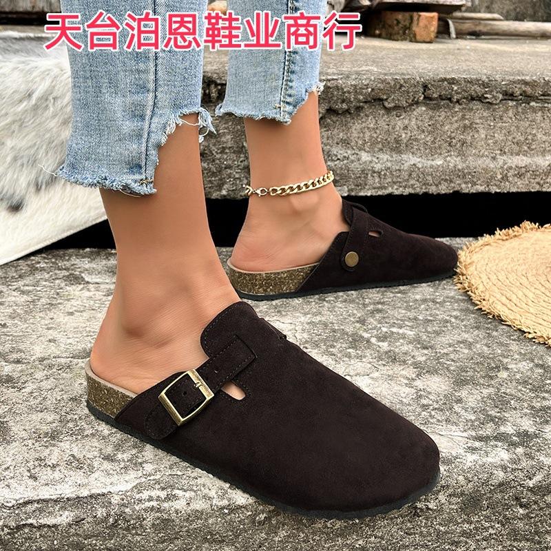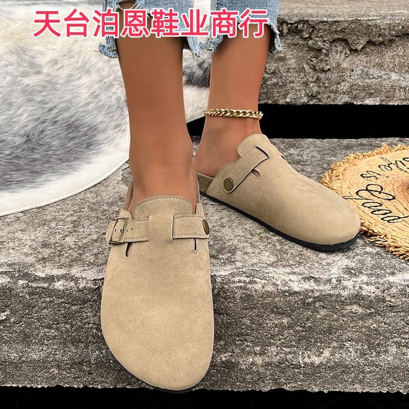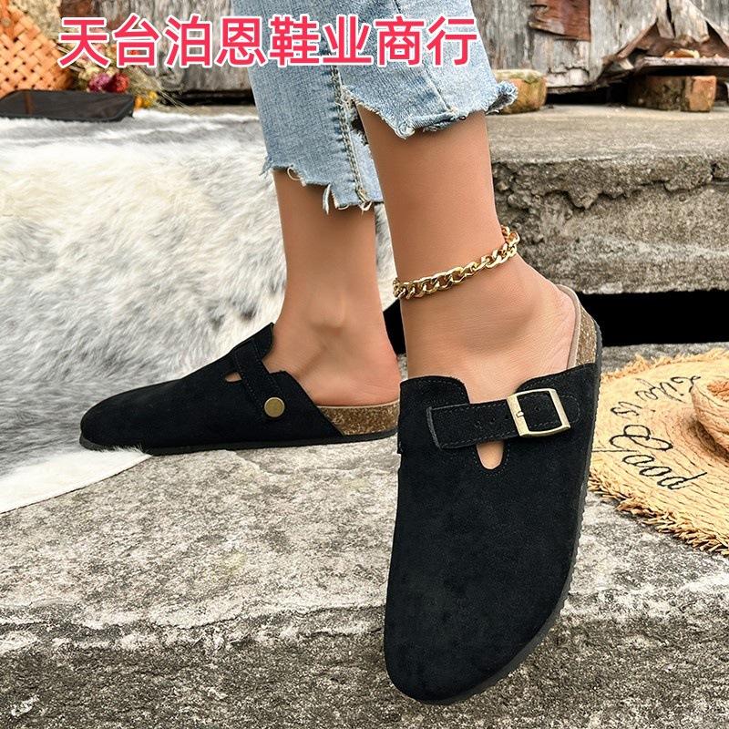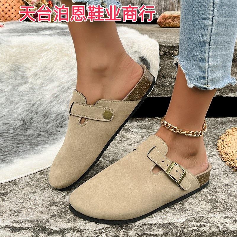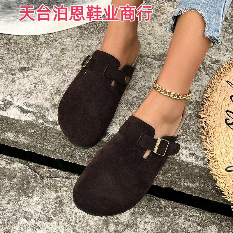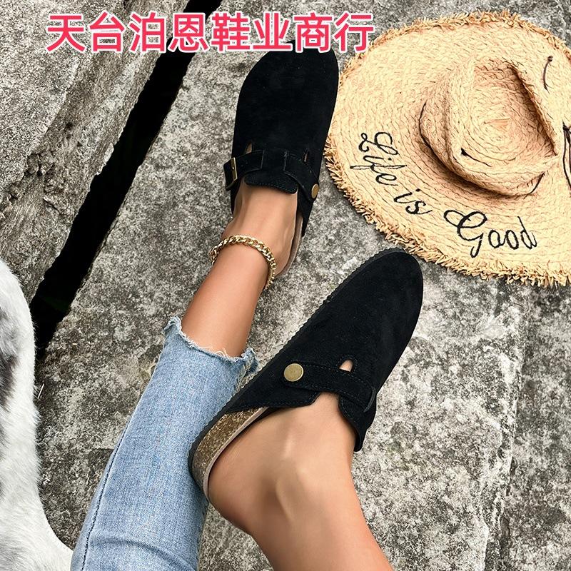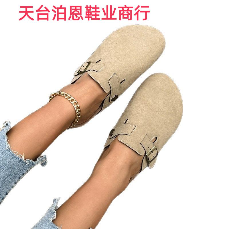 2025 Comercio Exterior Transfronterizo al Contado Venta al Mayoreo Hebilla de Cinturón Talla Grande Zapatillas Planas para Mujer Zapatillas de Punta Redonda para Uso Exterior Nuevas de Mujer
