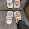 Zapatillas de Algodón de Moda Versátiles Cómodas Cálidas de Una Tira para Mujer 2025 Otoño/Invierno Nuevas Zapatillas de Dibujos Animados Lindas Peludas