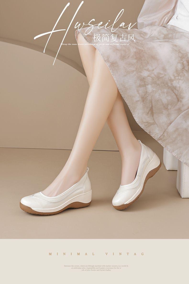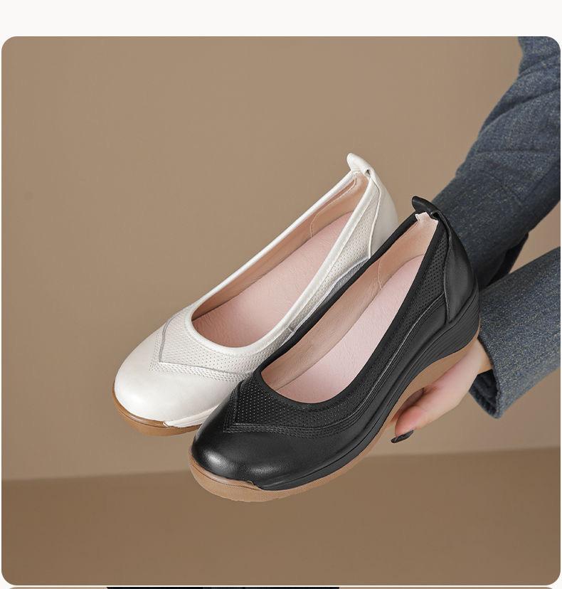 Zapatos individuales cómodos de suela gruesa para perezosas 2025 nuevo otoño casual tacón de cuña punta redonda sin cordones mocasines versátiles mujeres