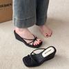 Elegantes con falda negro verano sandalias de plataforma gruesa ropa de mujer 2025 chanclas de tacón de cuña temperamento nuevo