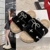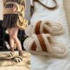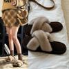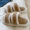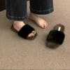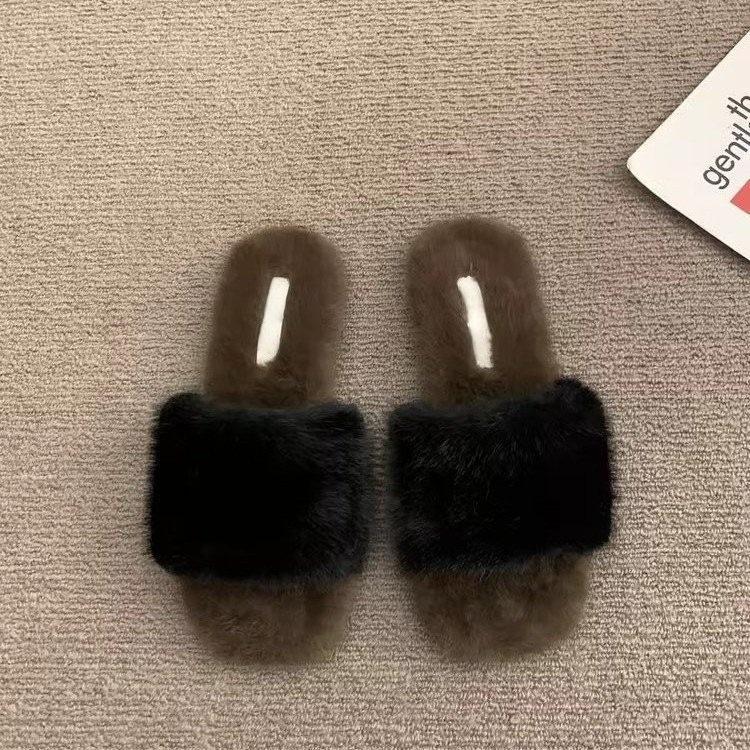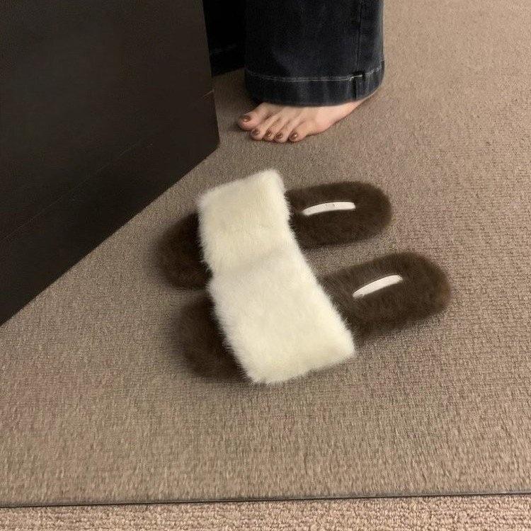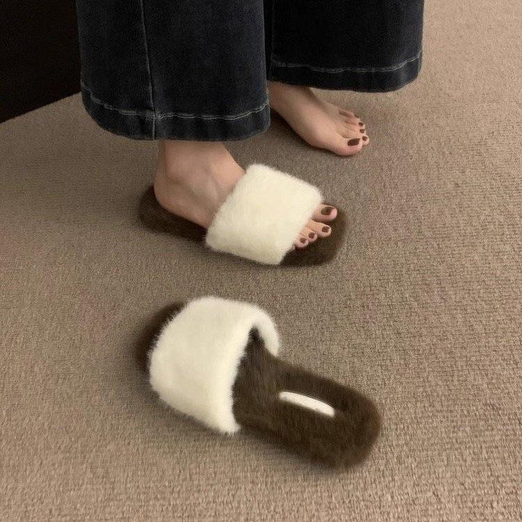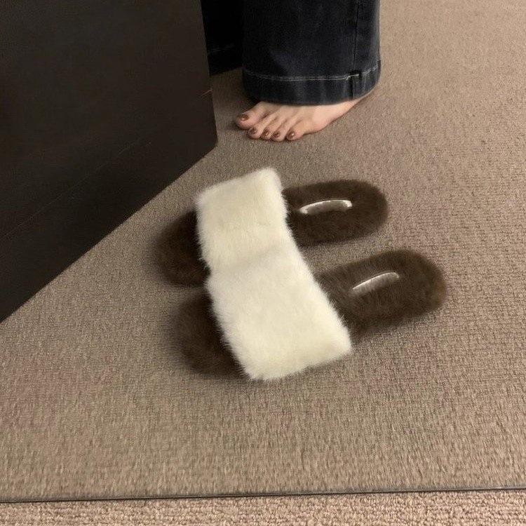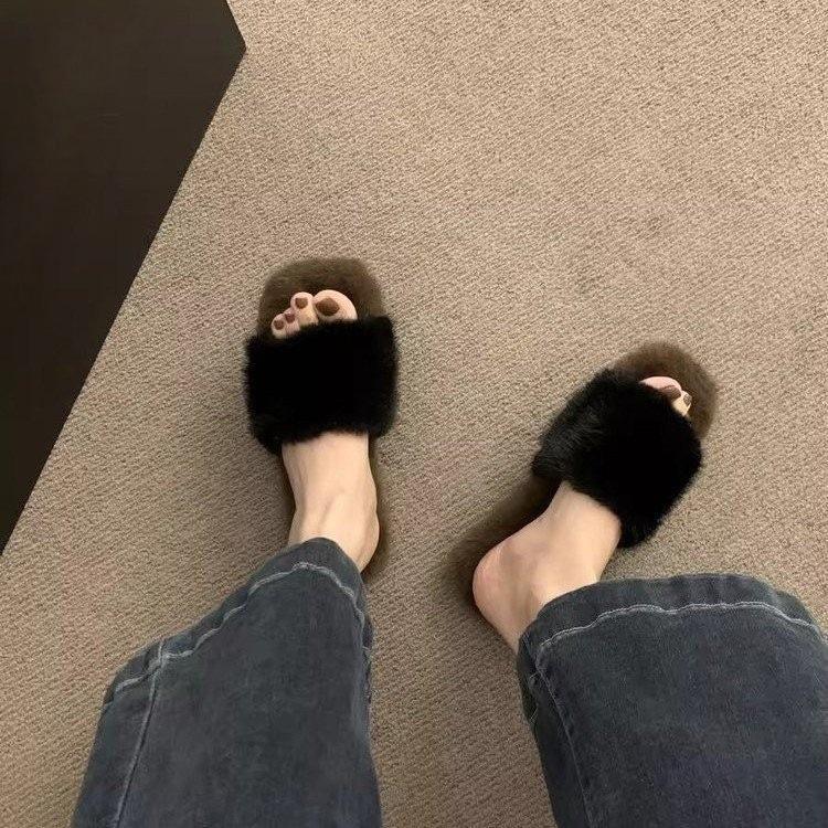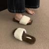 Pantuflas planas peludas simples y elegantes para mujer, otoño, estilo coreano, cómodas, antideslizantes, de punta abierta, versátiles, pantuflas esponjosas