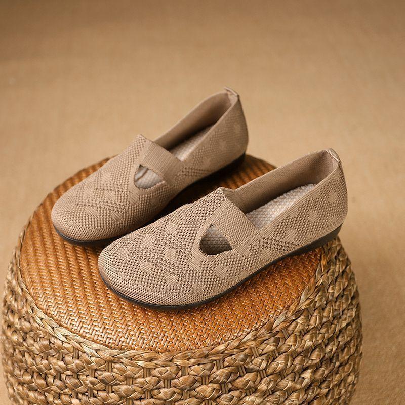Zapatos de Mamá Slip-on de Malla Hueca Transpirable Antideslizantes Casuales Zapatos de Tela de Beijing Antiguos Mujer 2025 Verano Nuevo