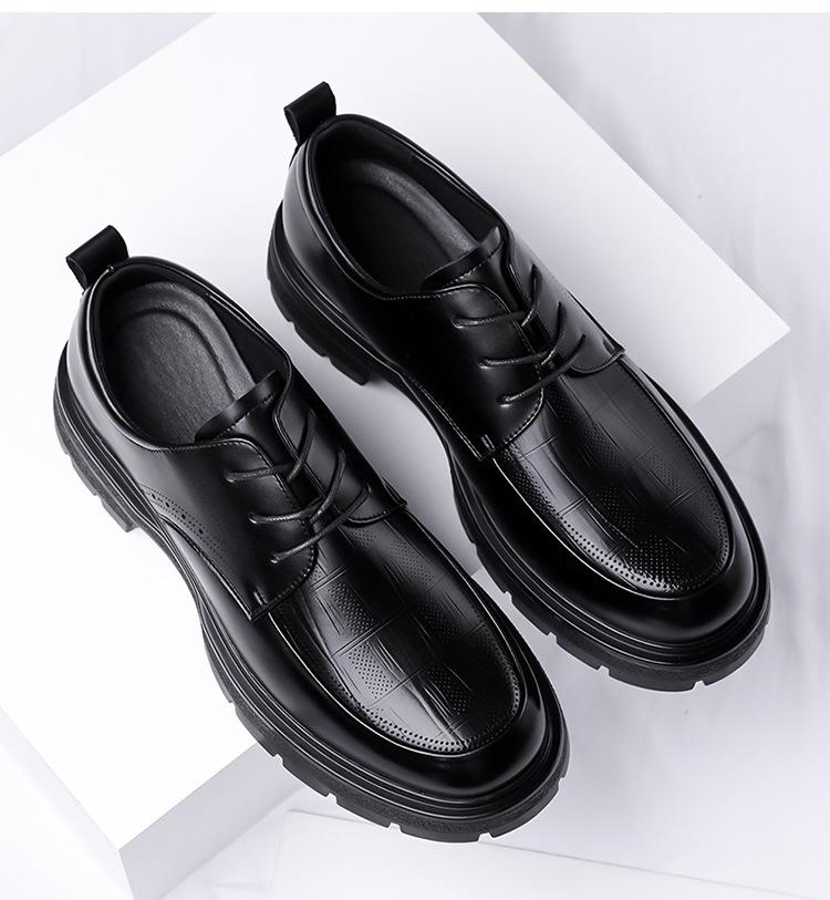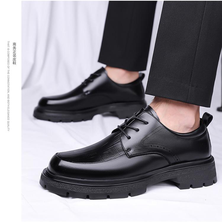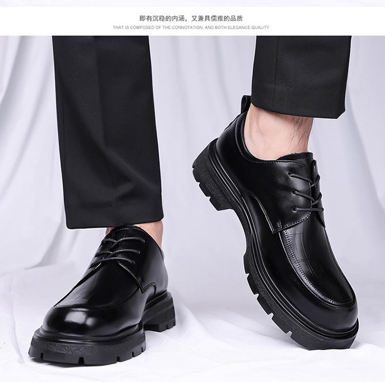 2025 Otoño/Invierno Nuevos Zapatos de Cuero Casual de Negocios para Hombre Zapatos Casuales Británicos con Cordones para Hombre Dedo Gordo Zapatos para Hombre Suela Gruesa Envío Directo