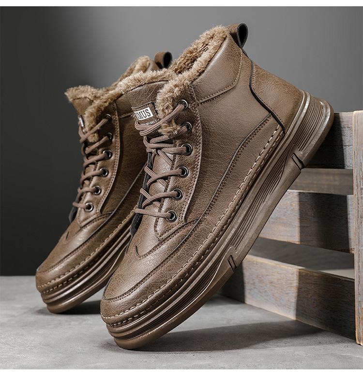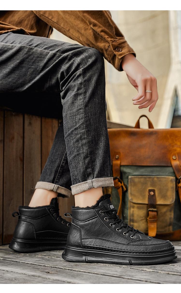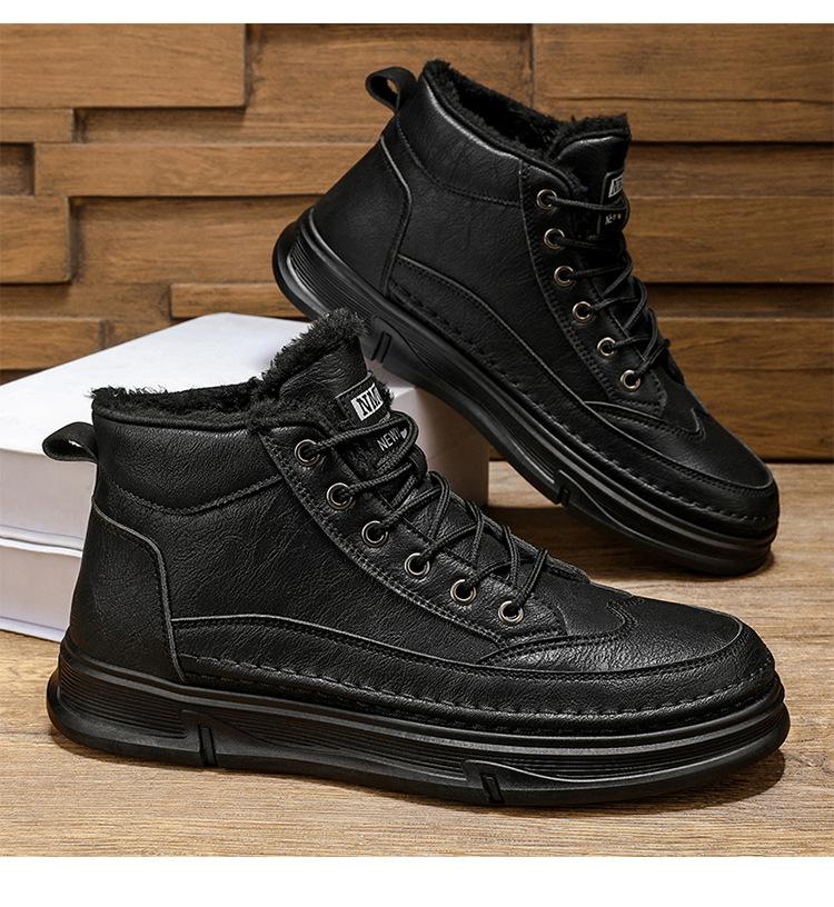Compra Botas de Terciopelo de Invierno para Hombre, Impermeables, Antideslizantes, Zapatos de Trabajo de Caña Alta, Botas Cortas Cálidas Gruesas para Hombre, Zapatos Casuales de Cuero al por mayor en Joom.pro
