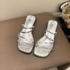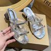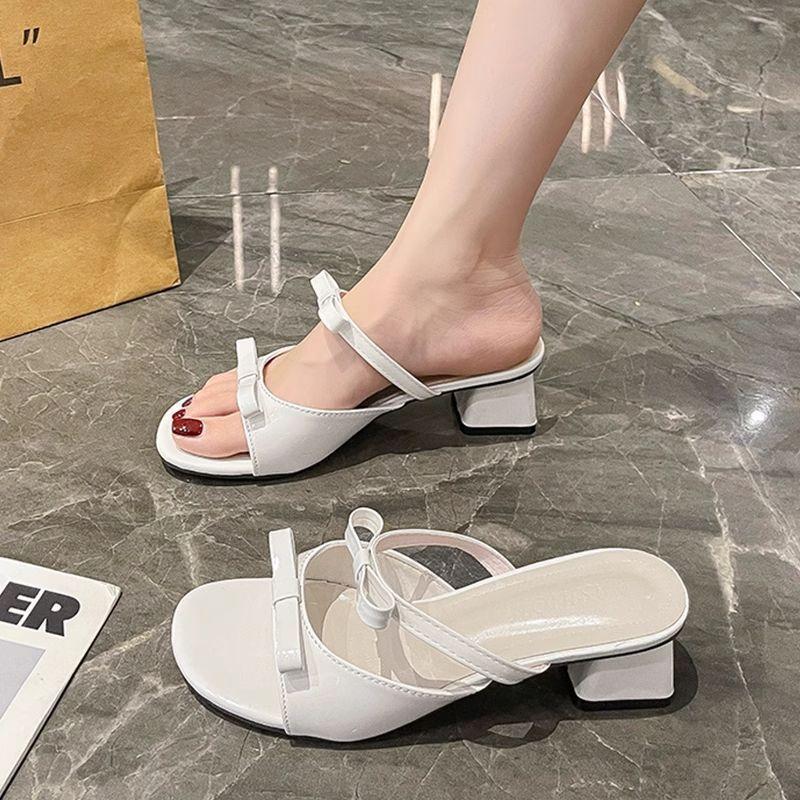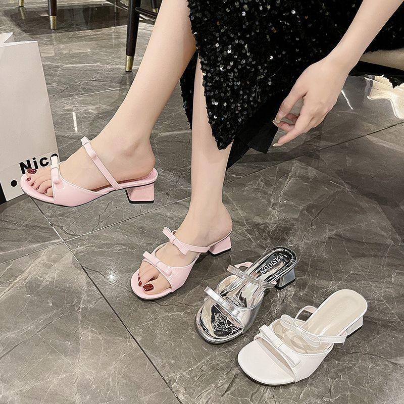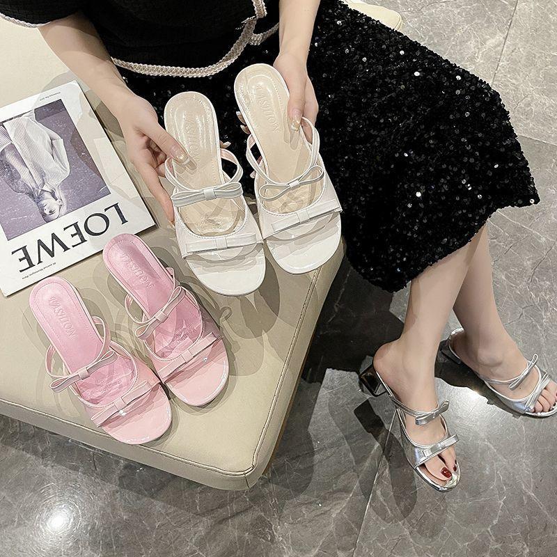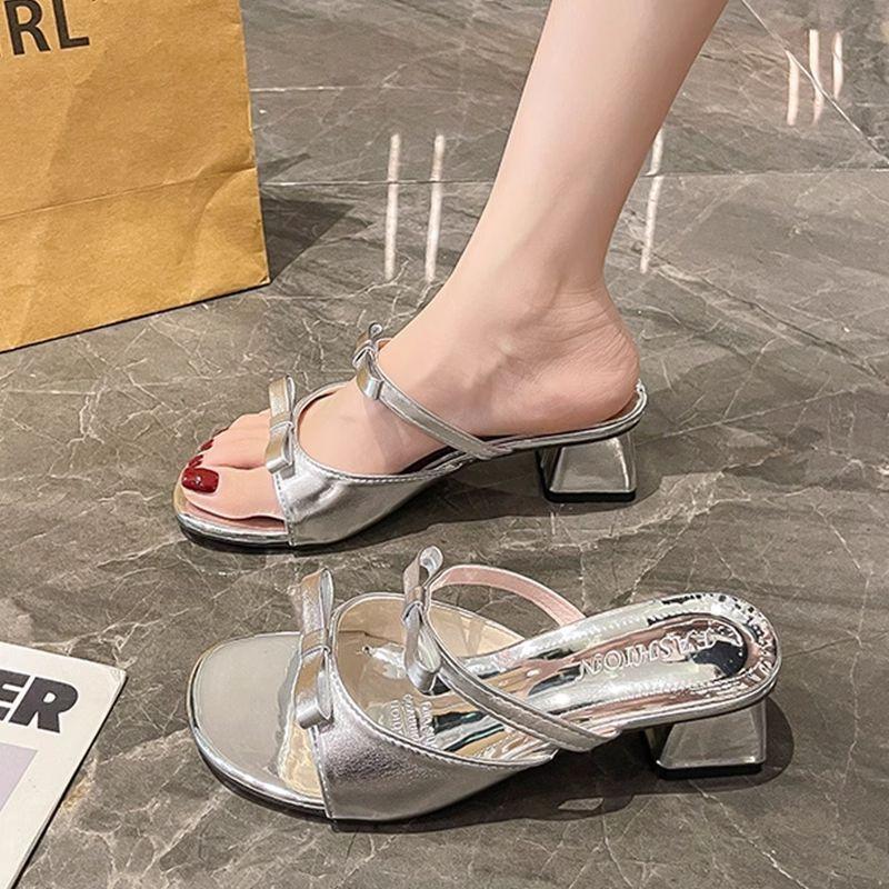 Sandalias Zapatillas de Hada 2025 Nuevas Dulces Moño Francés Exterior con Falda Tacones Altos Zapatillas Ligeras de Una Línea