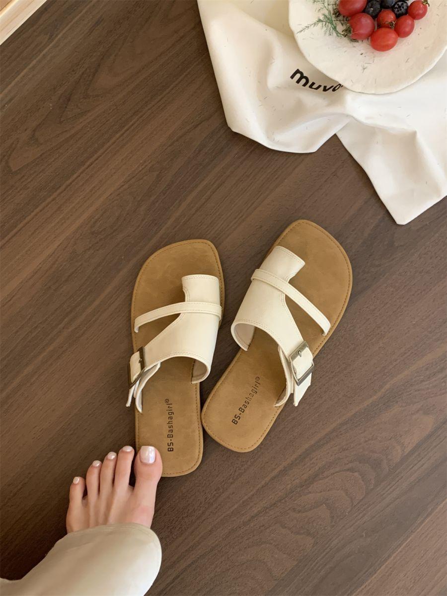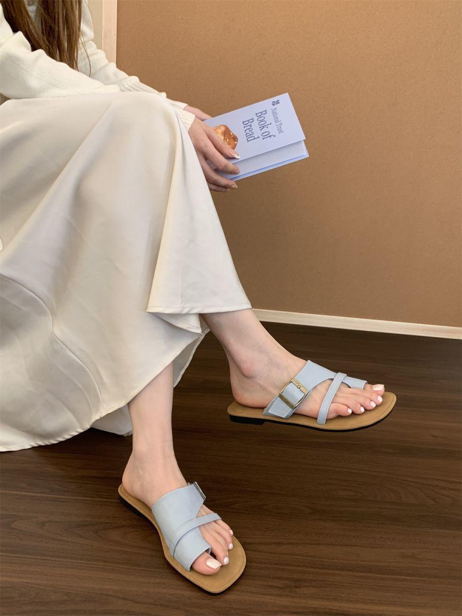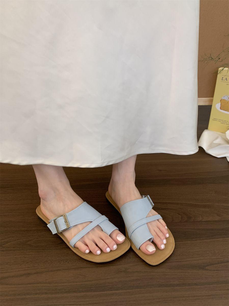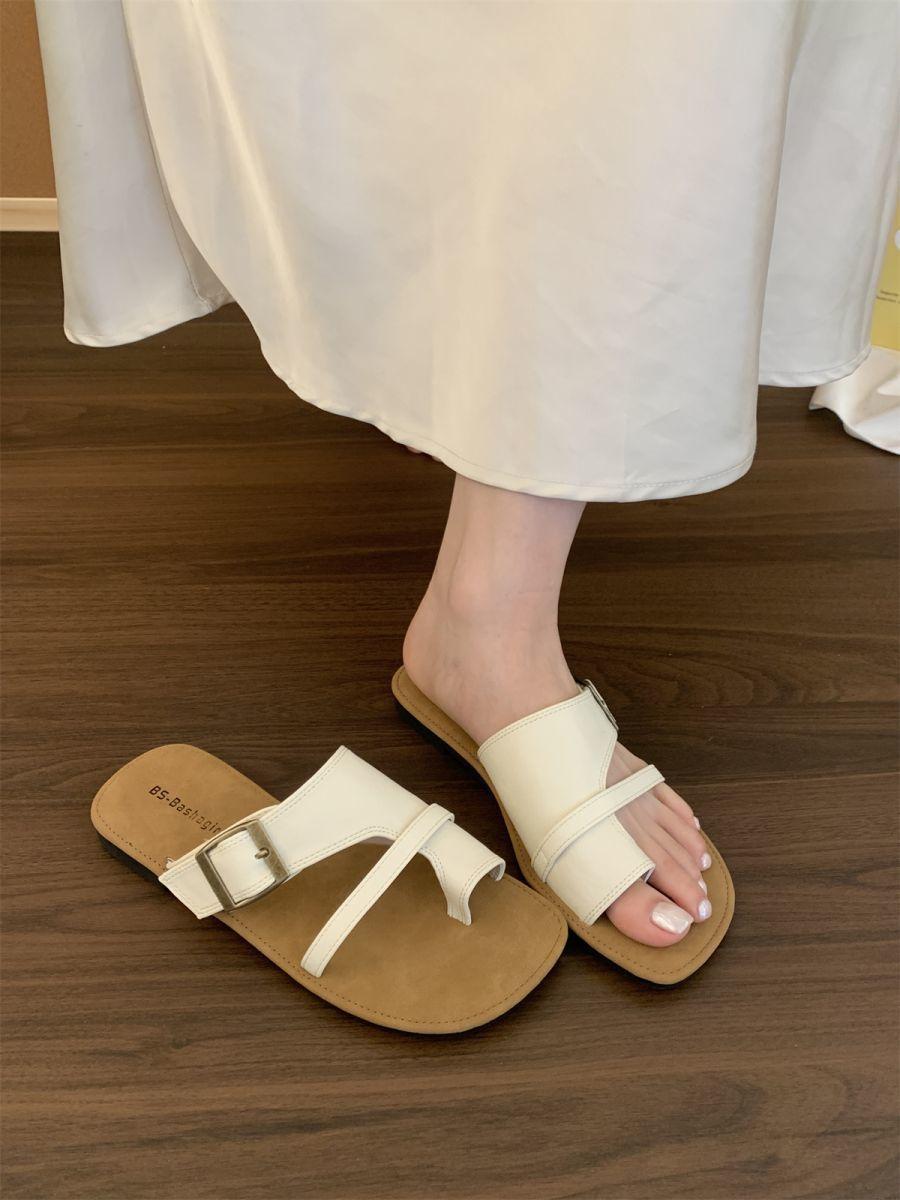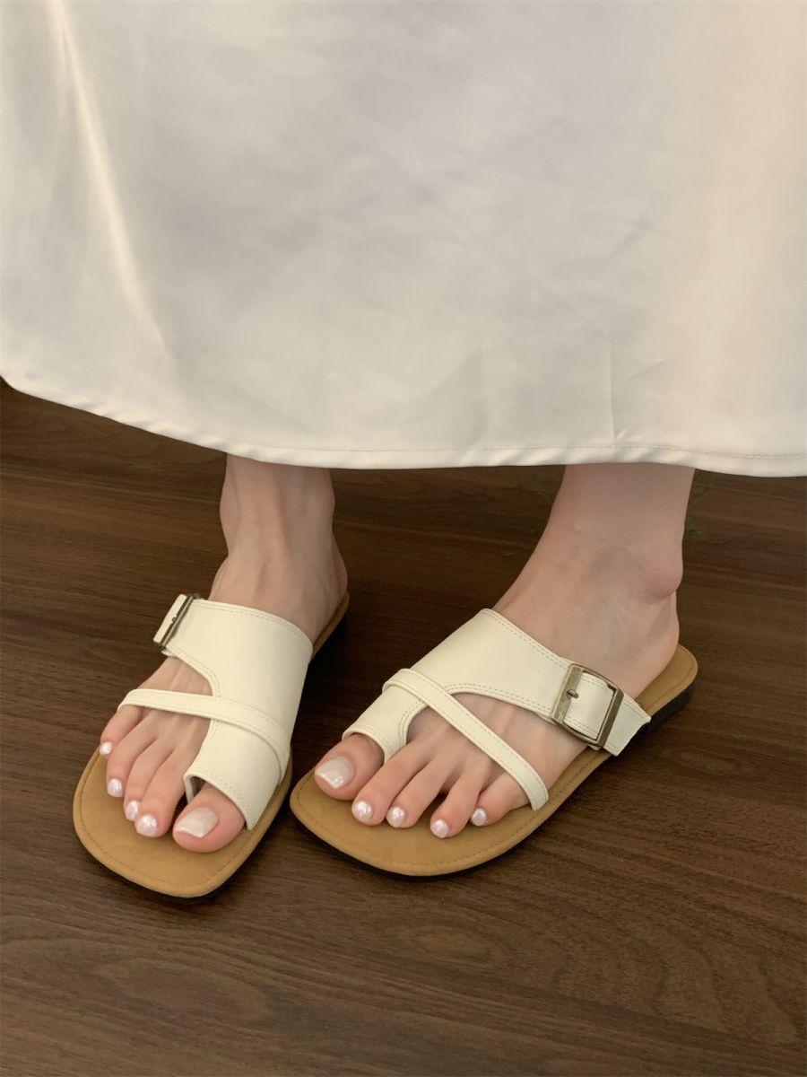 Pantuflas de dedo para mujer verano nuevo francés retro impresionantes pantuflas geniales suela plana suave vacaciones estilo hada zapatos de playa