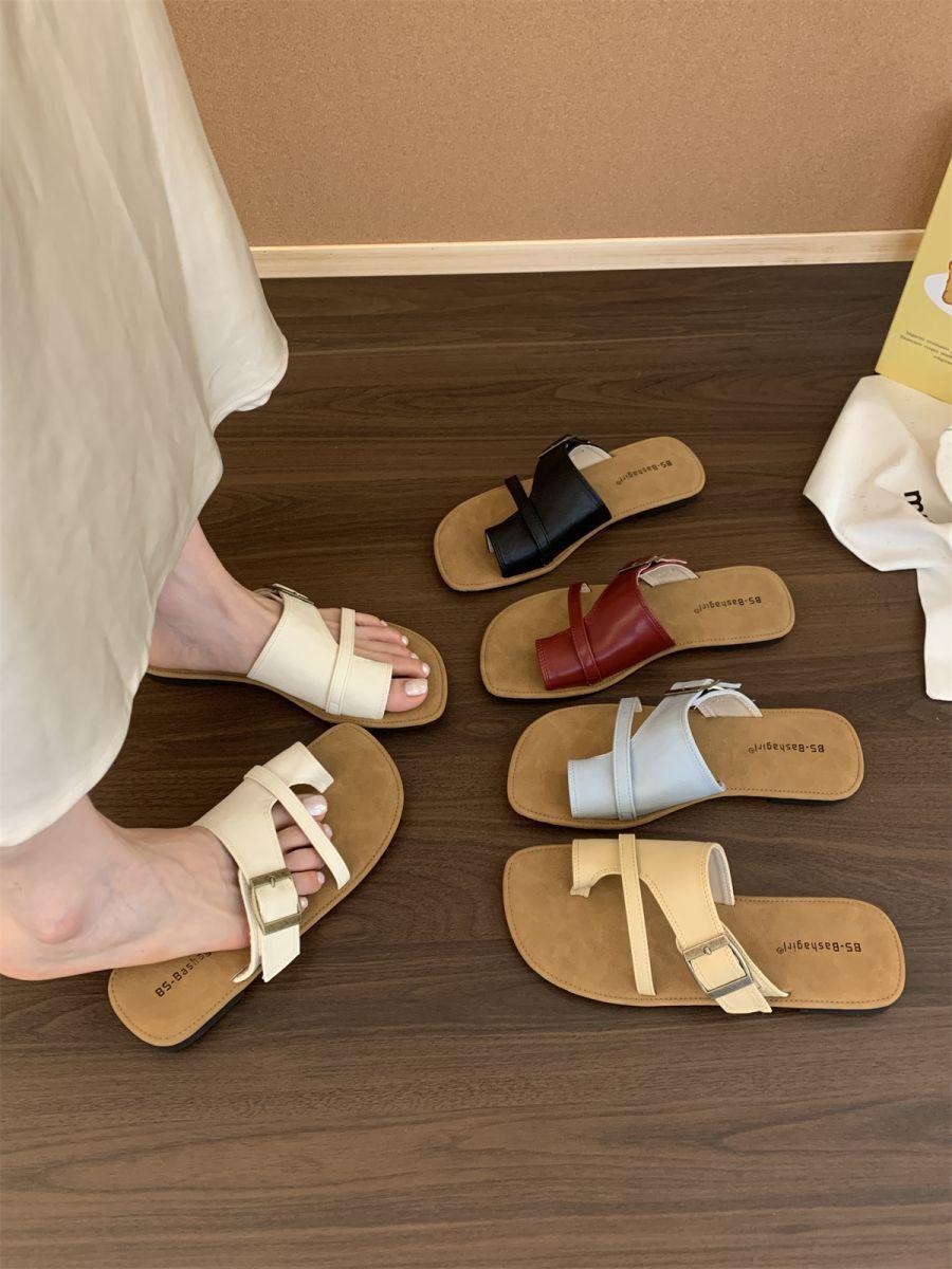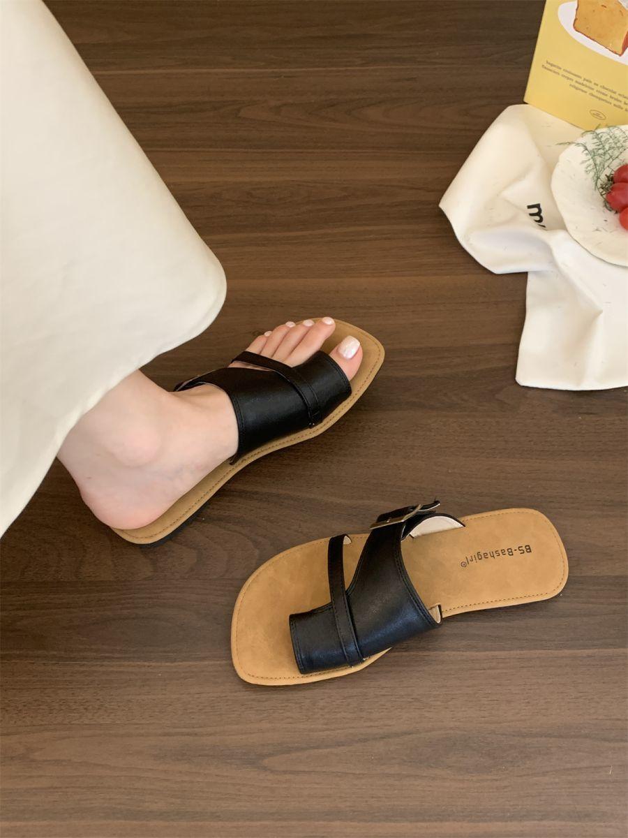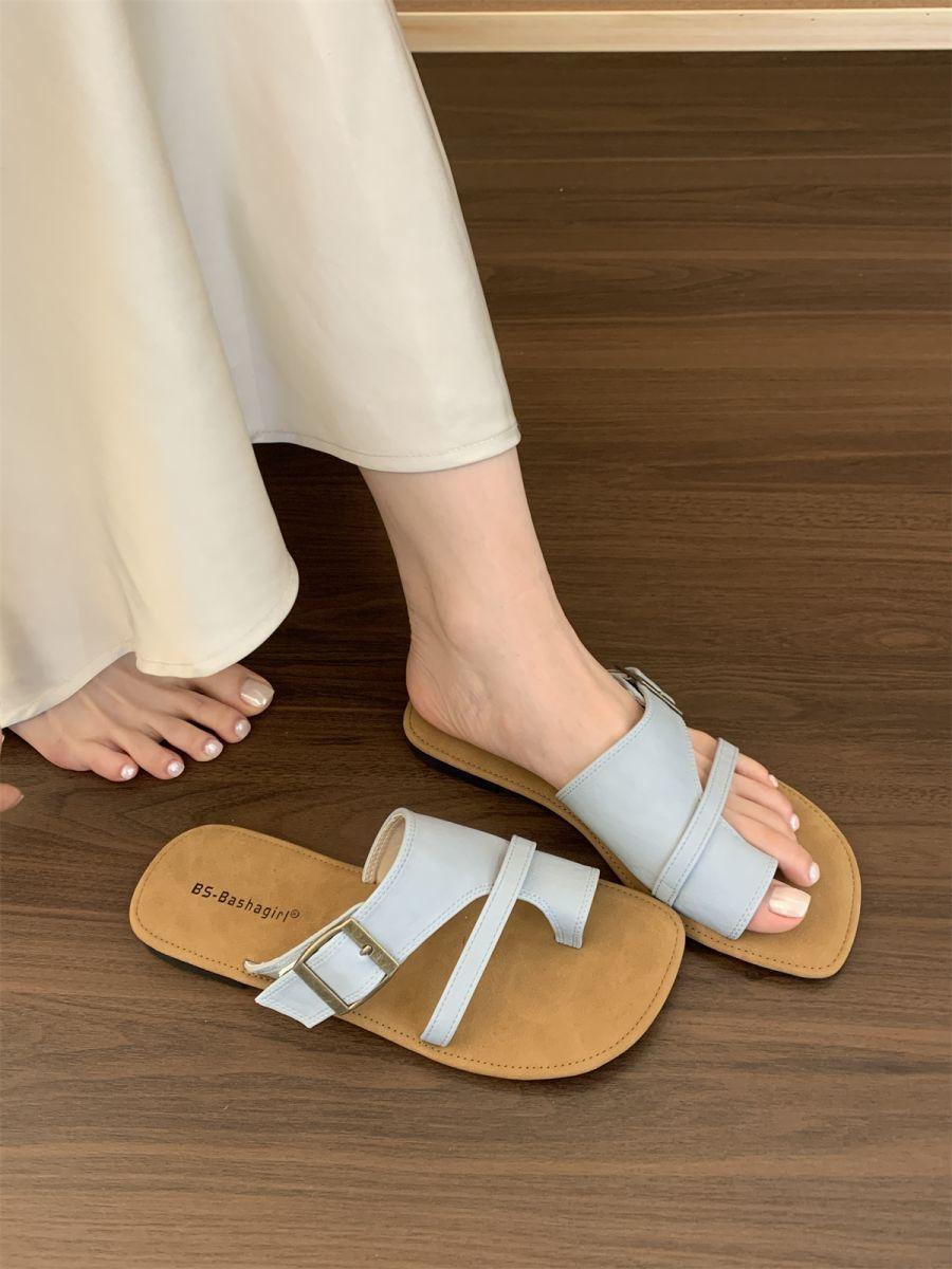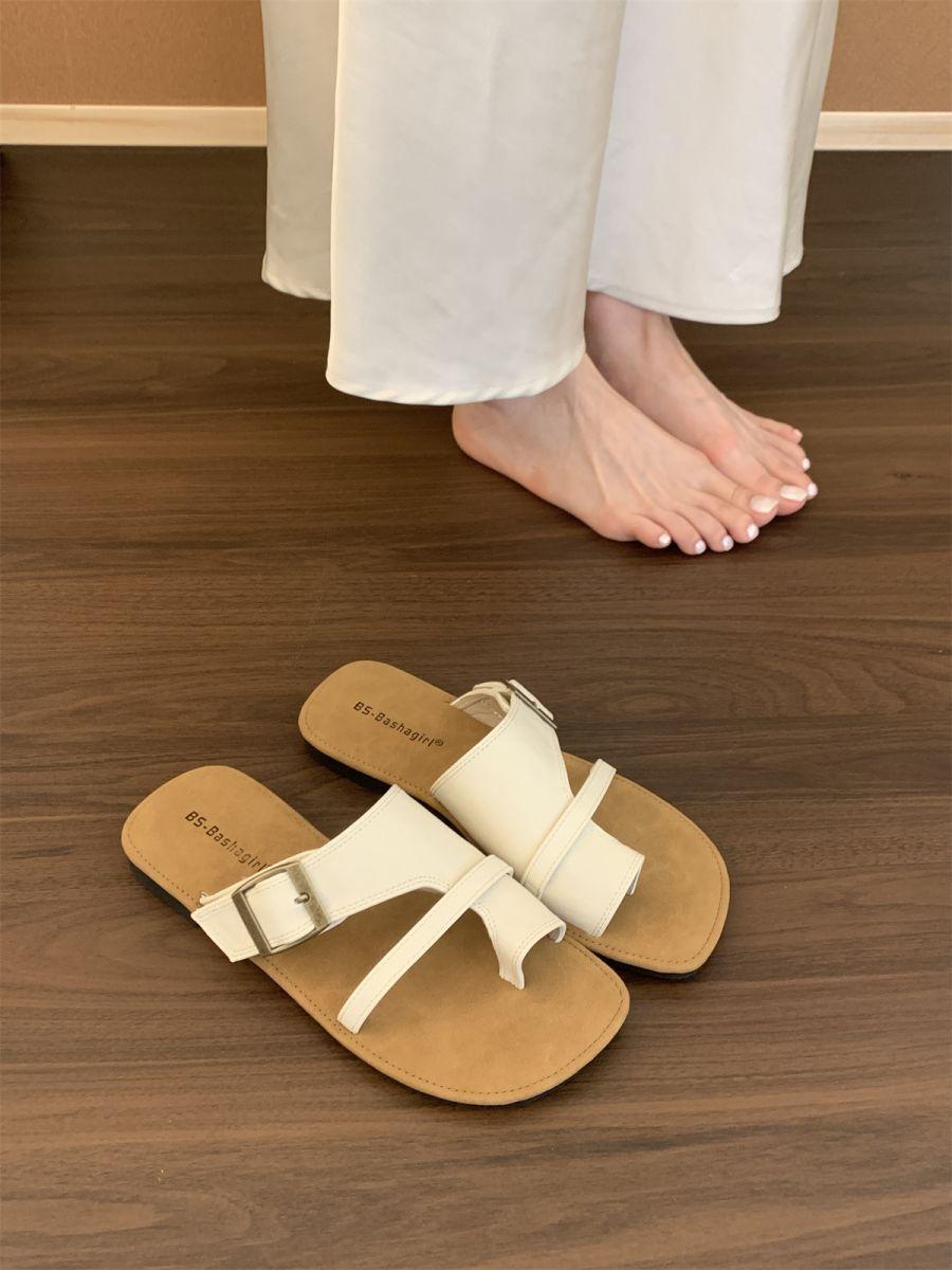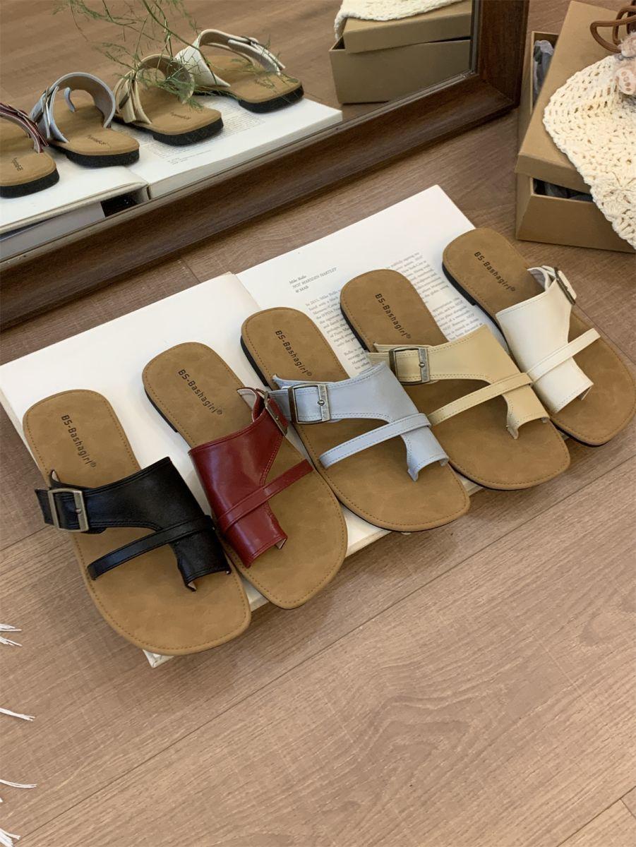 Pantuflas de dedo para mujer verano nuevo francés retro impresionantes pantuflas geniales suela plana suave vacaciones estilo hada zapatos de playa