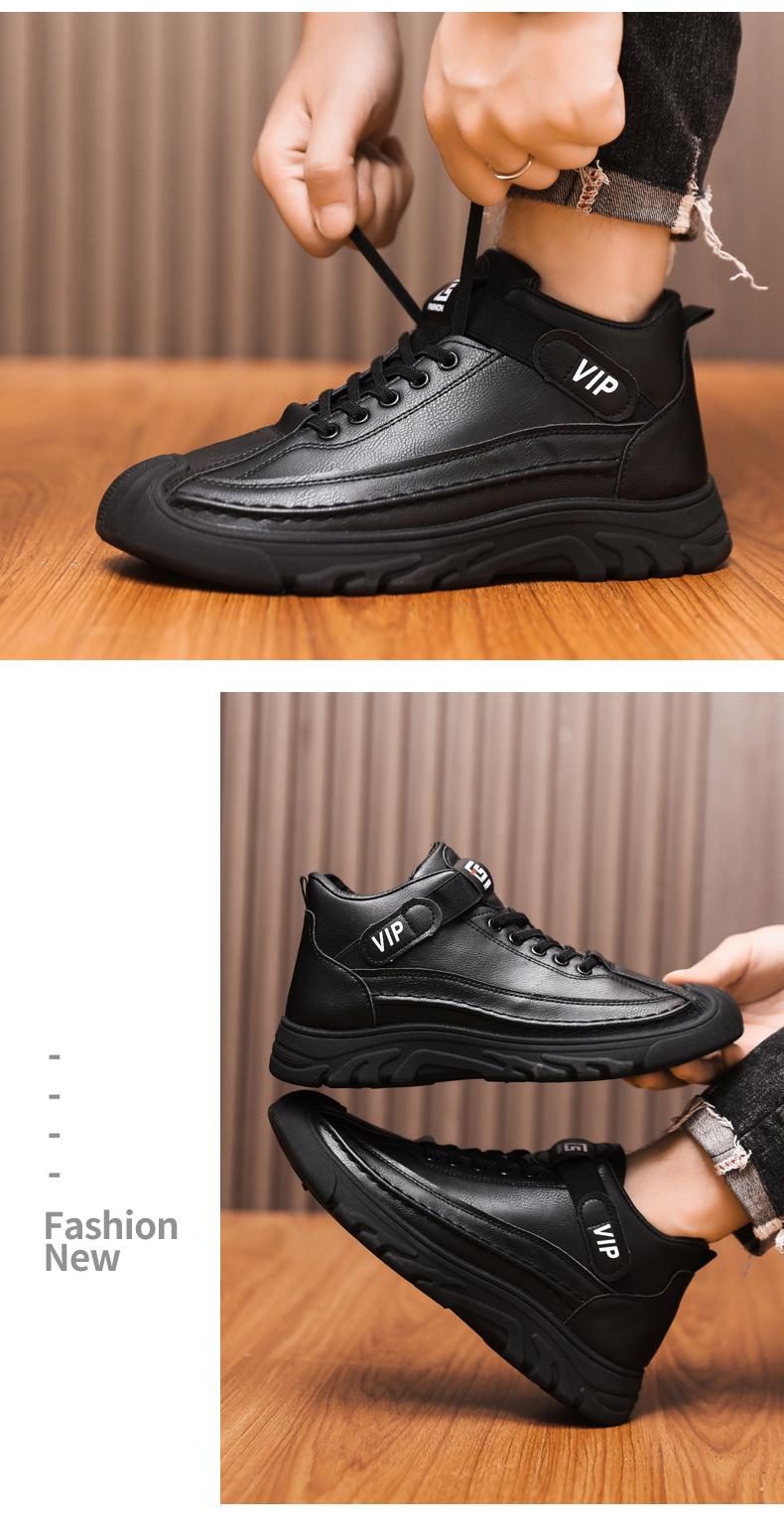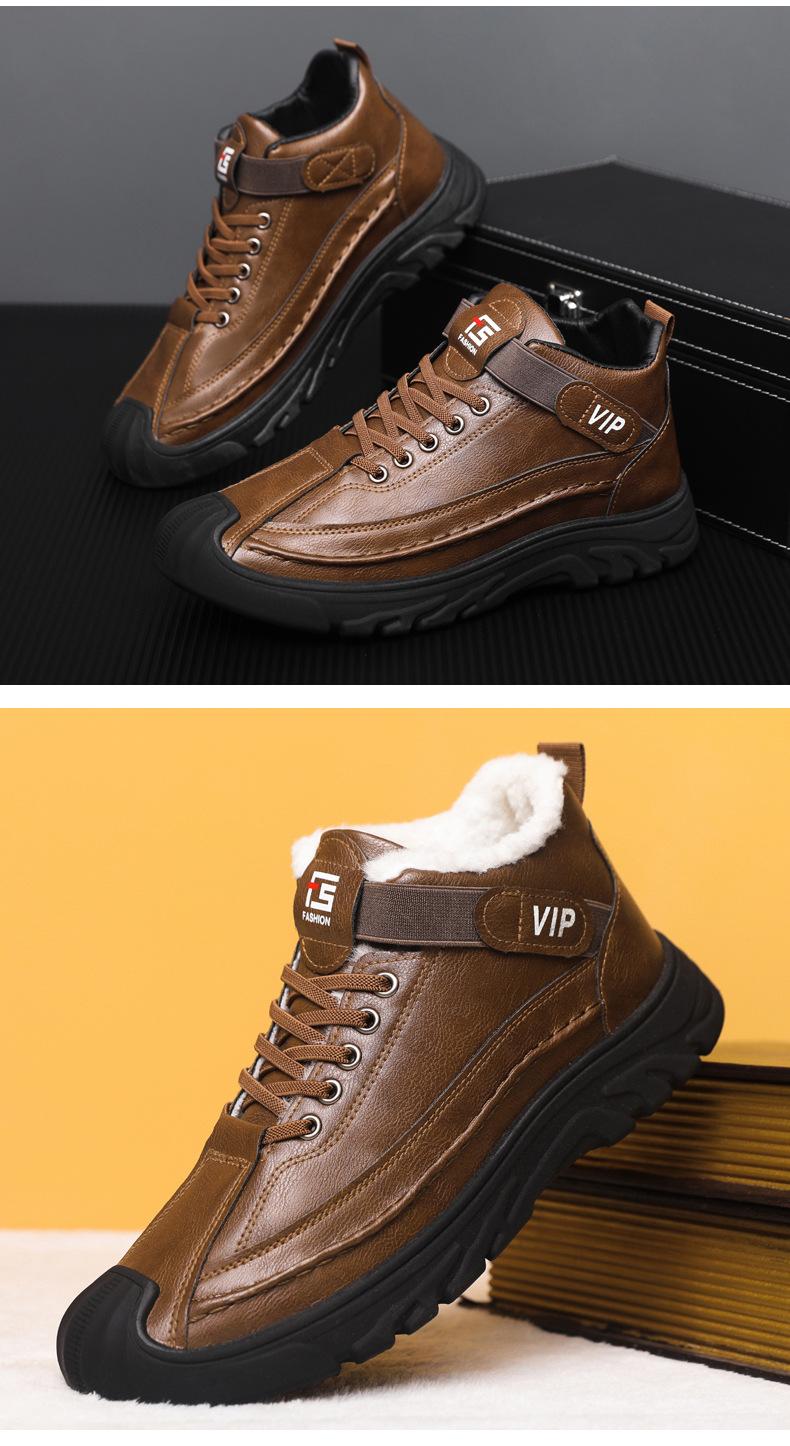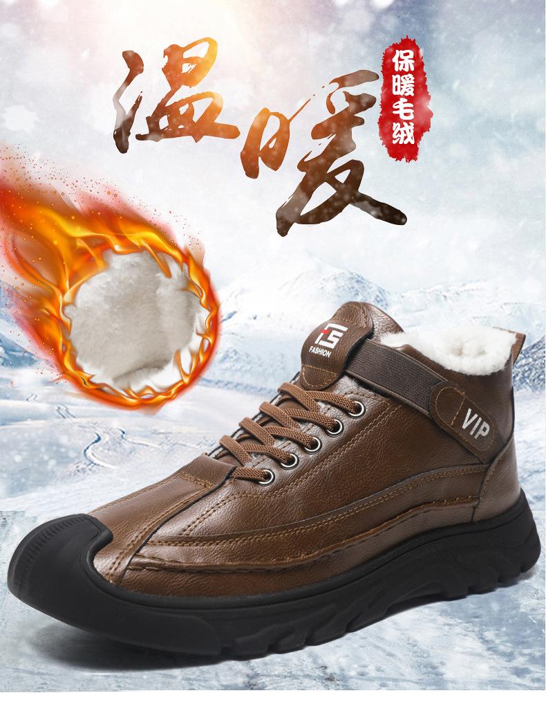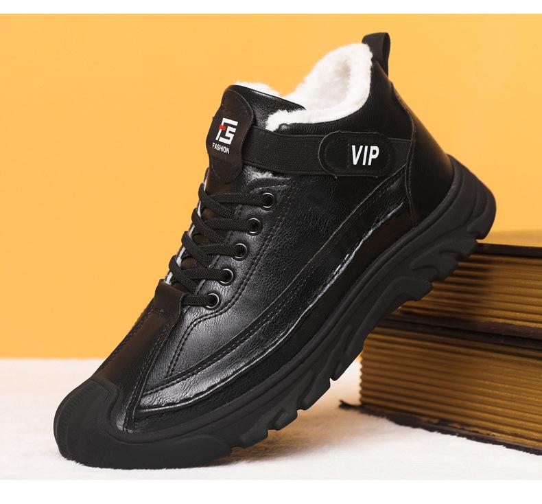Zapatos de hombre transfronterizos algodón único mismo estilo exterior casual zapatos deportivos superficie de cuero cálido más terciopelo suela gruesa ligera botas de trabajo hombre