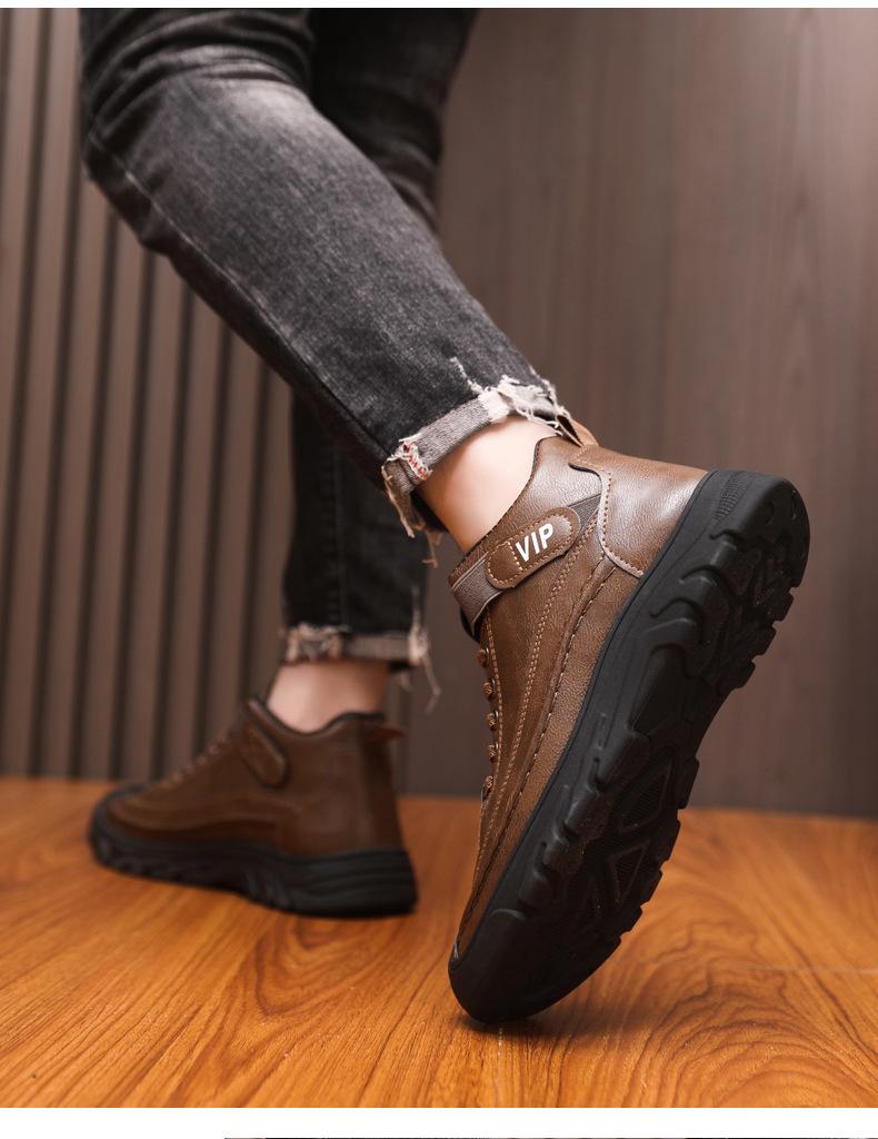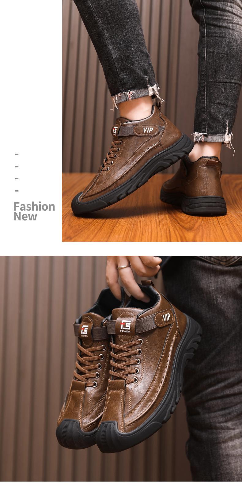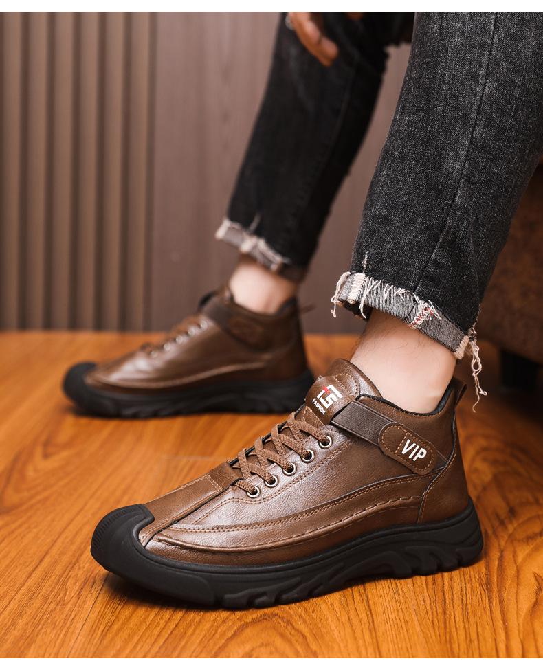 Zapatos de hombre transfronterizos algodón único mismo estilo exterior casual zapatos deportivos superficie de cuero cálido más terciopelo suela gruesa ligera botas de trabajo hombre