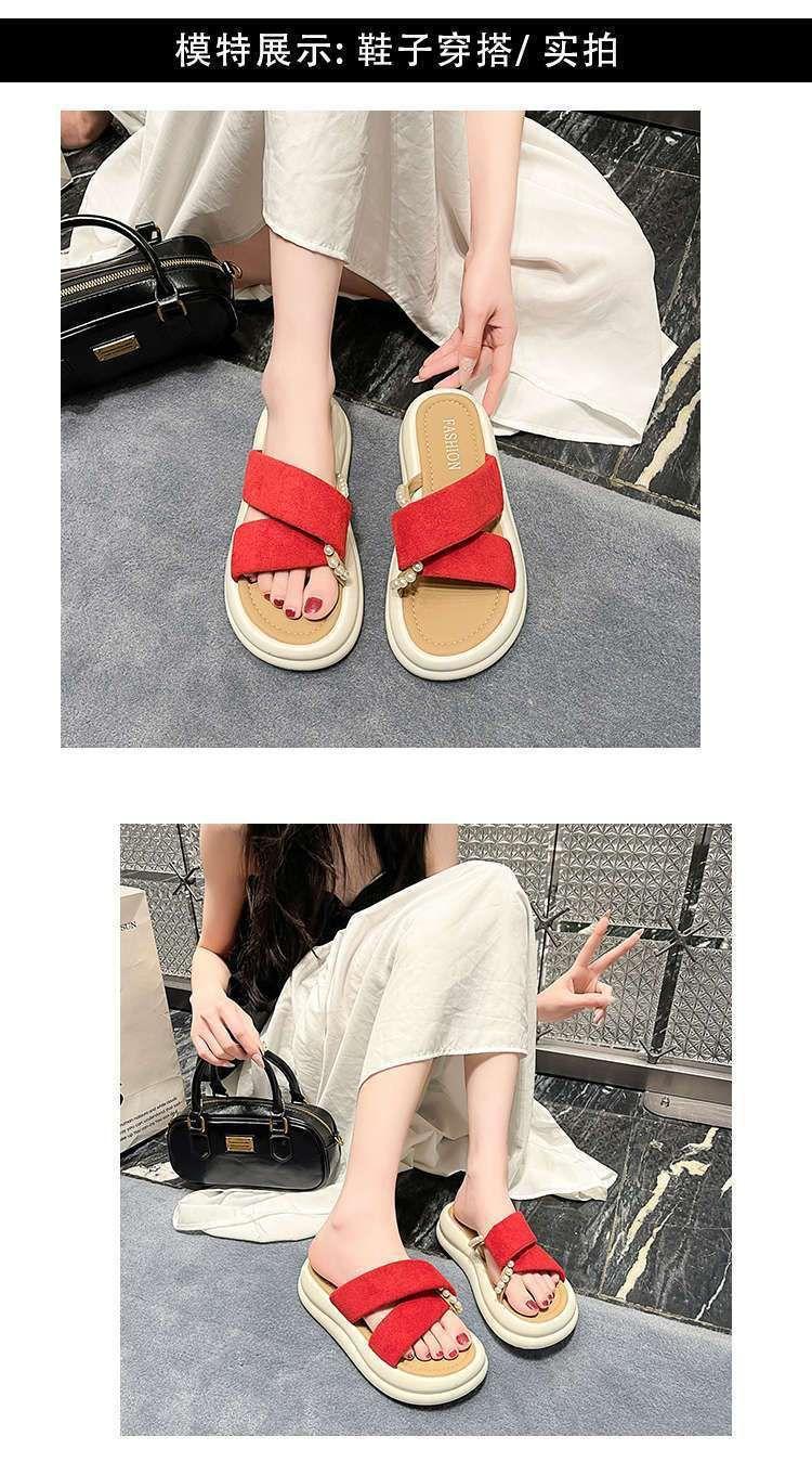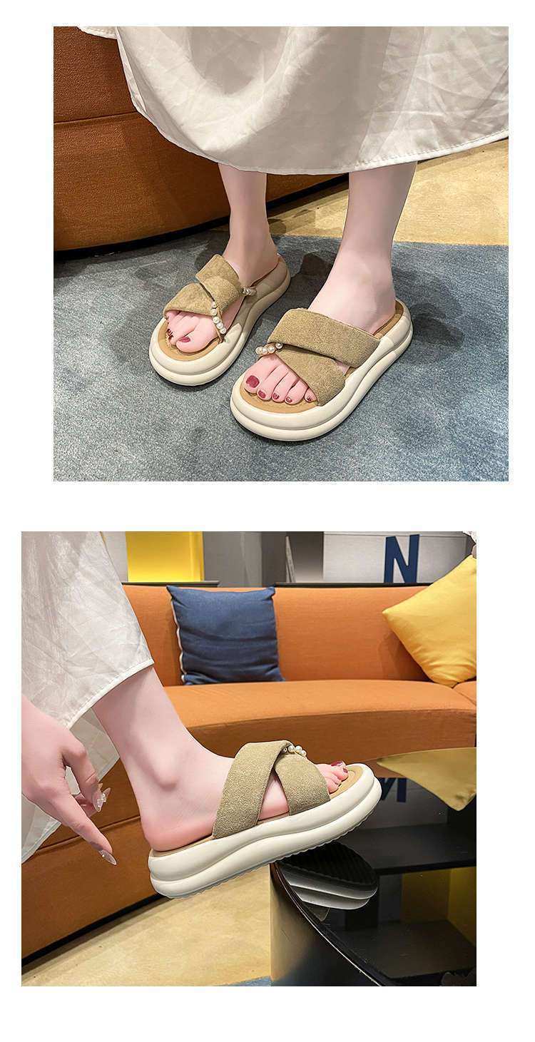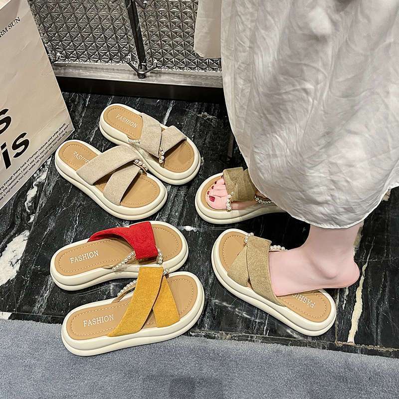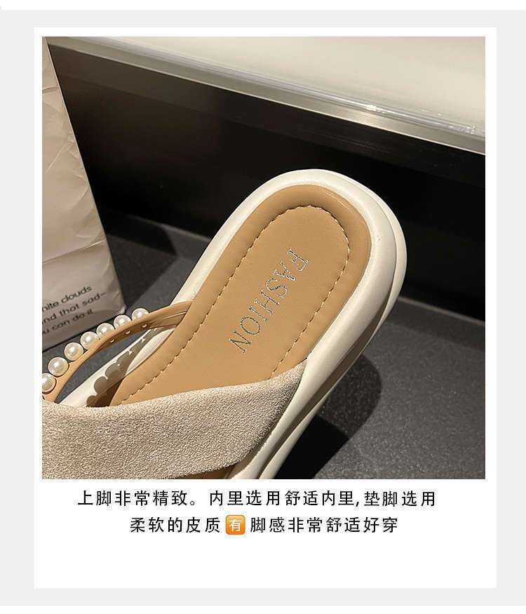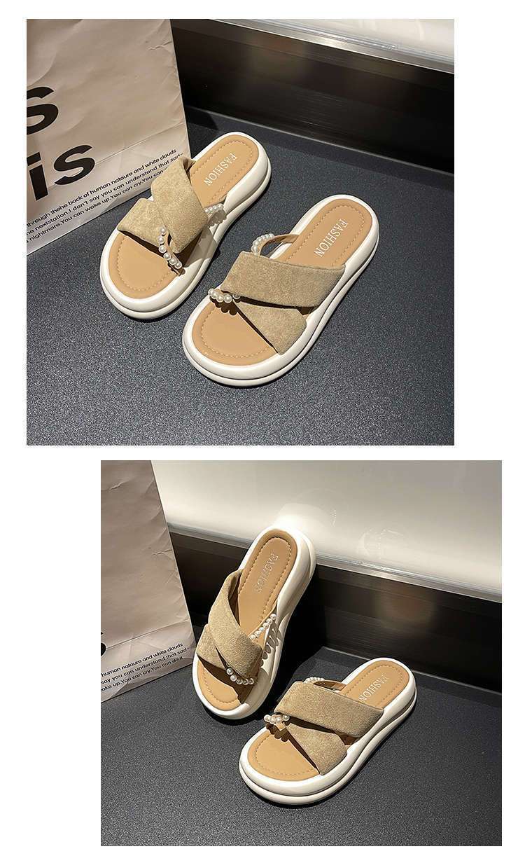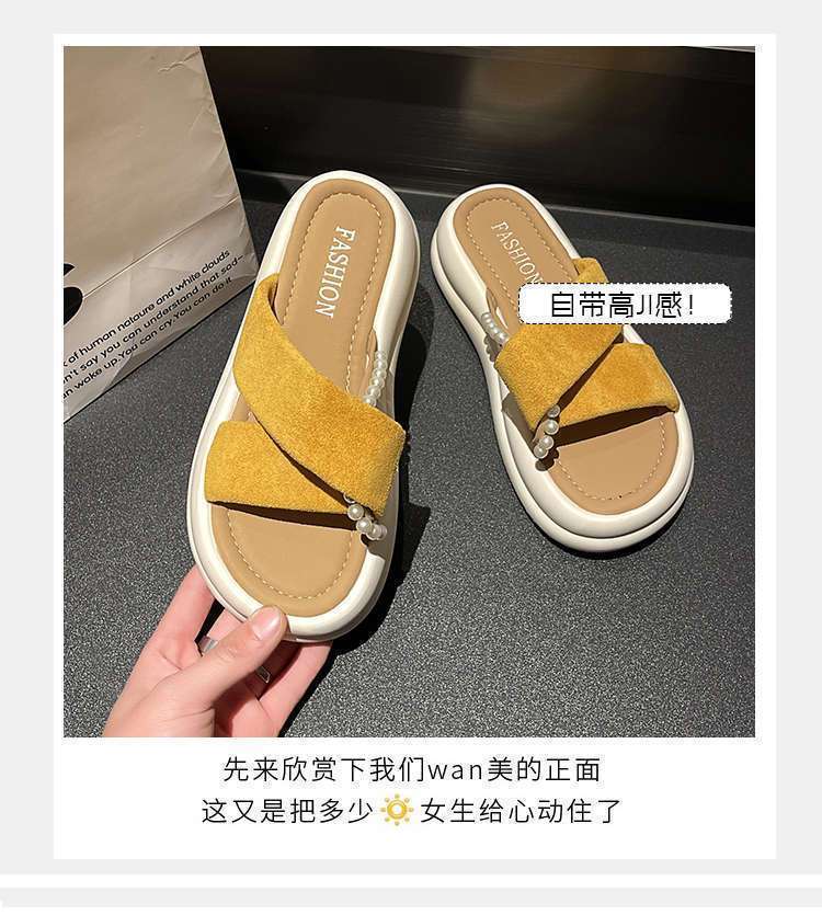 Estilo de hada con falda plataforma sandalias de playa moda perla chanclas pantuflas mujeres verano para usar fuera 2025 nuevo