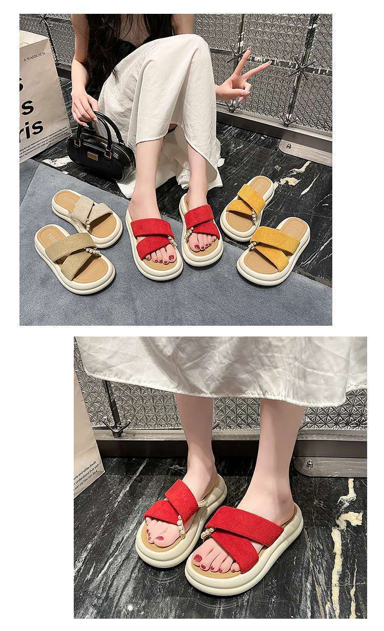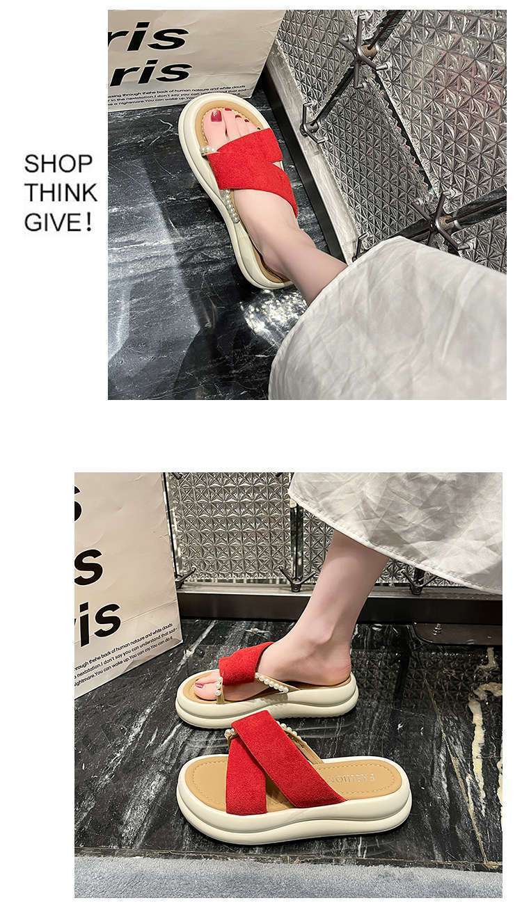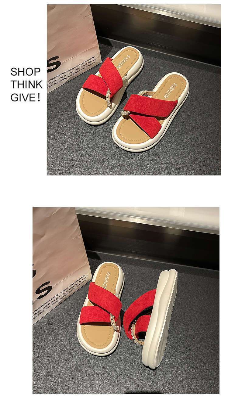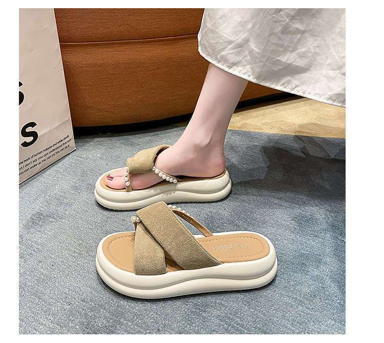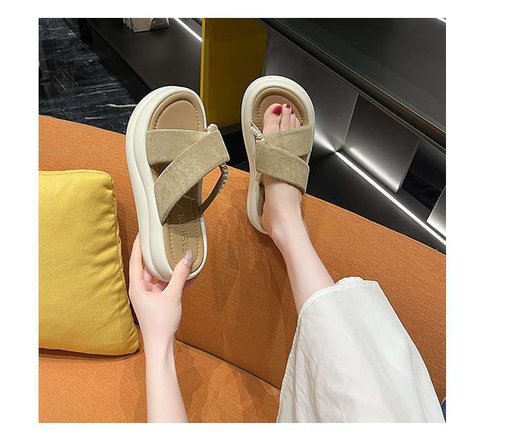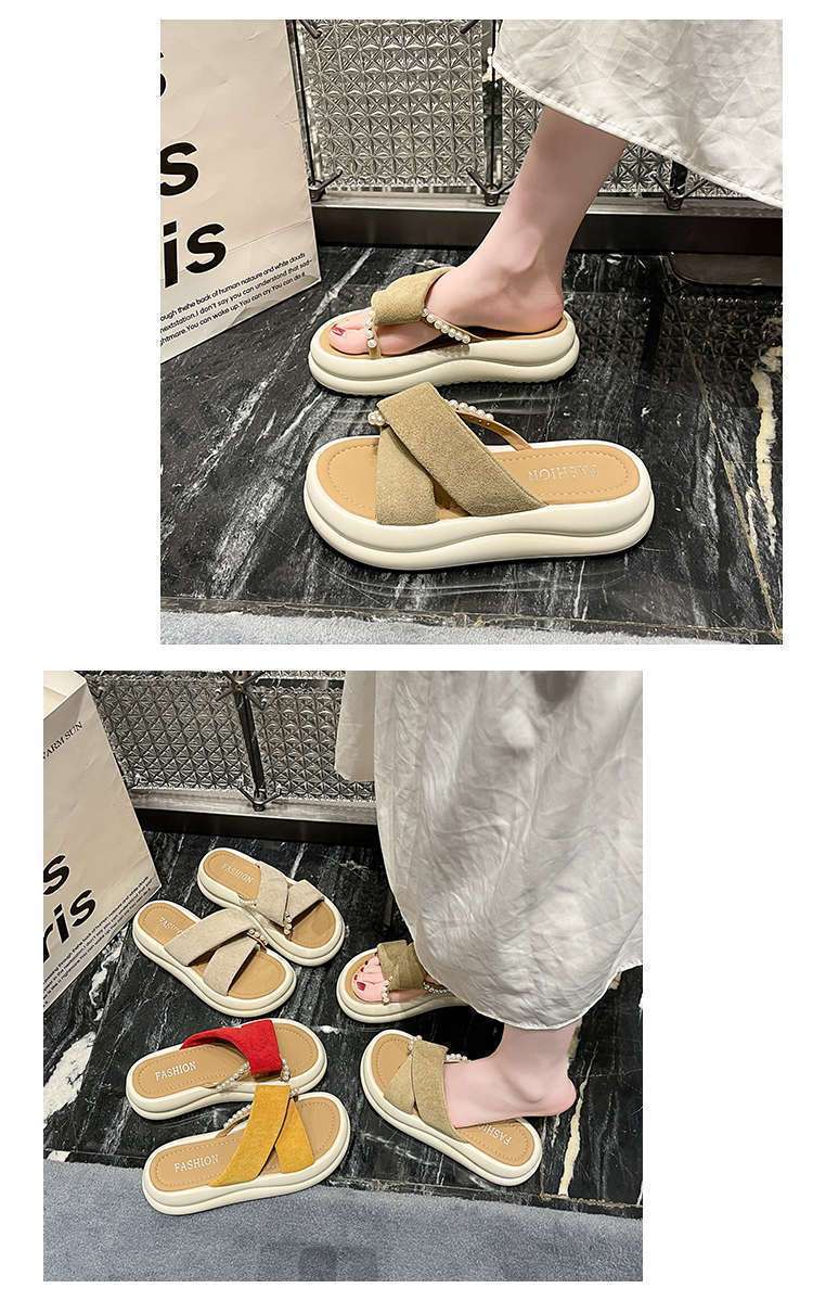Estilo de hada con falda plataforma sandalias de playa moda perla chanclas pantuflas mujeres verano para usar fuera 2025 nuevo