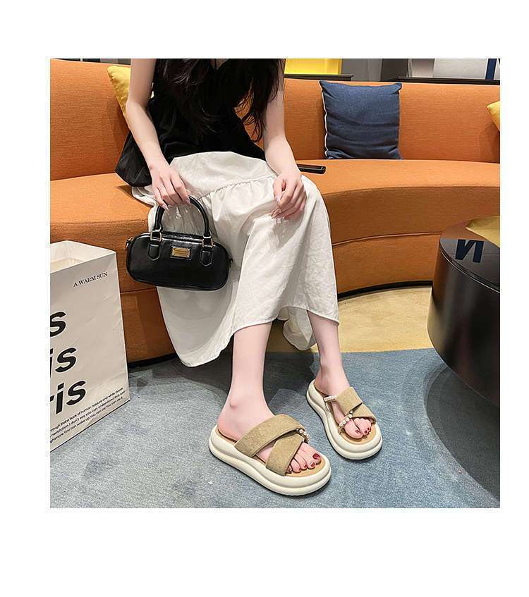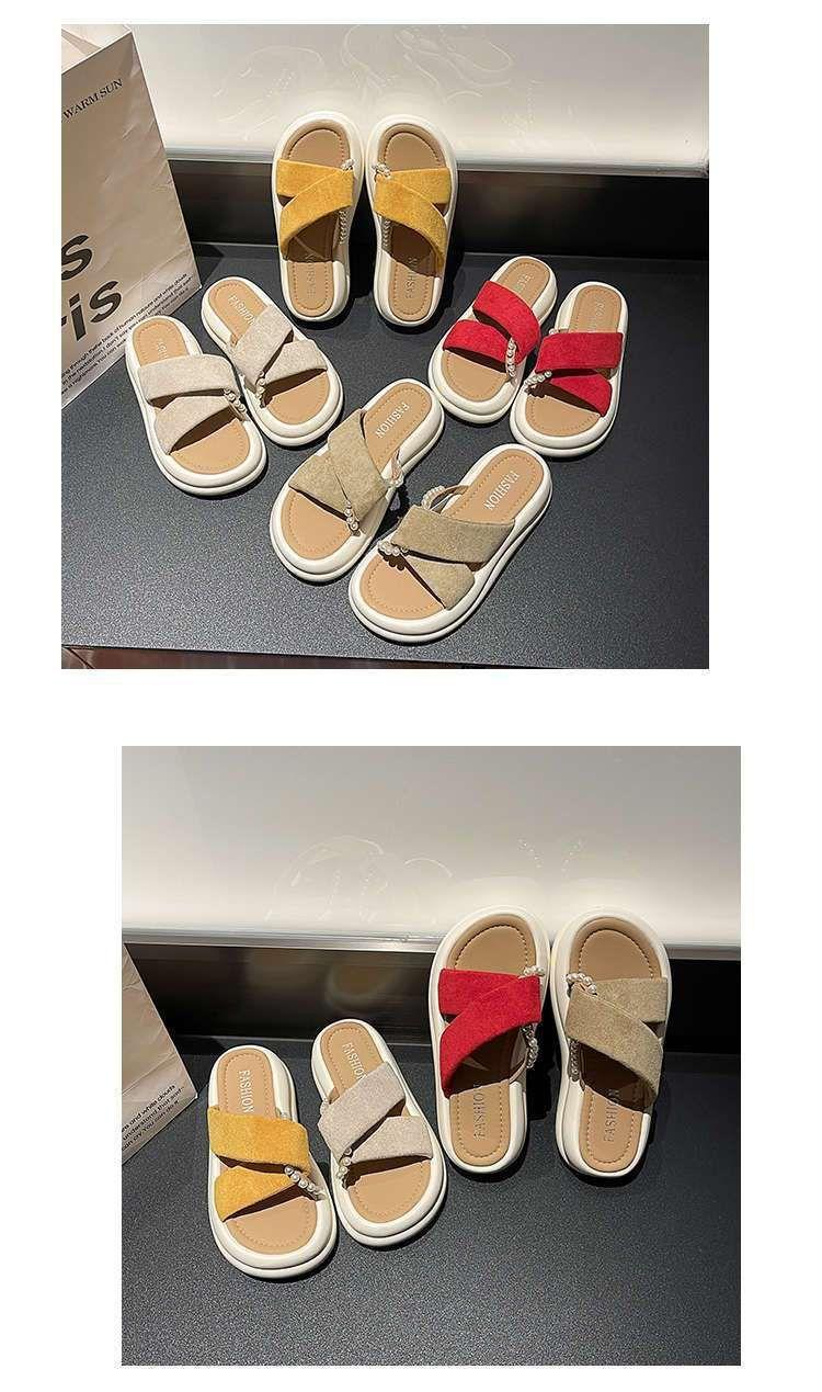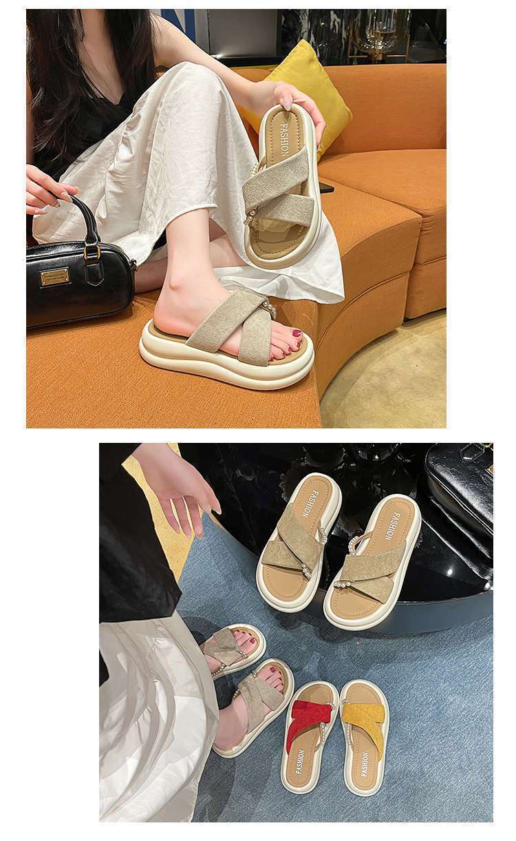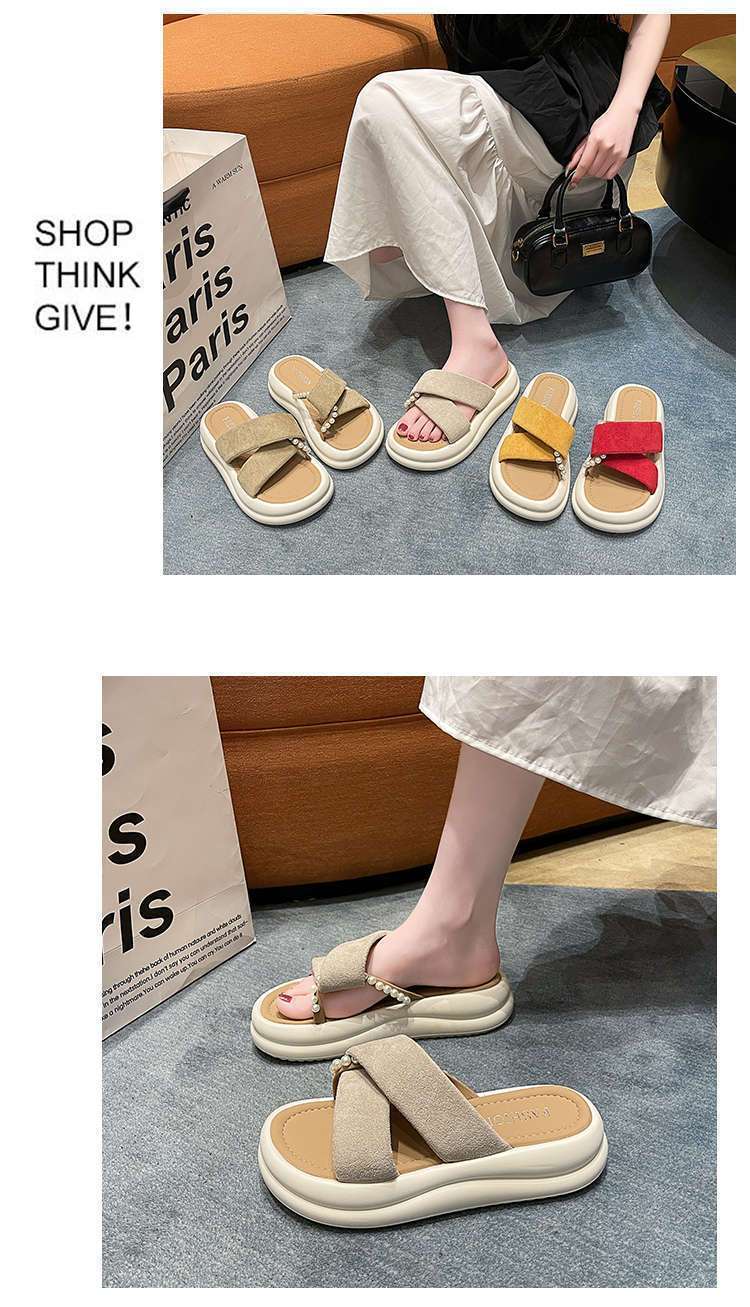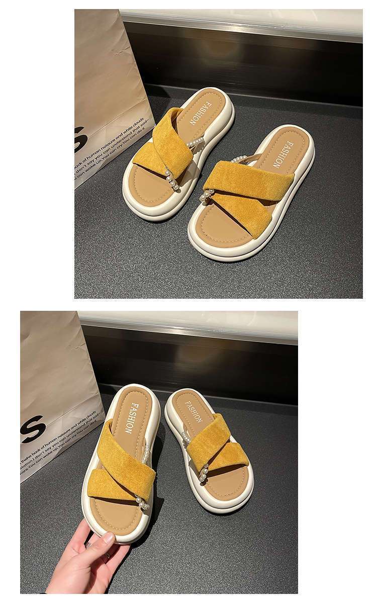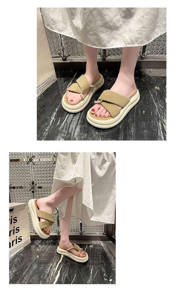 Estilo de hada con falda plataforma sandalias de playa moda perla chanclas pantuflas mujeres verano para usar fuera 2025 nuevo