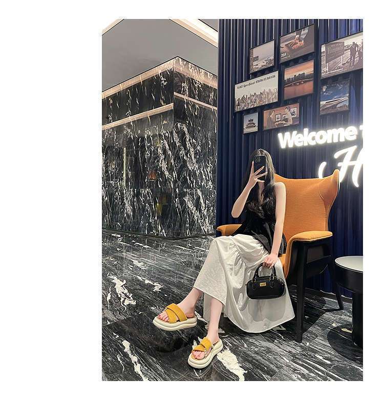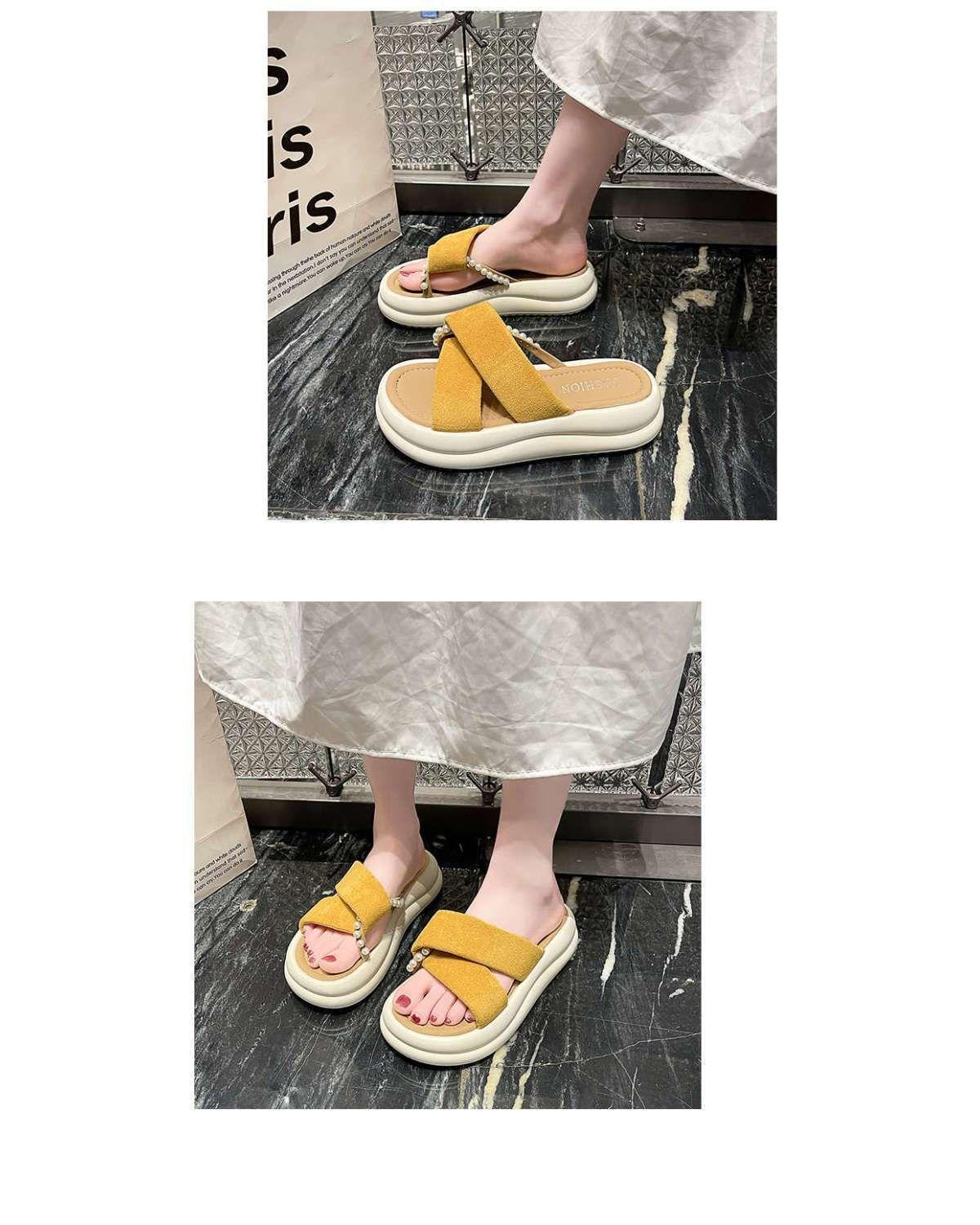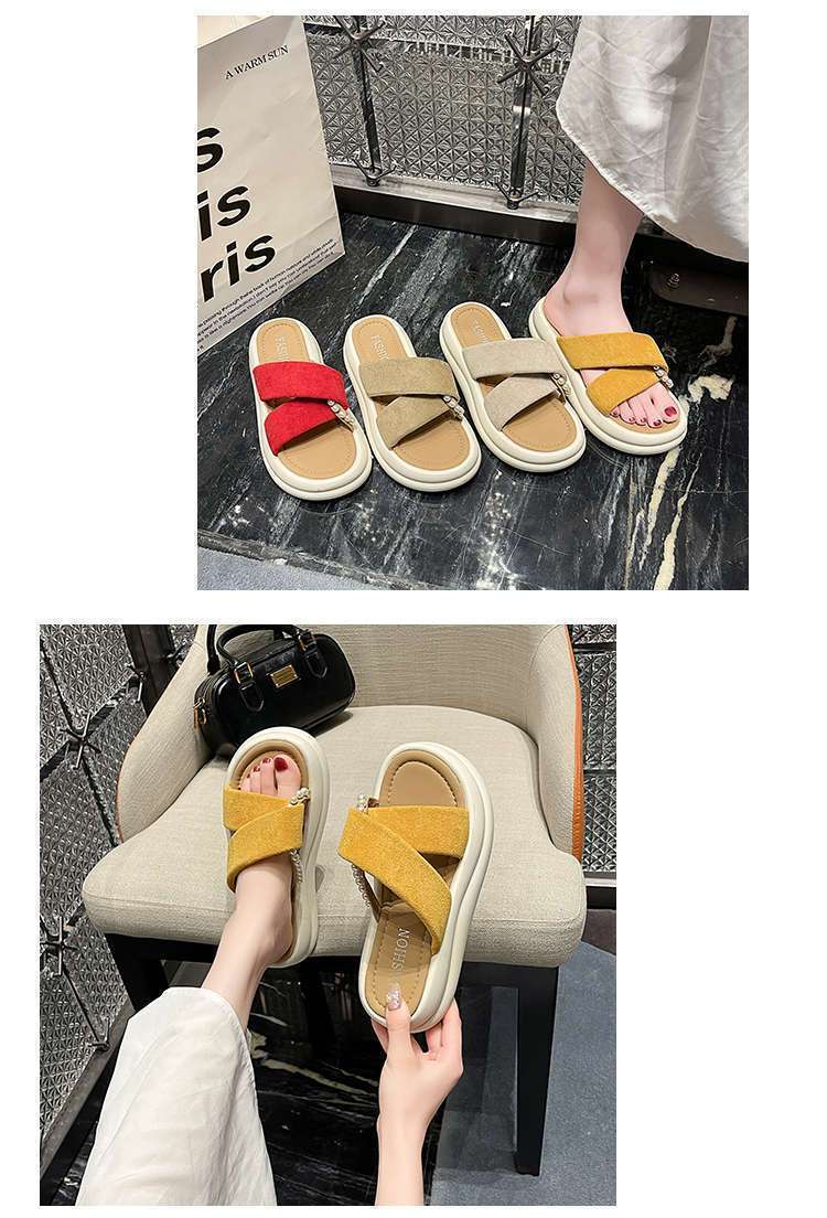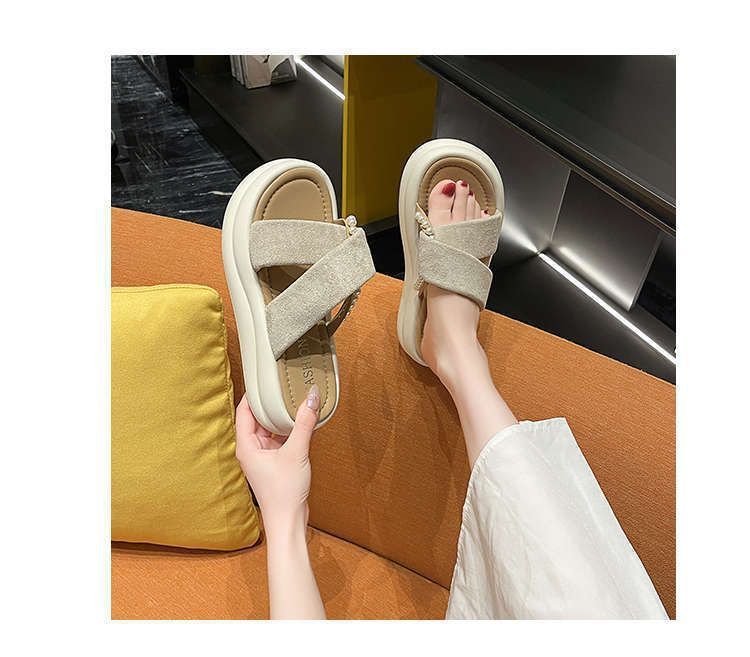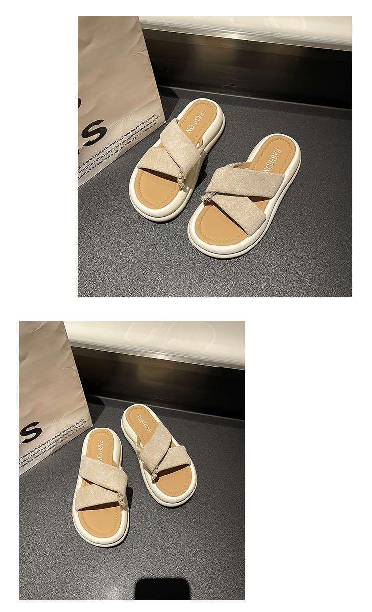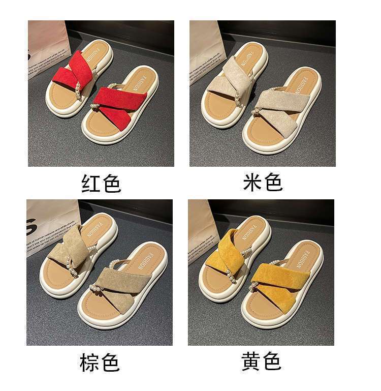 Estilo de hada con falda plataforma sandalias de playa moda perla chanclas pantuflas mujeres verano para usar fuera 2025 nuevo