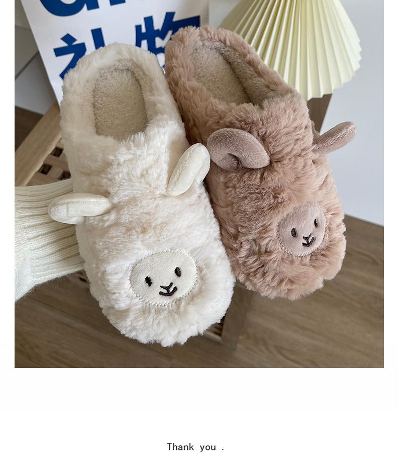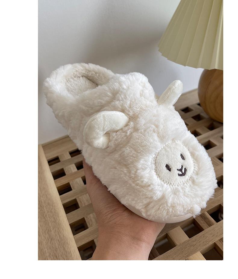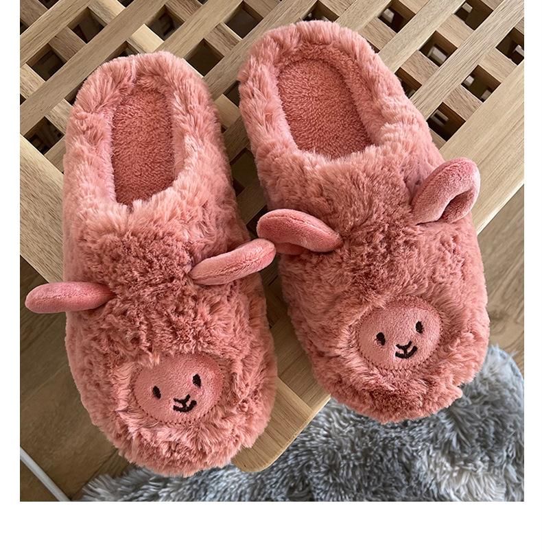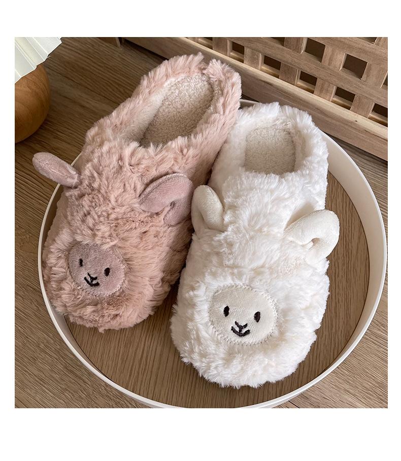 Pantuflas de Algodón para Mujer Hogar Interior Lindas Felpa Cálidas Pareja Cubre Talón Ovejita Pantuflas Postparto Hombres Invierno Antideslizantes