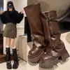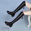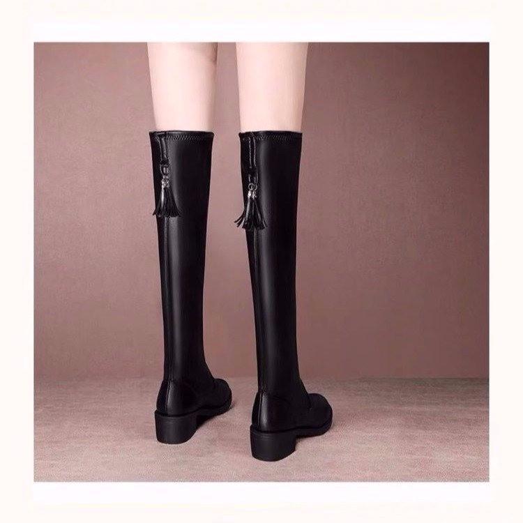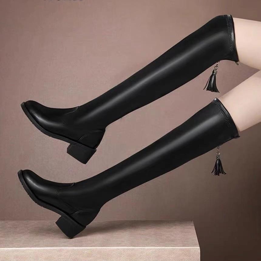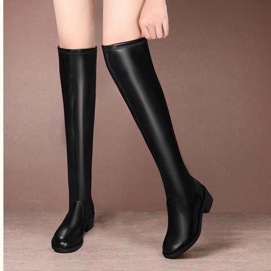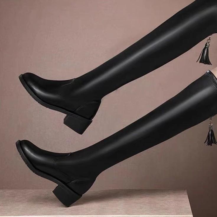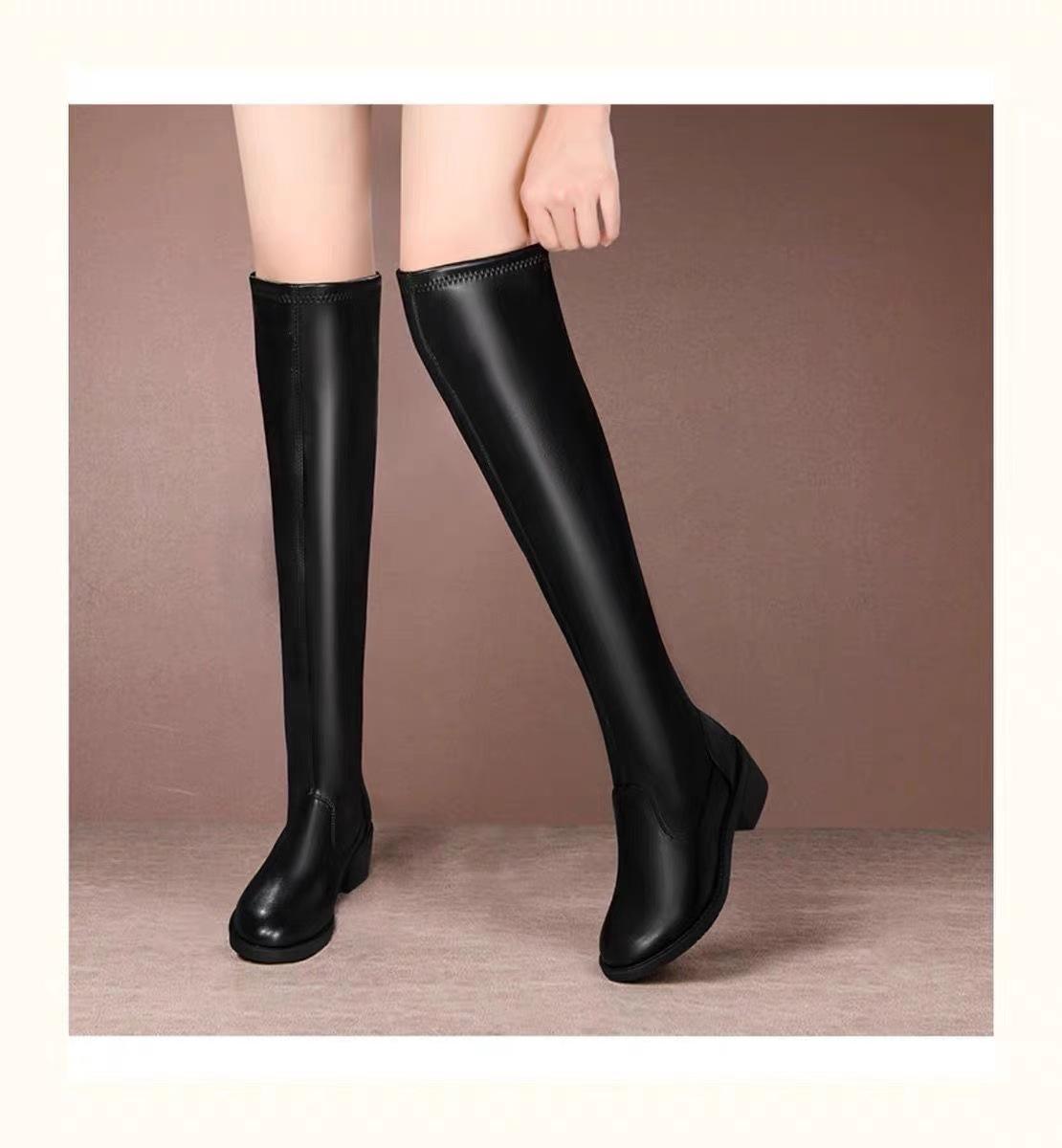 Botas de Moda para Mujer Botas Altas por Encima de la Rodilla Botas Elásticas 2025 Nuevo Cuero Suave Otoño e Invierno Botas Adelgazantes Tacón Medio Tacón Grueso Botas de Moda
