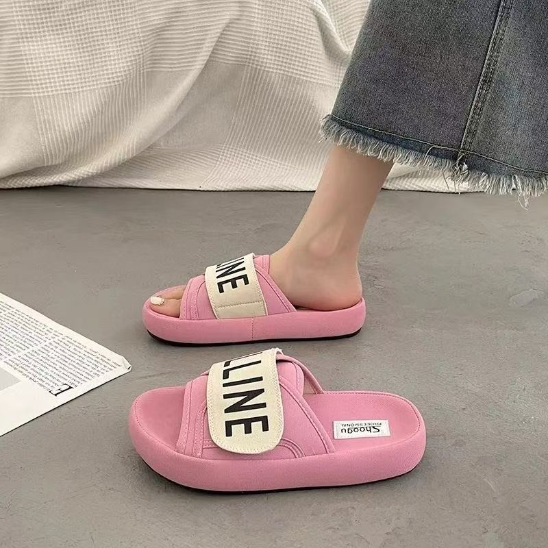 Moda con falda 2025 nuevas zapatillas planas francesas de una palabra súper calientes de suela gruesa versátiles zapatillas geniales para mujer para verano para salir