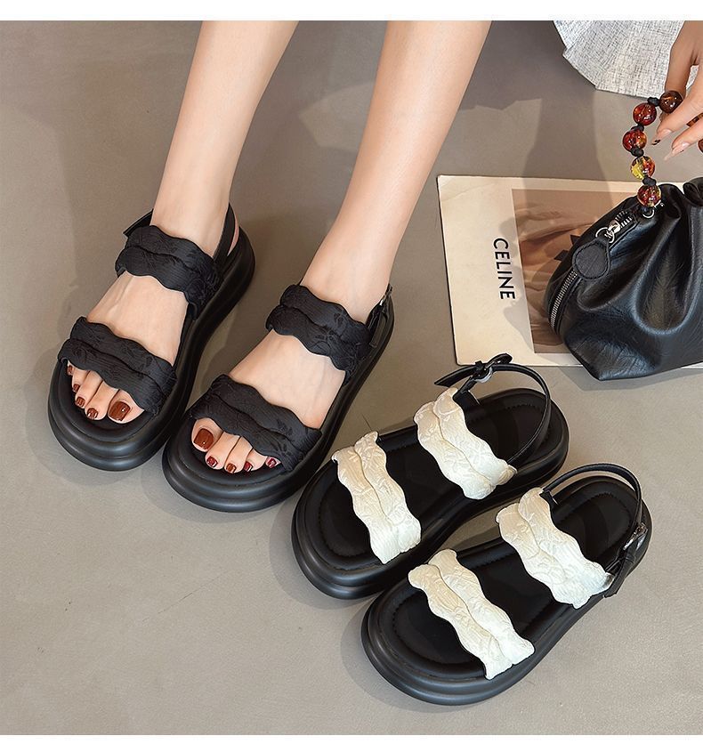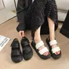 Sandalias Estilo Hada 2025 Verano Moda Hebilla de Una Tira Estilo Nacional Playa Suela Gruesa con Falda Sandalias Romanas para Mujer