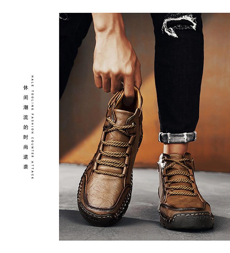 Zapatos de Cuero Hombre 2025 Nuevos Zapatos de Hombre Papá de Mediana Edad Botas de Media Caña Hombre Ropa de Trabajo para Exterior Casual Botas Martin Hombre