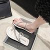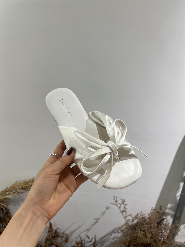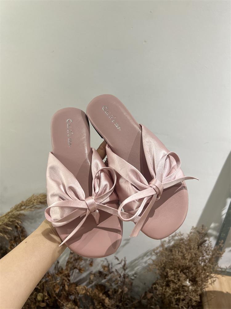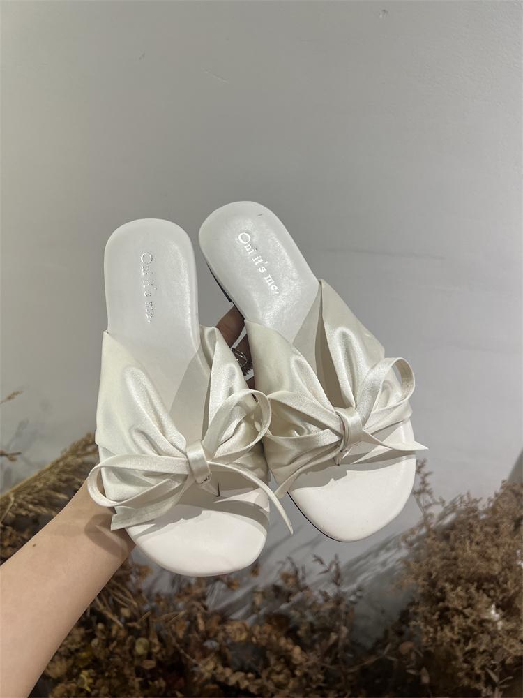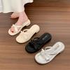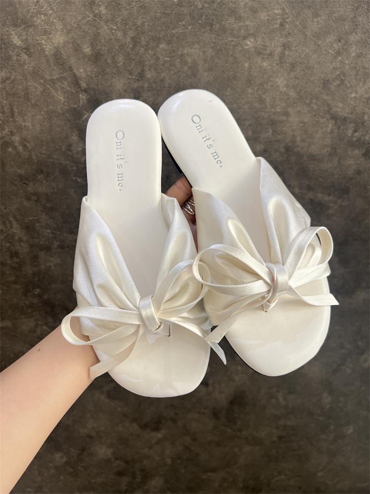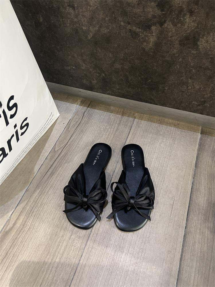 Sandalias diarias de punta abierta New Beach 2025 Zapatos casuales planos con lazo de viento Suela suave Zapatillas elegantes para mujer