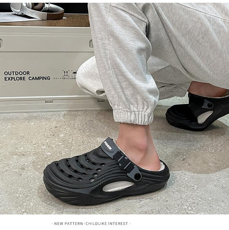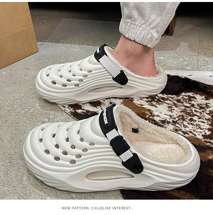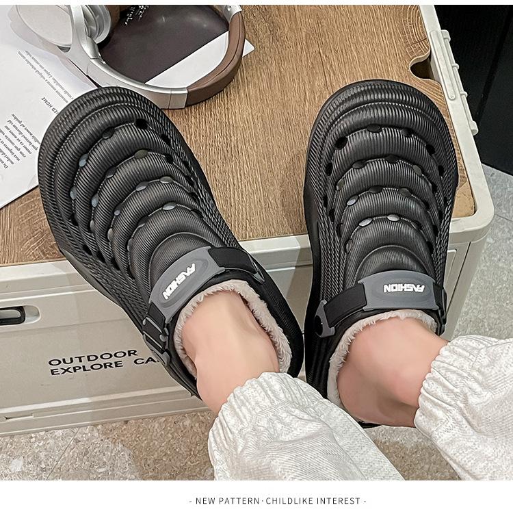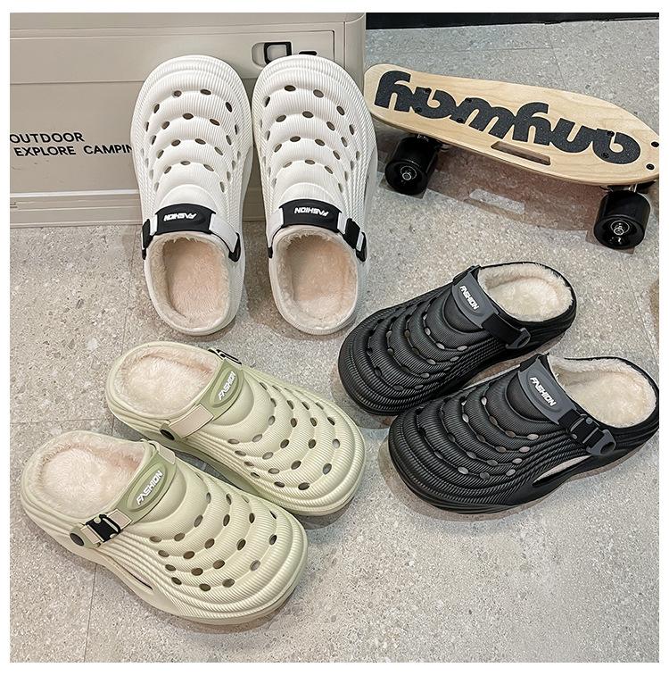 Bolsa impermeable transfronteriza y pantuflas de algodón para hombre invierno nuevo antideslizantes suela gruesa para casa cálidas más terciopelo para uso exterior pantuflas de algodón para mujer