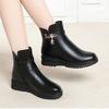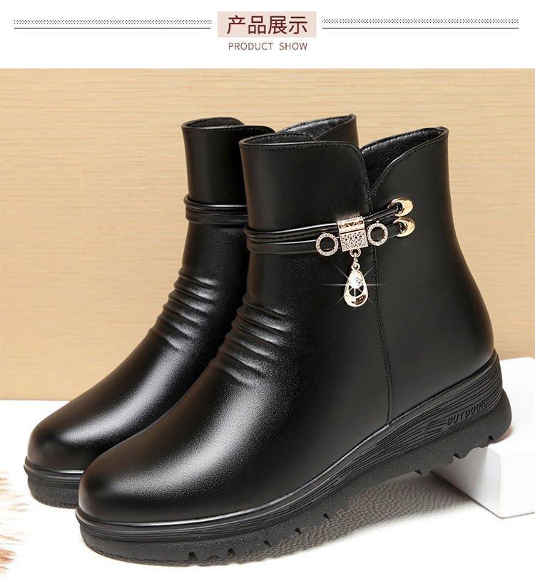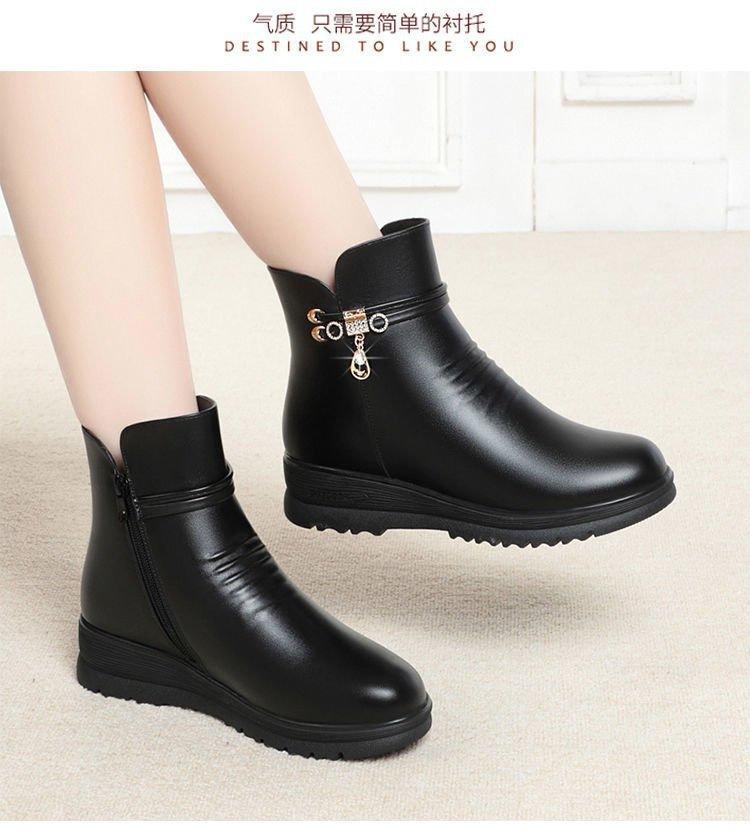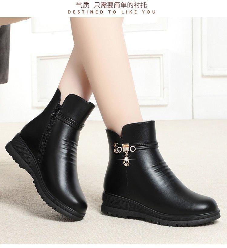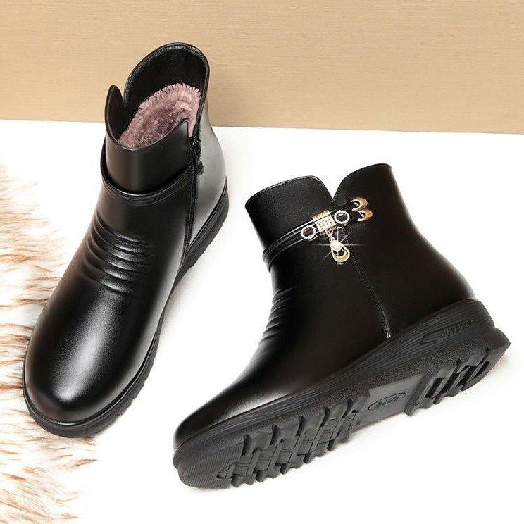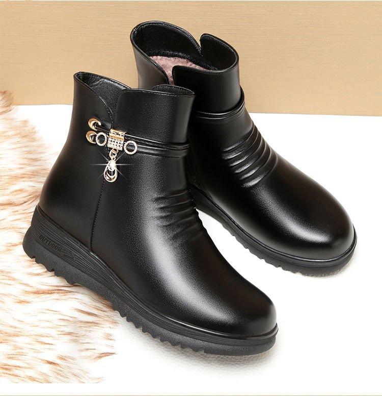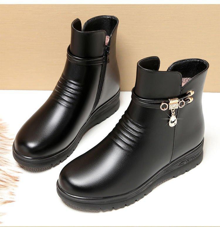 Zapatos de algodón para mamá para mujer de piel suave invierno más terciopelo botas de algodón de suela blanda plana botines botas de nieve cálidas antideslizantes botas de cuero para mediana edad