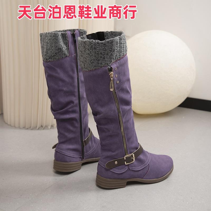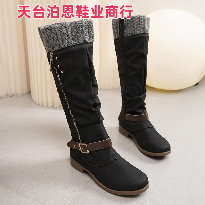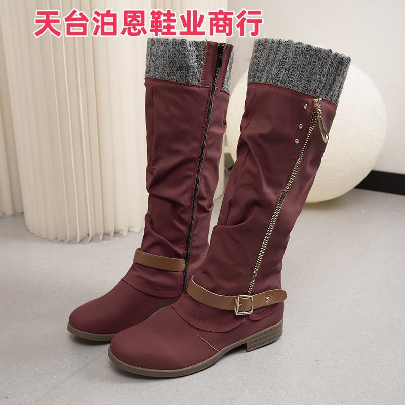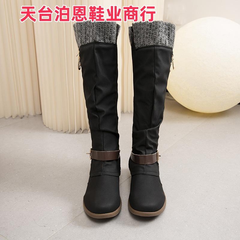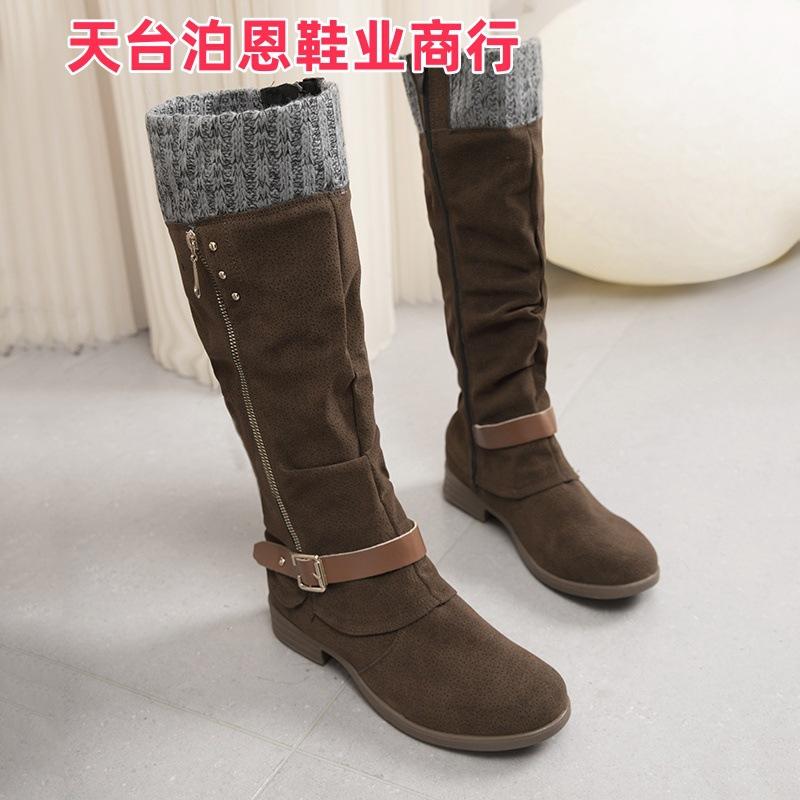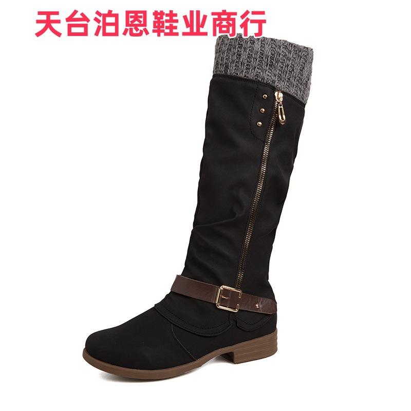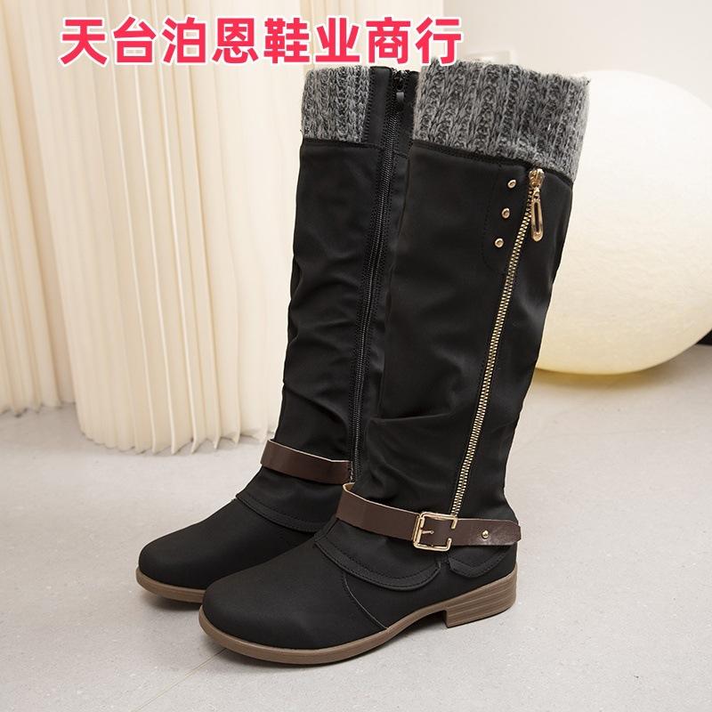 Comercio exterior transfronterizo Venta al por mayor al contado europeo y americano Punta redonda Cremallera lateral Tacón cuadrado Botas de mujer de boca de lana otoño e invierno nuevas botas de media caña