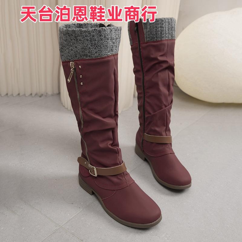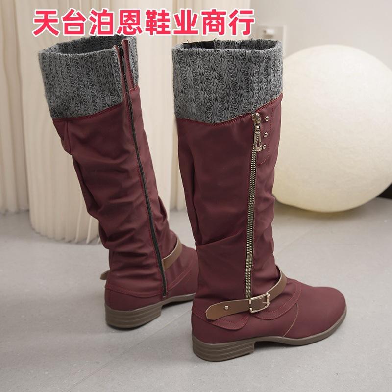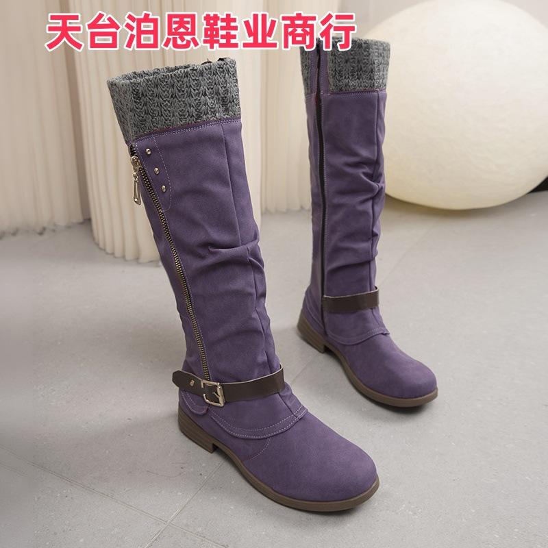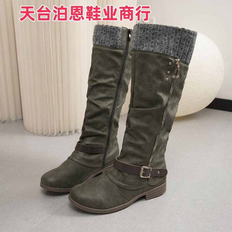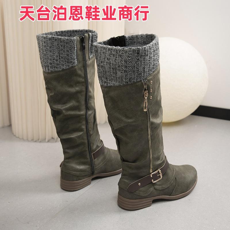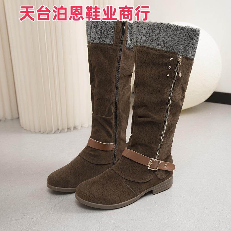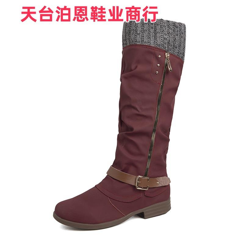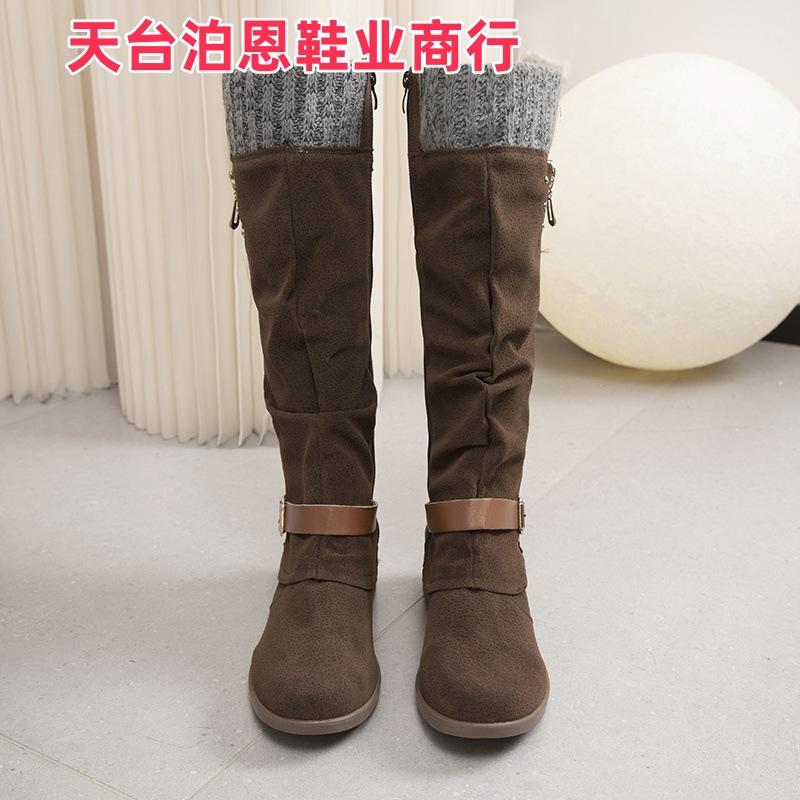 Comercio exterior transfronterizo Venta al por mayor al contado europeo y americano Punta redonda Cremallera lateral Tacón cuadrado Botas de mujer de boca de lana otoño e invierno nuevas botas de media caña