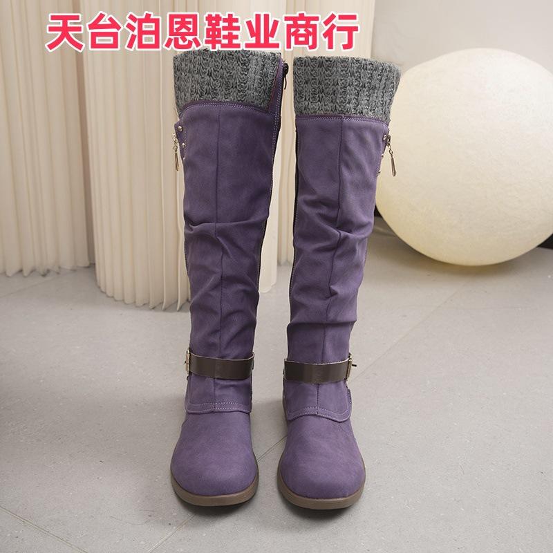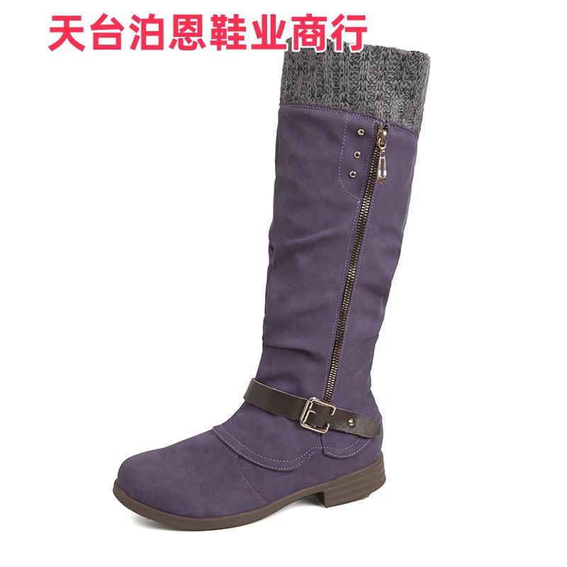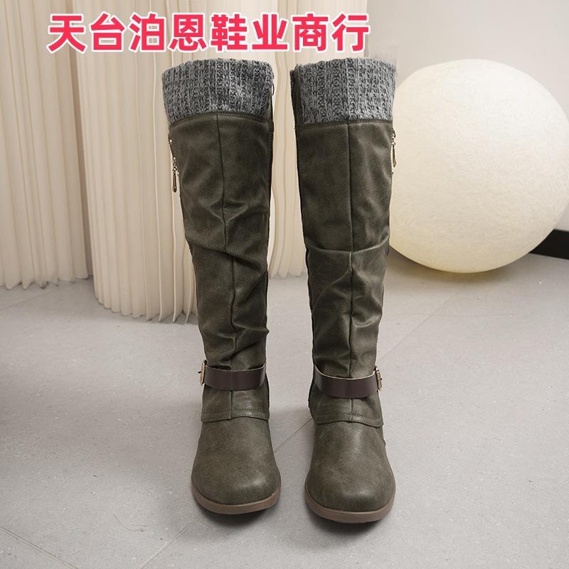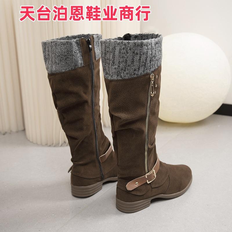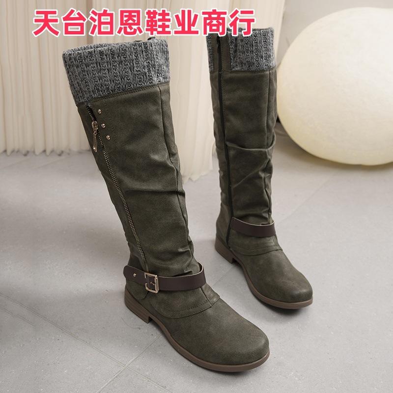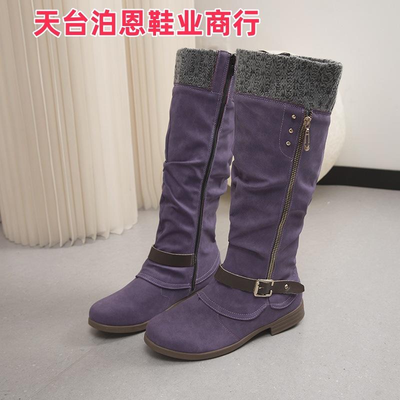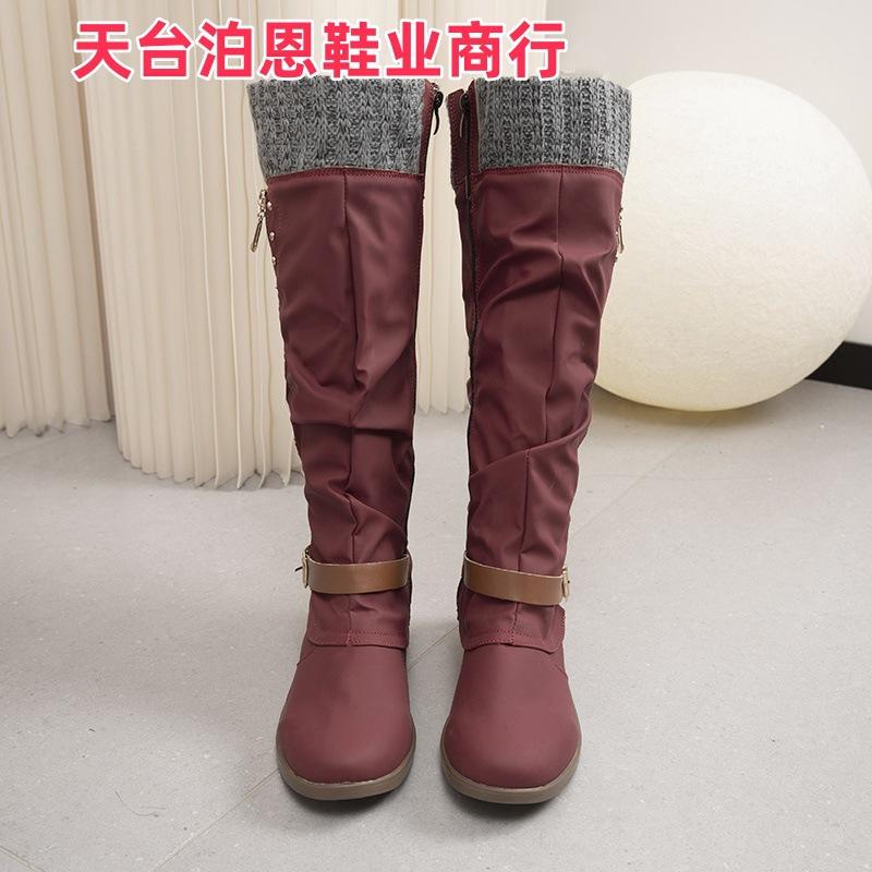 Comercio exterior transfronterizo Venta al por mayor al contado europeo y americano Punta redonda Cremallera lateral Tacón cuadrado Botas de mujer de boca de lana otoño e invierno nuevas botas de media caña
