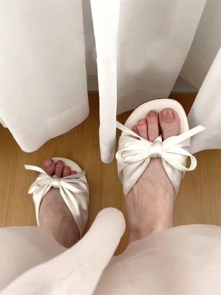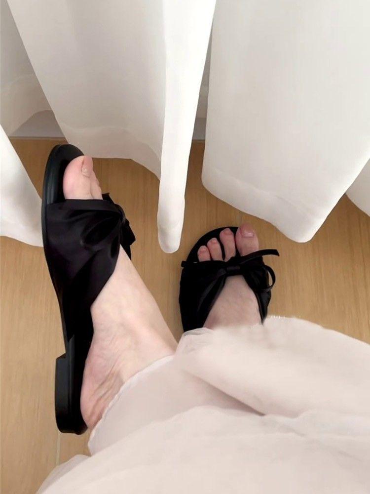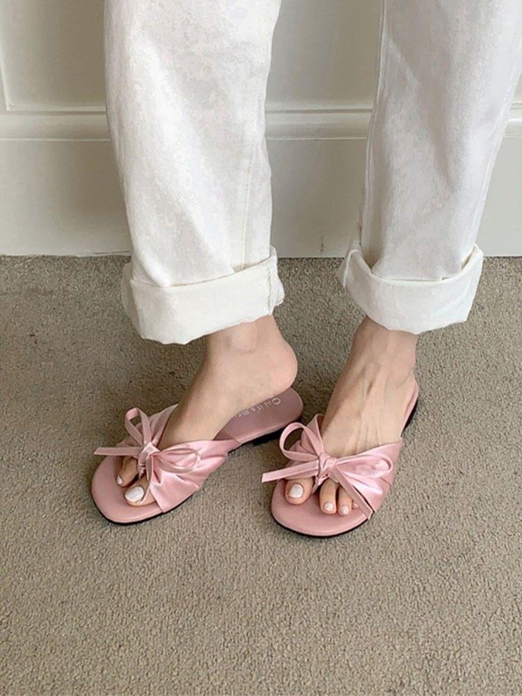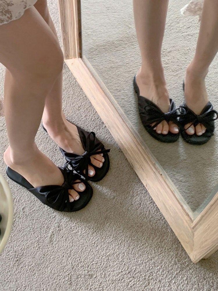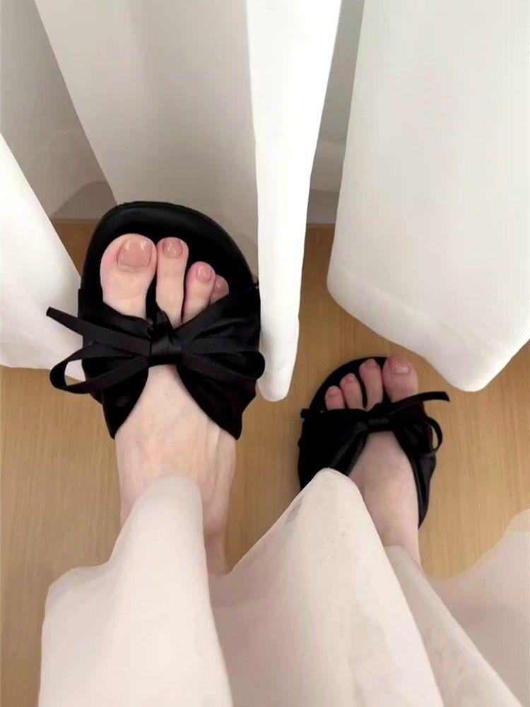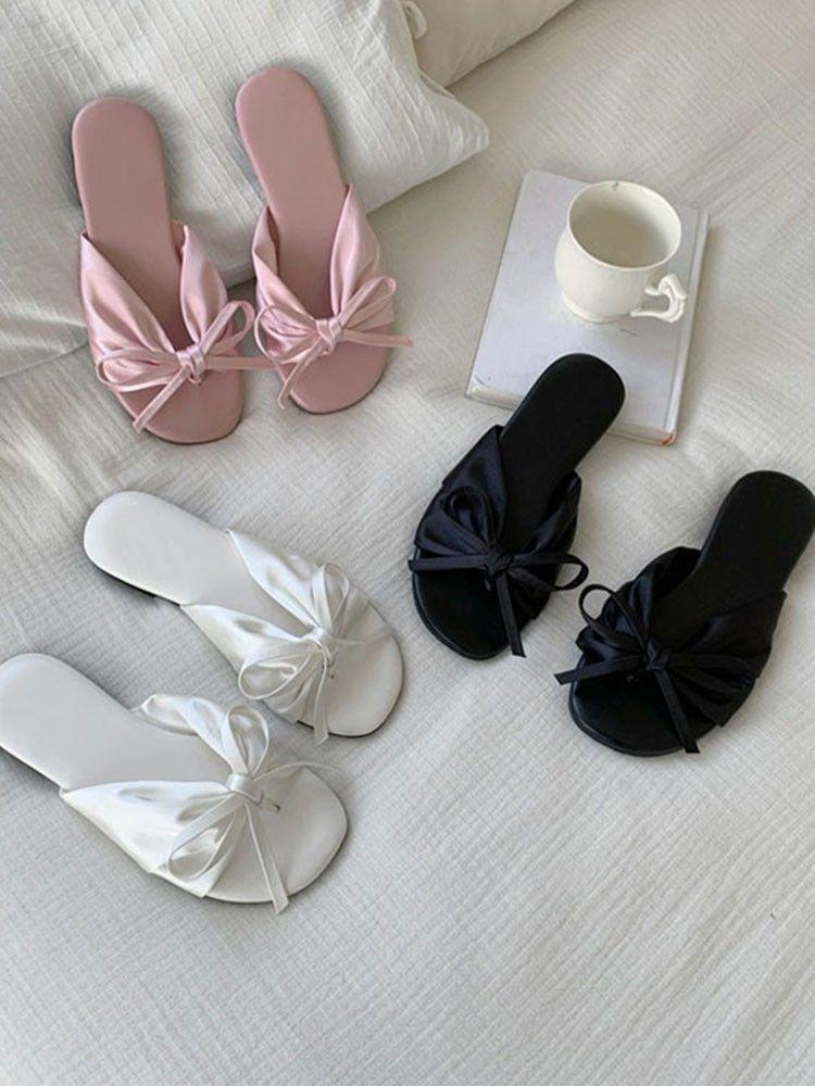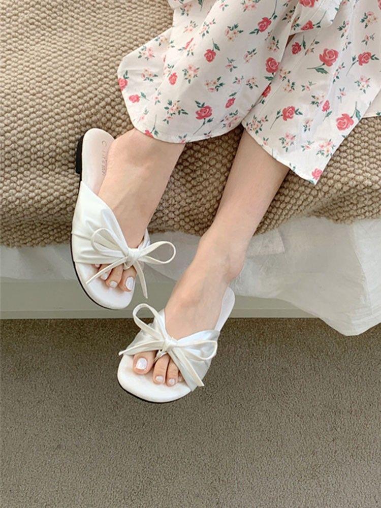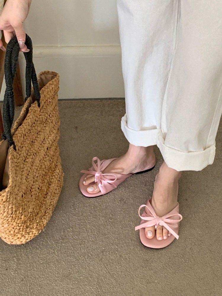 Sandalias y pantuflas elegantes de punta abierta con lazo, nuevo 2025, suela suave, estilo cool y relajado, planas francesas, para playa, para exteriores