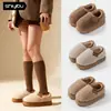 Pantuflas de Algodón para Mujer Otoño Invierno Hogar Interior Fondo Grueso Antideslizantes Cálidas Felpa Estilo Pareja Pantuflas de Algodón