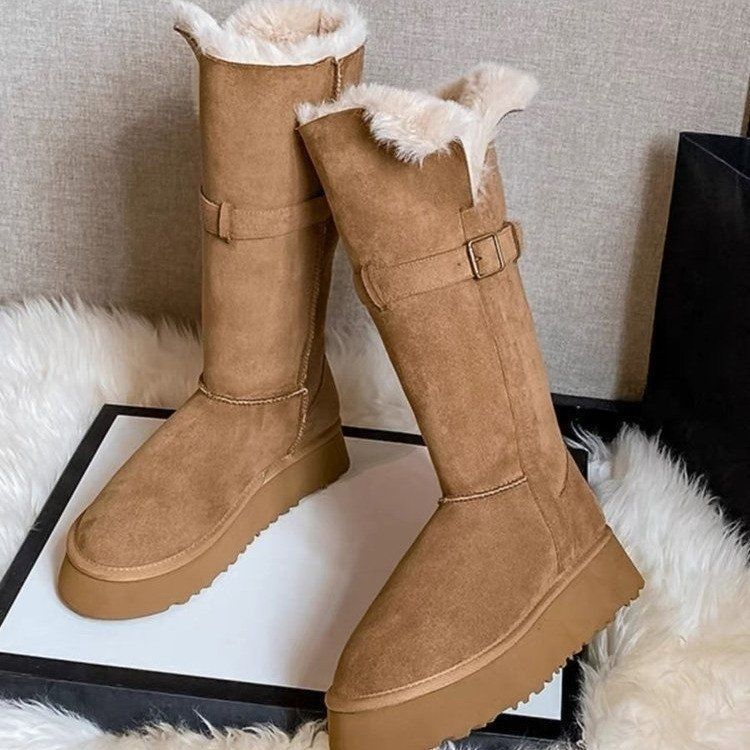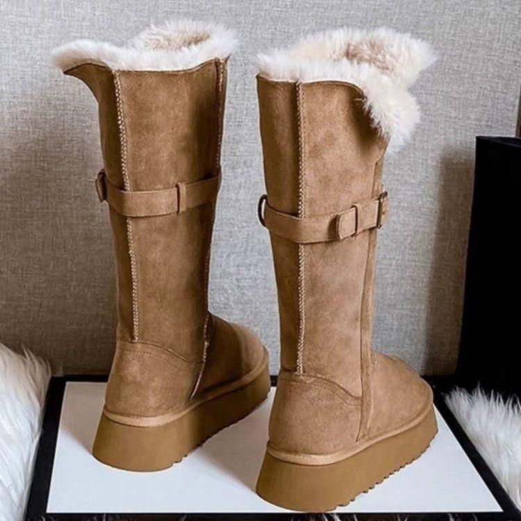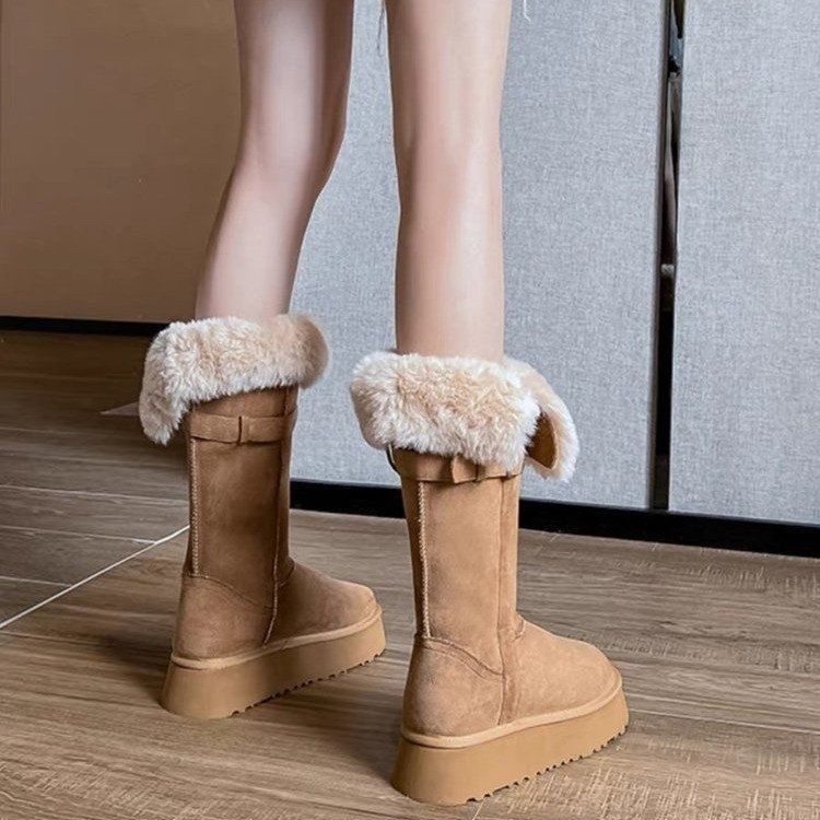 Botas de Nieve hasta la Rodilla de Suela Gruesa para Mujer 2025 Nuevas Invierno Forradas de Vellón Gruesas Moda Versátiles Cálidas Botas de Media Caña para Mujer