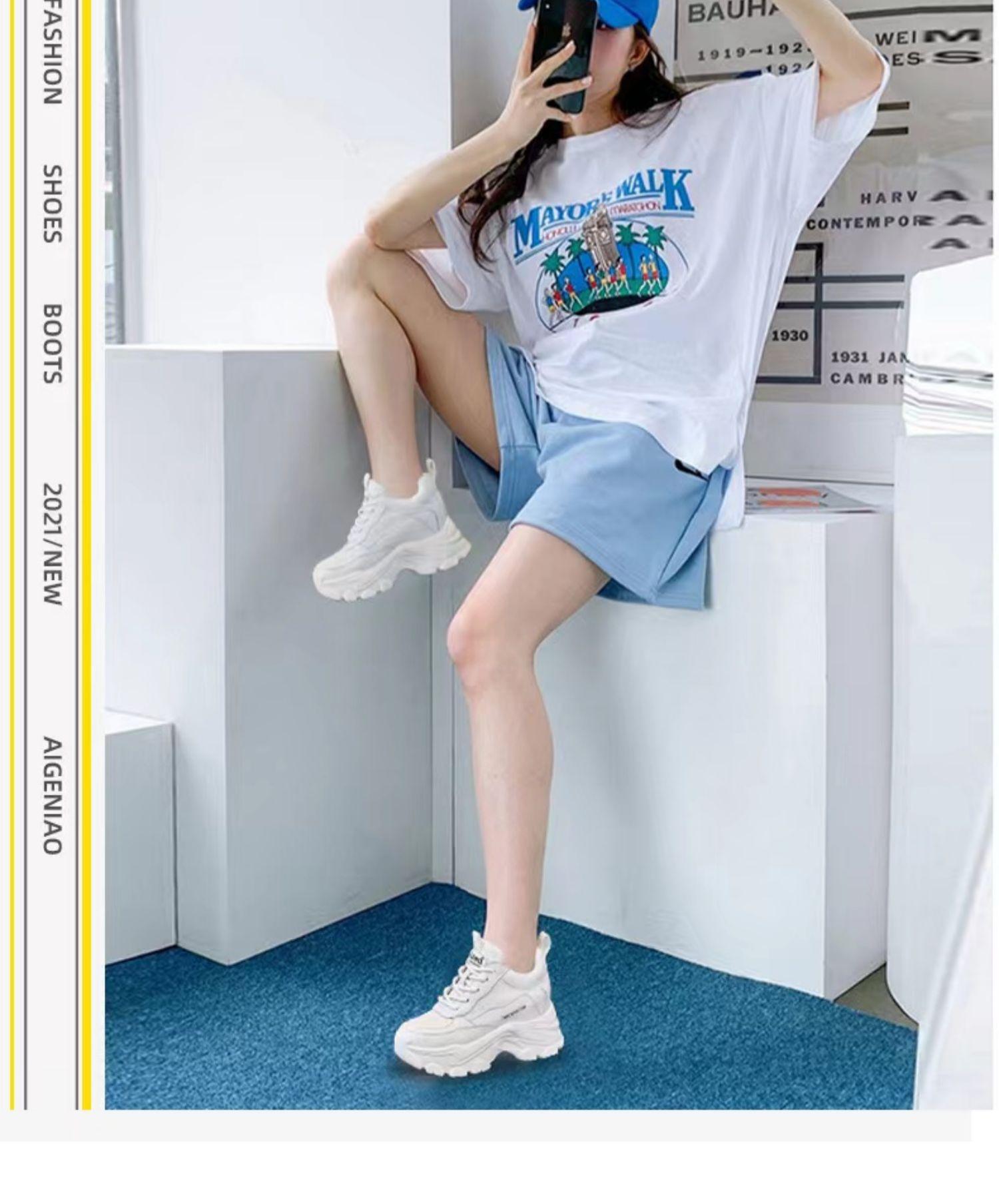 Zapatos de papá para mujer hacen que los pies se vean pequeños primavera/verano 2025 nuevos zapatos casuales blancos con suela gruesa transpirables con realce interior para mujer